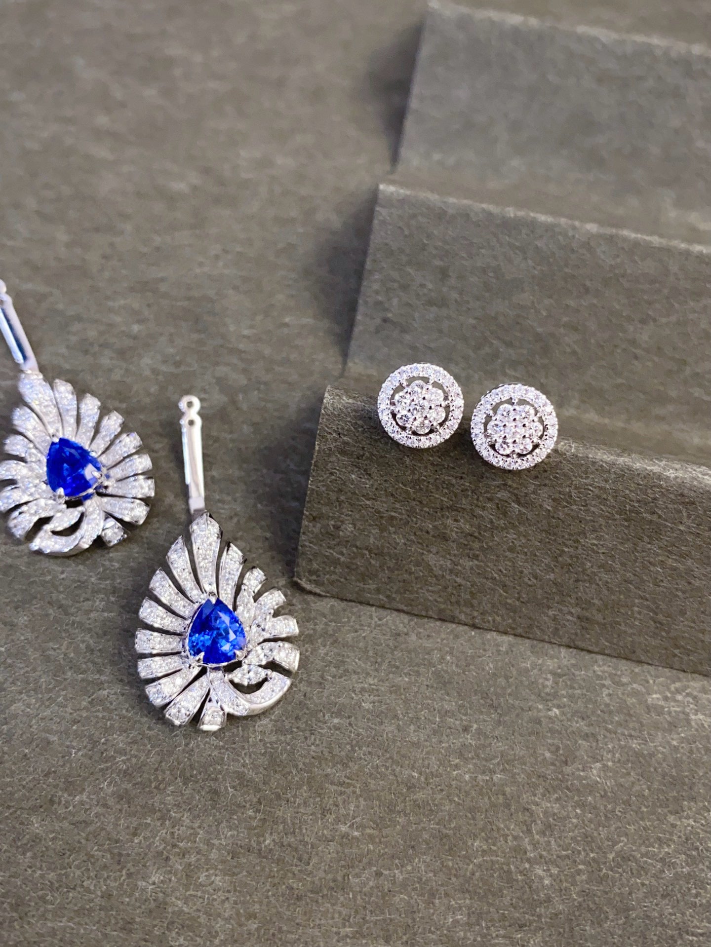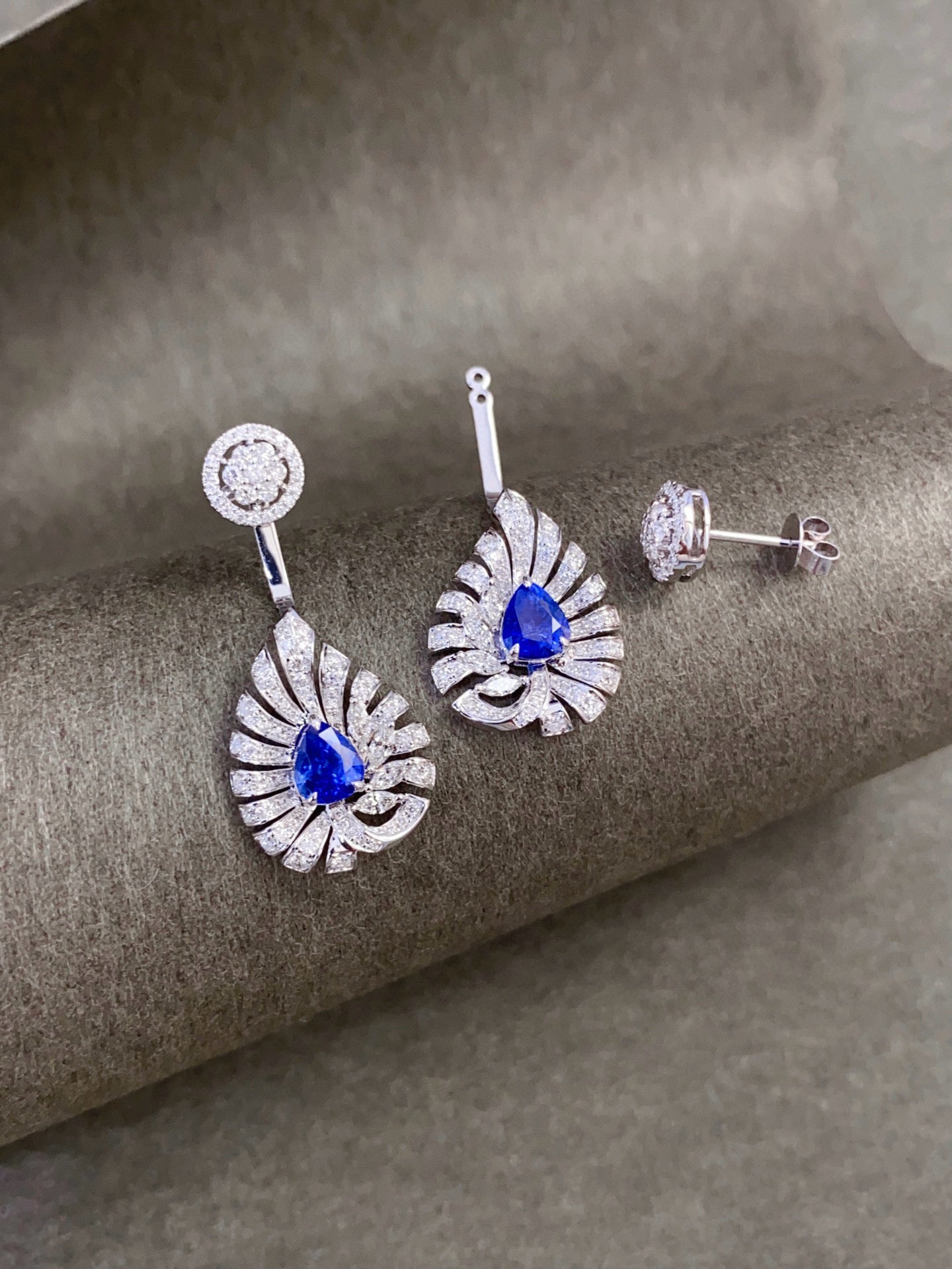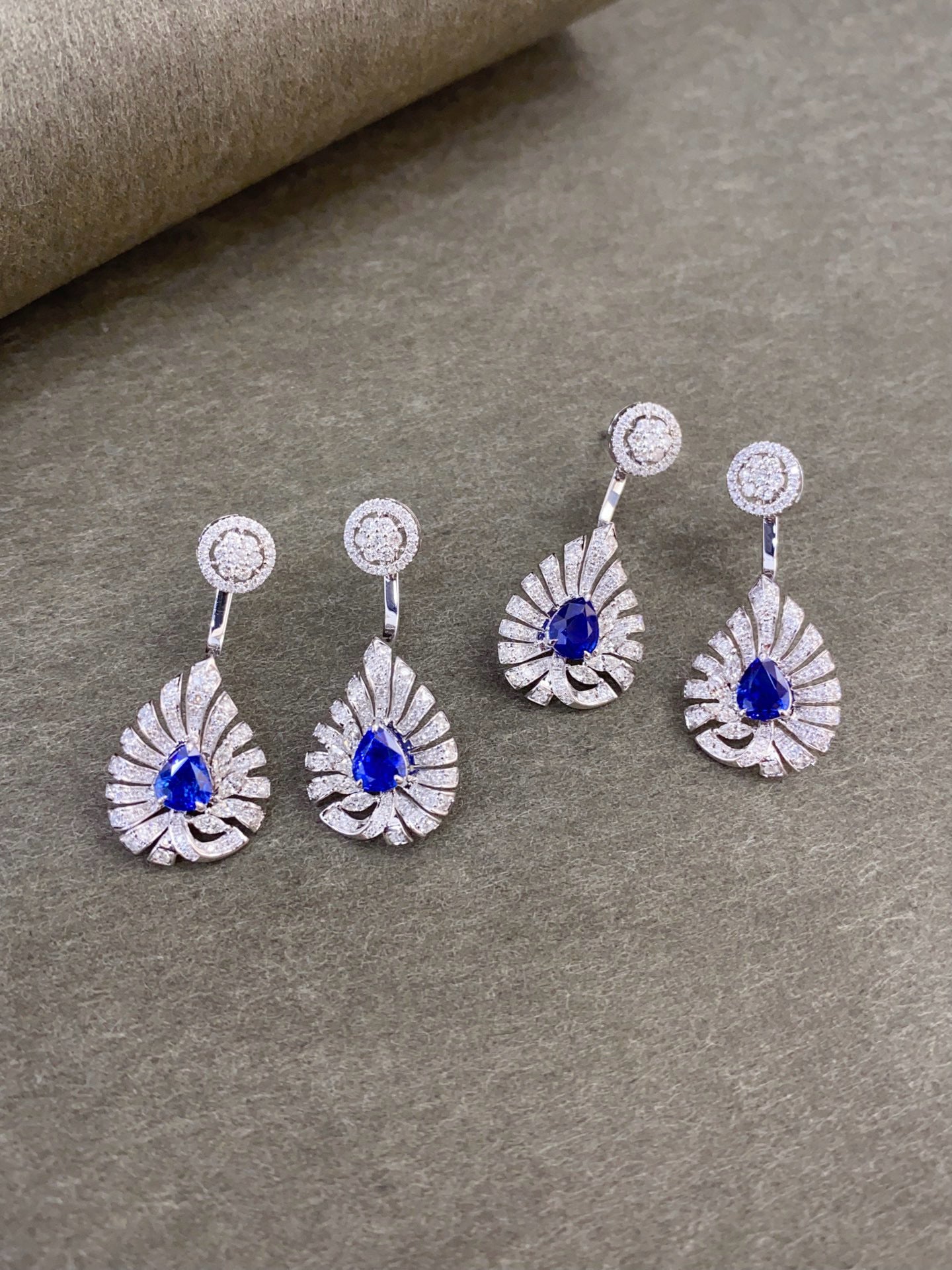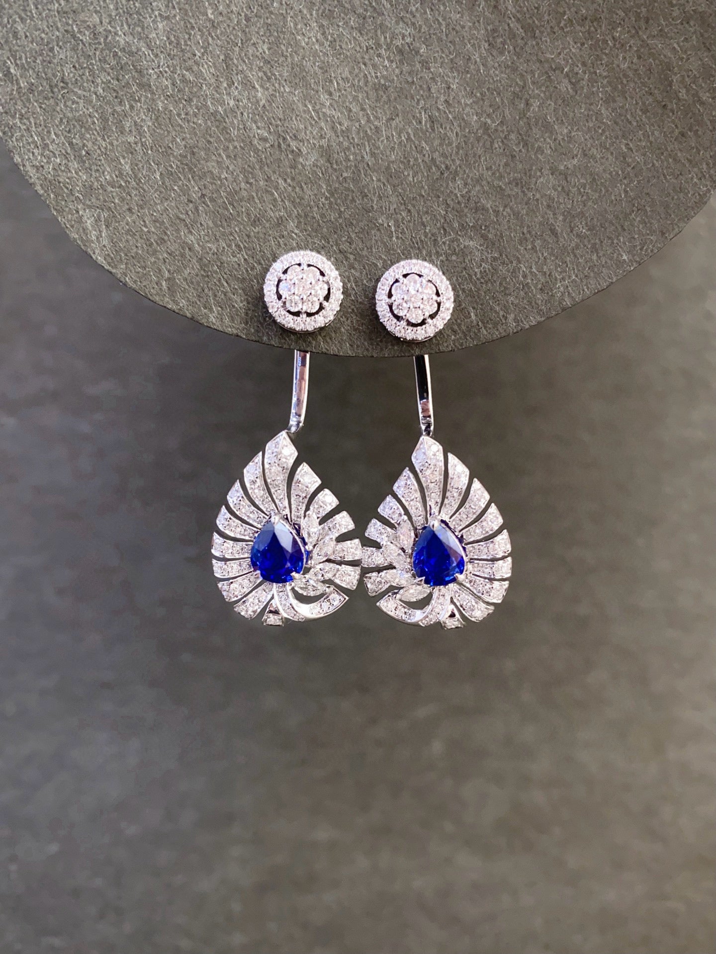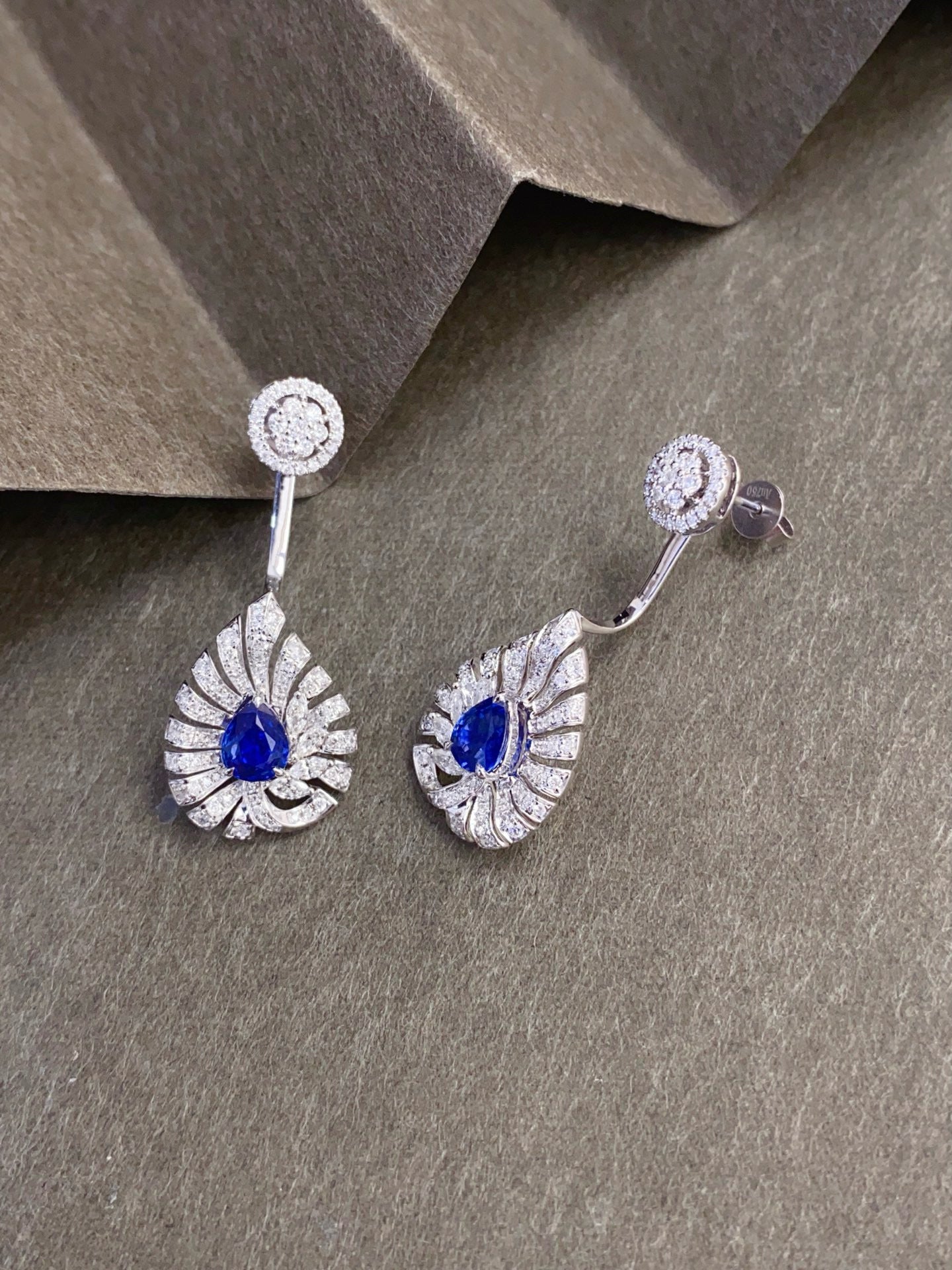 Ref:231025190 // Gold Content:14K Gold // Main Gemstone:Sapphire // Shape:Pear // Carat Weight:1.45ct // Color:Vivid Blue // Treatment:Natural // // Adjacent Gemstone 2 : Diamond // Shape:Multiply // Carat Weight:0.96ct // Clarity Grade:VS-SI // Color:H // Treatment:Natural //