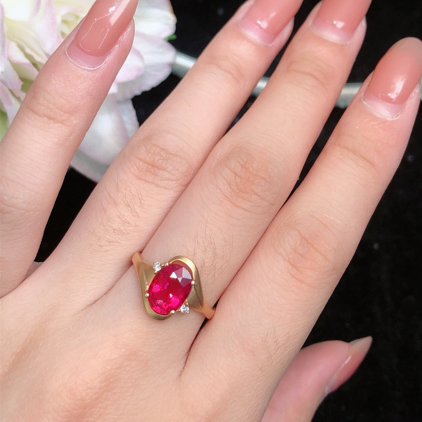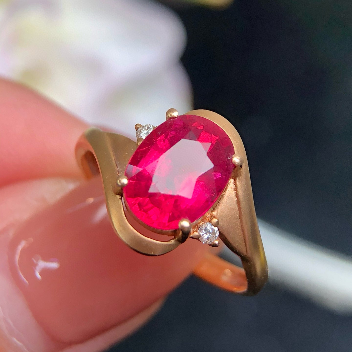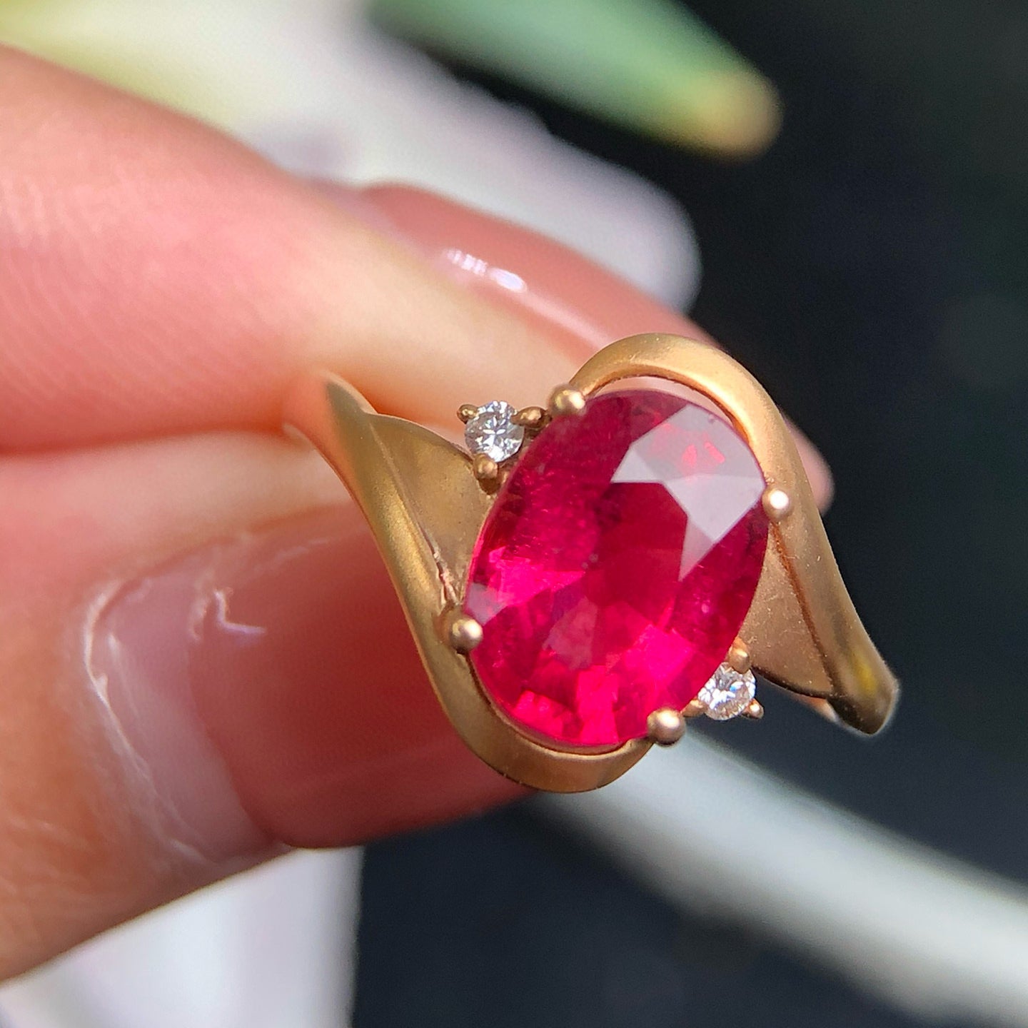 Ref:231023225 // Gold Content:14K Gold // Ring Size:7.25US // // Main Gemstone:Tourmaline // Shape:Oval // Carat Weight:2.46ct // Color:Rubellite // Treatment:Natural // // Adjacent Gemstone 2 : Diamond // Shape:Round // Clarity Grade:VS-SI // Color:H // Treatment:Natural // Cut Grade:G //