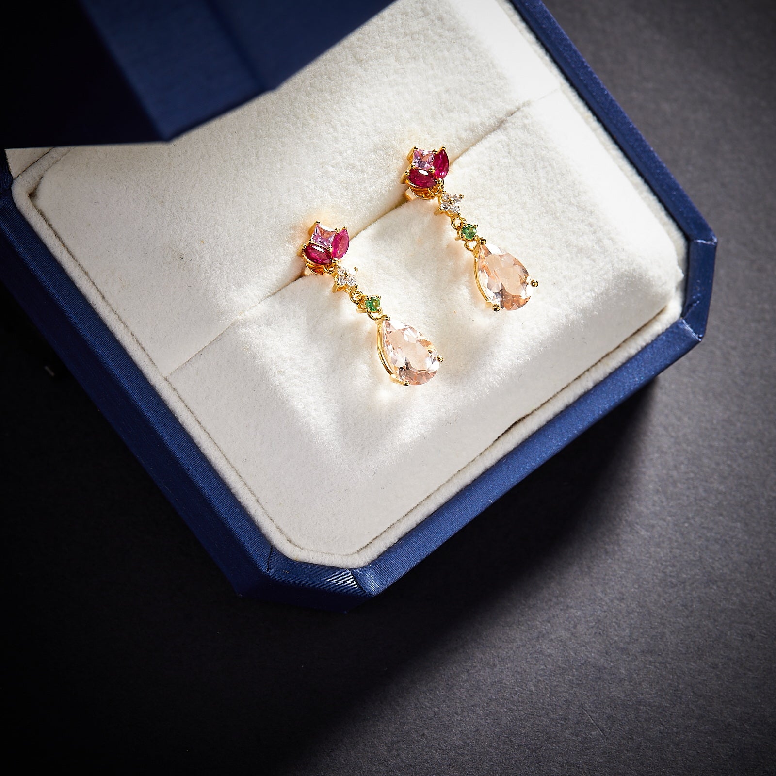Ref:231027031 // Gold Content:14K Gold // Main Gemstone:Morganite // Shape:Pear // Carat Weight:2.42ct // Color:Pink // Treatment:Natural // // Adjacent Gemstone 2 : Diamond // Shape:Round // Carat Weight:0.06ct // Clarity Grade:VS-SI // Color:H // Treatment:Natural // Cut Grade:G // // Adjacent Gemstone 3 : Tourmaline // Shape:Multiply // Carat Weight:0.59ct // Color:Red // Treatment:Natural //