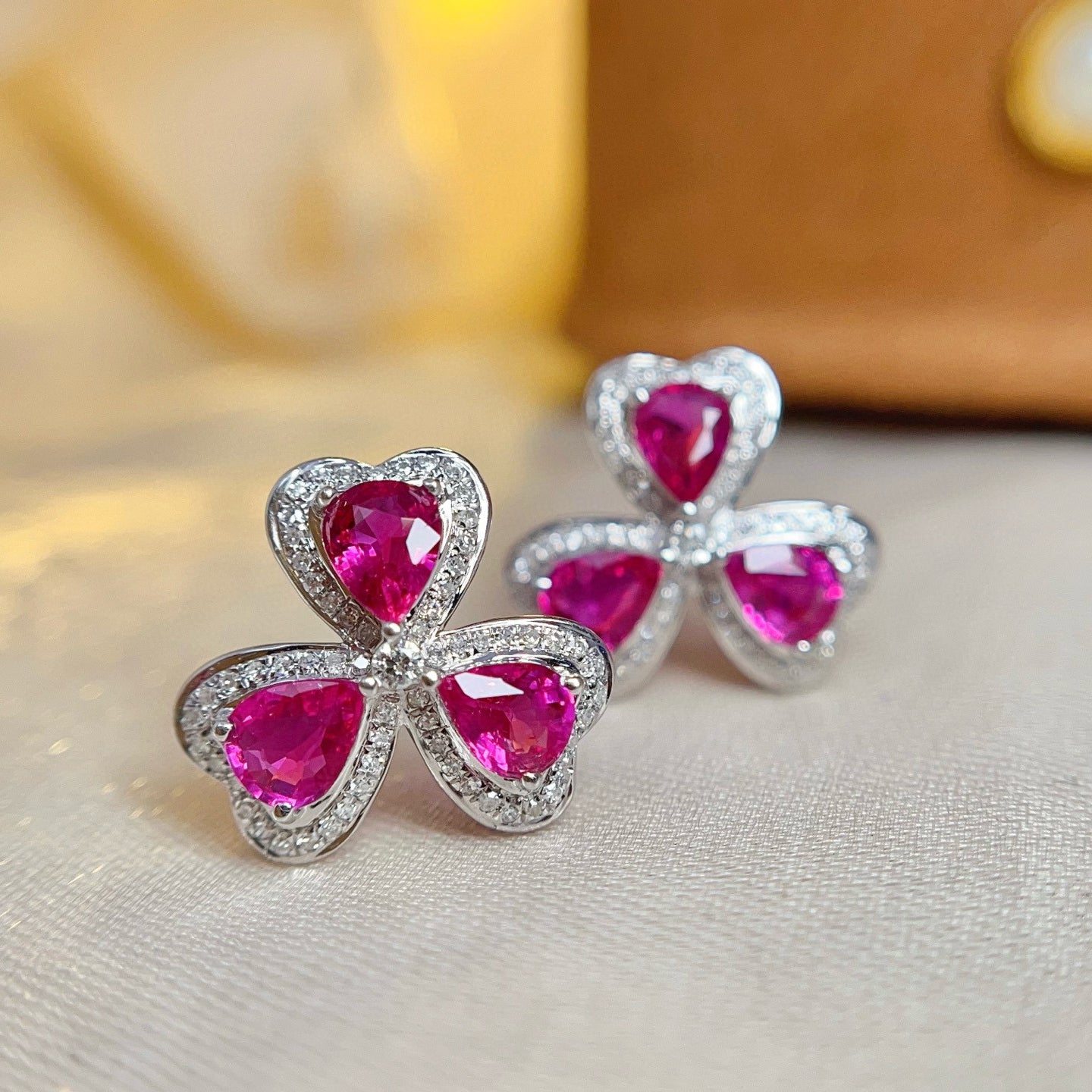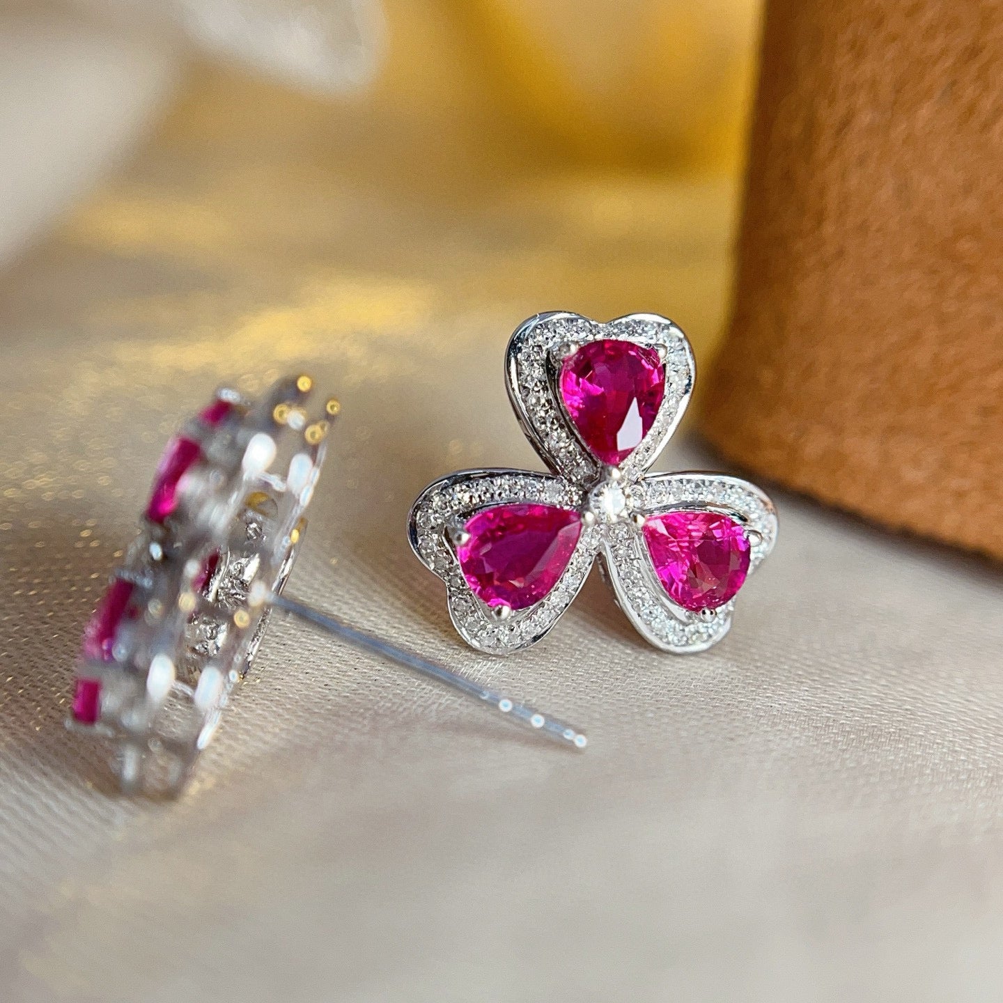 14K GOLD 2.50 CT NATURAL RUBY & DIAMOND EARRINGS
