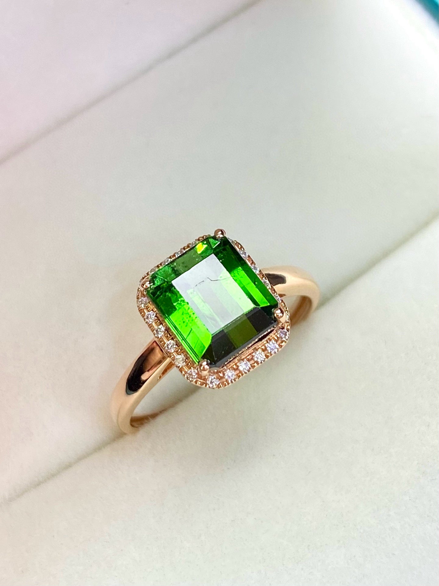 Ref:231019024 // Gold Content:14K Gold // Ring Size:7.25US // // Main Gemstone:Tourmaline // Shape:Octagonal // Carat Weight:2.56ct // Color:Green // Treatment:Natural // // Adjacent Gemstone 2 : Moissanite // Number of stones:24 // Shape:Round // Clarity Grade:VS-SI // Color:H //