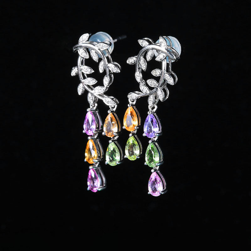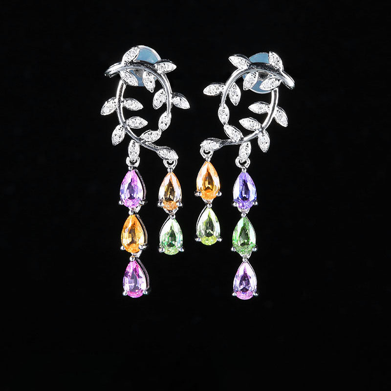 Ref:231021018 // Gold Content:14K Gold // Main Gemstone:Sapphire // Shape:Pear // Carat Weight:2.45ct // Color:Color // Treatment:Natural // // Adjacent Gemstone 2 : Diamond // Number of stones:56 // Shape:Round // Carat Weight:0.17ct // Clarity Grade:VS-SI // Color:H // Treatment:Natural // Cut Grade:G //