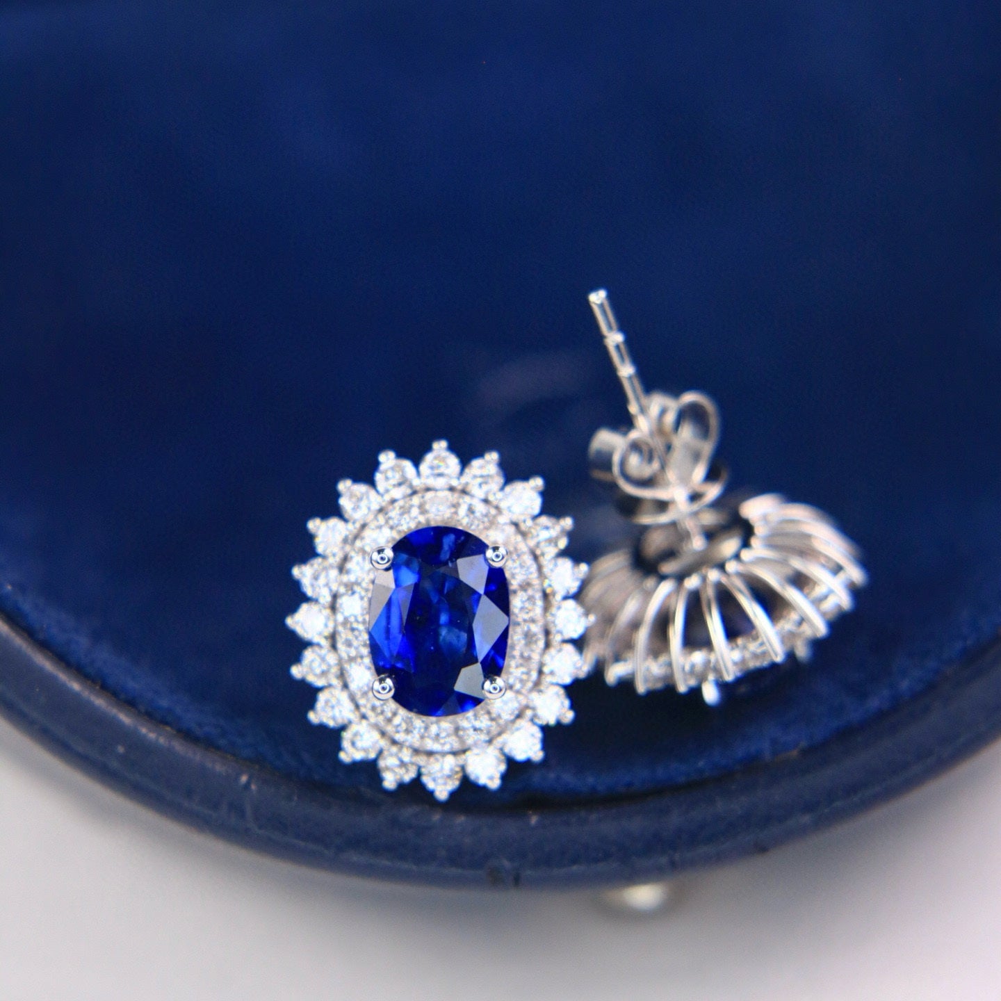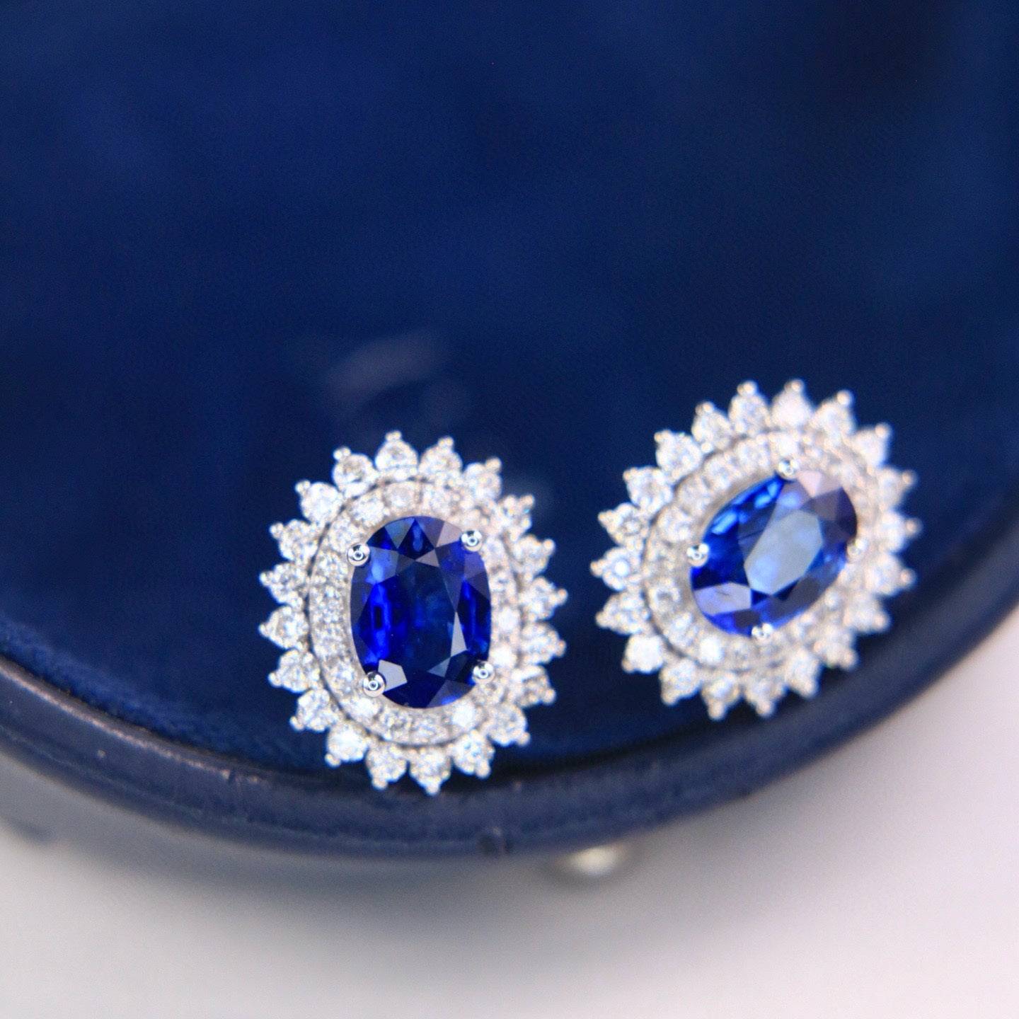 Ref:231023085 // Gold Content:14K Gold // Main Gemstone:Sapphire // Shape:Oval // Carat Weight:1.84ct // Color:Blue // Treatment:Natural // // Adjacent Gemstone 2 : Diamond // Shape:Round // Carat Weight:0.78ct // Clarity Grade:VS-SI // Color:H // Treatment:Natural // Cut Grade:G //