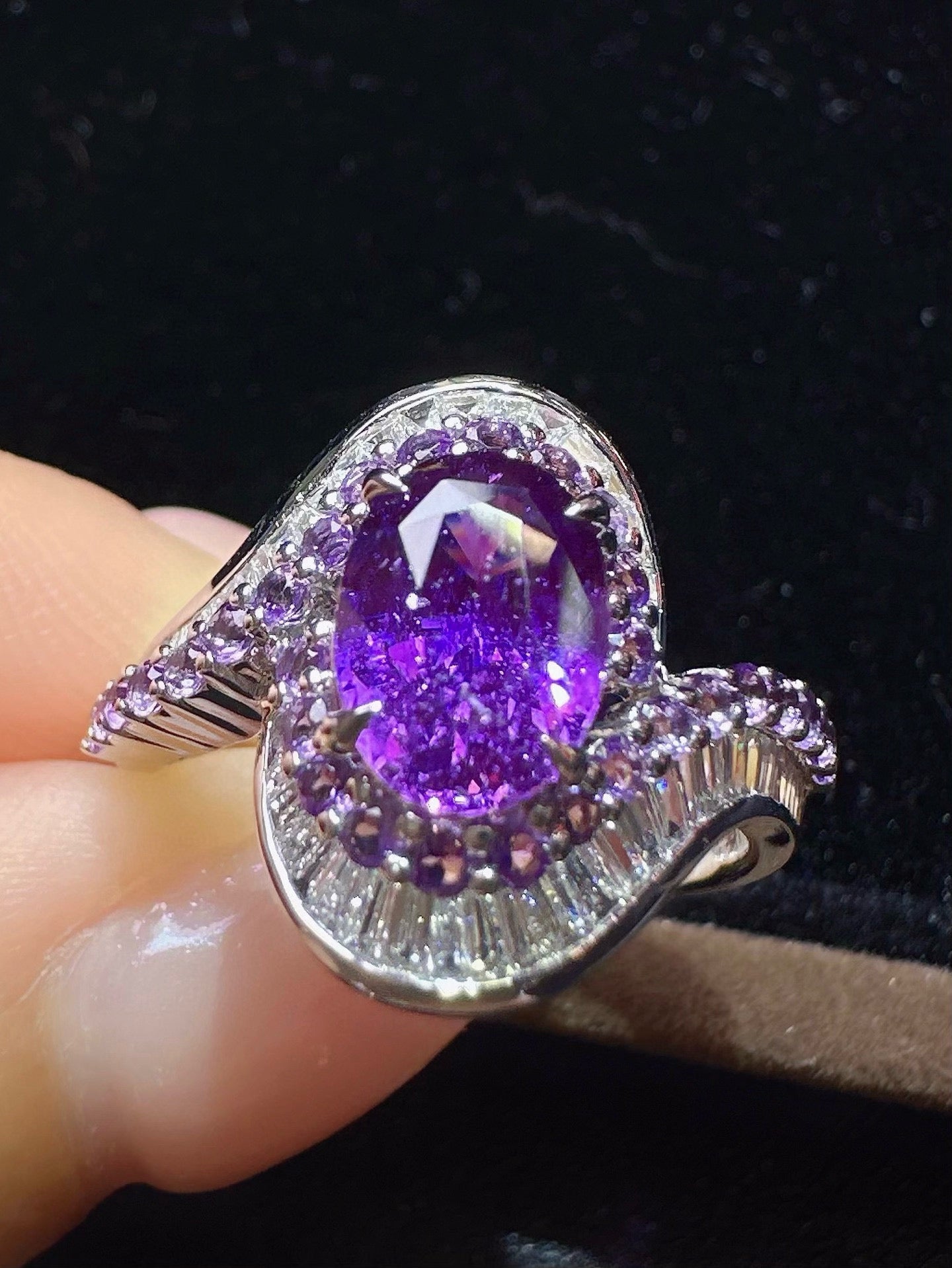 Ref:231027154 // Gold Content:14K Gold // Ring Size:7.25US // // Main Gemstone:Sapphire // Shape:Oval // Carat Weight:2.03ct // Color:Purple // Treatment:Natural // // Adjacent Gemstone 2 : Diamond // Shape:Baguette // Carat Weight:0.64ct // Clarity Grade:VS-SI // Color:H // Treatment:Natural //