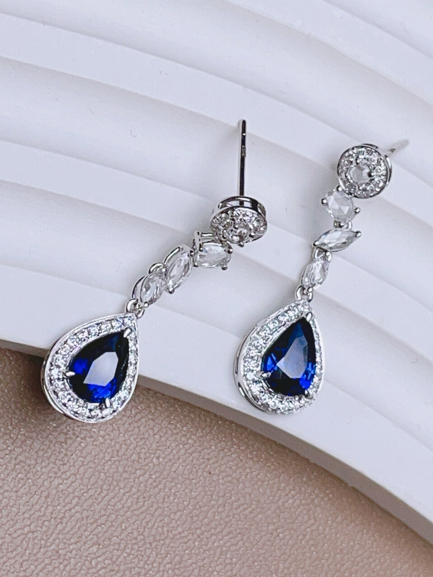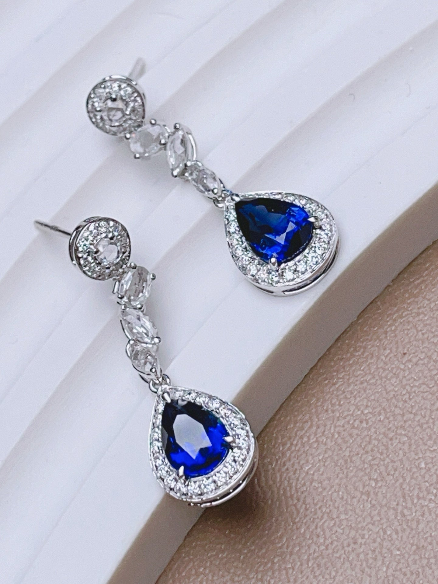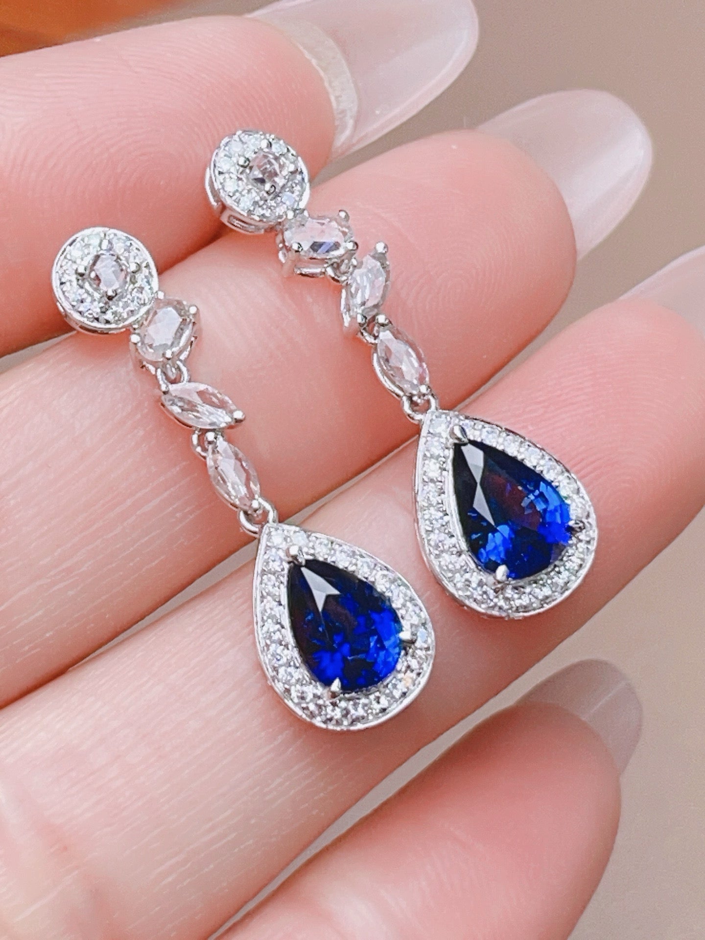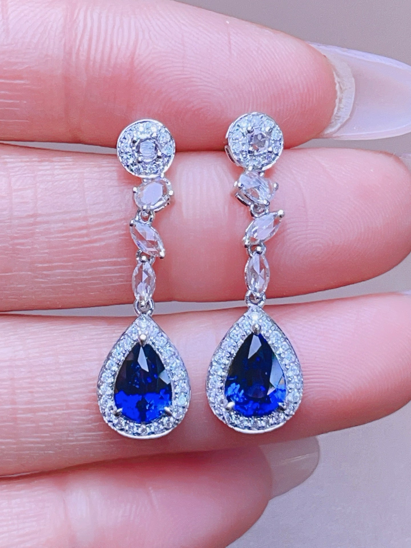Ref:231019210 // Gold Content:14K Gold // Main Gemstone:Sapphire // Shape:Pear // Carat Weight:2.4ct // Color:Blue // Treatment:Natural // // Adjacent Gemstone 2 : Diamond // Shape:Round // Carat Weight:0.3ct // Clarity Grade:VS-SI // Color:H // Treatment:Natural // Cut Grade:G // // Adjacent Gemstone 3 : Sapphire // Number of stones:8 // Shape:Multiply // Color:White // Treatment:Natural //