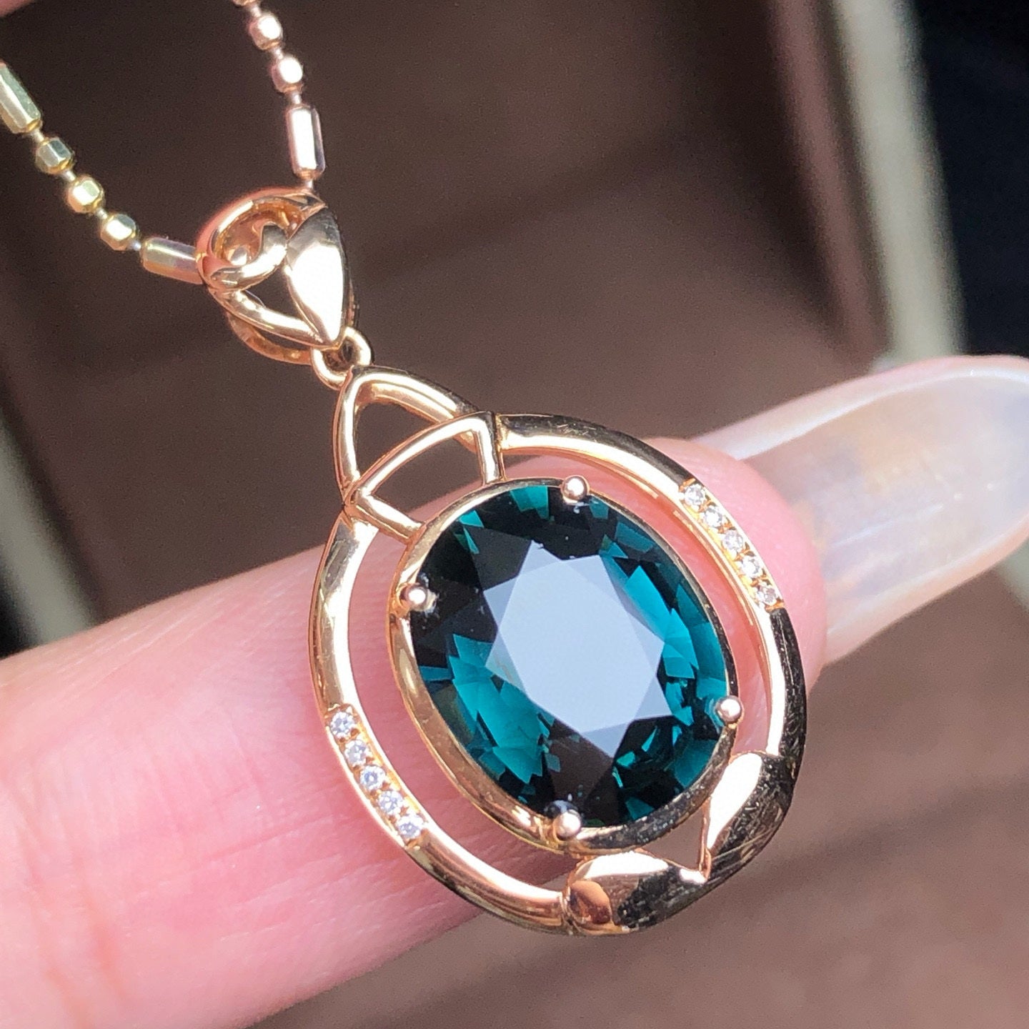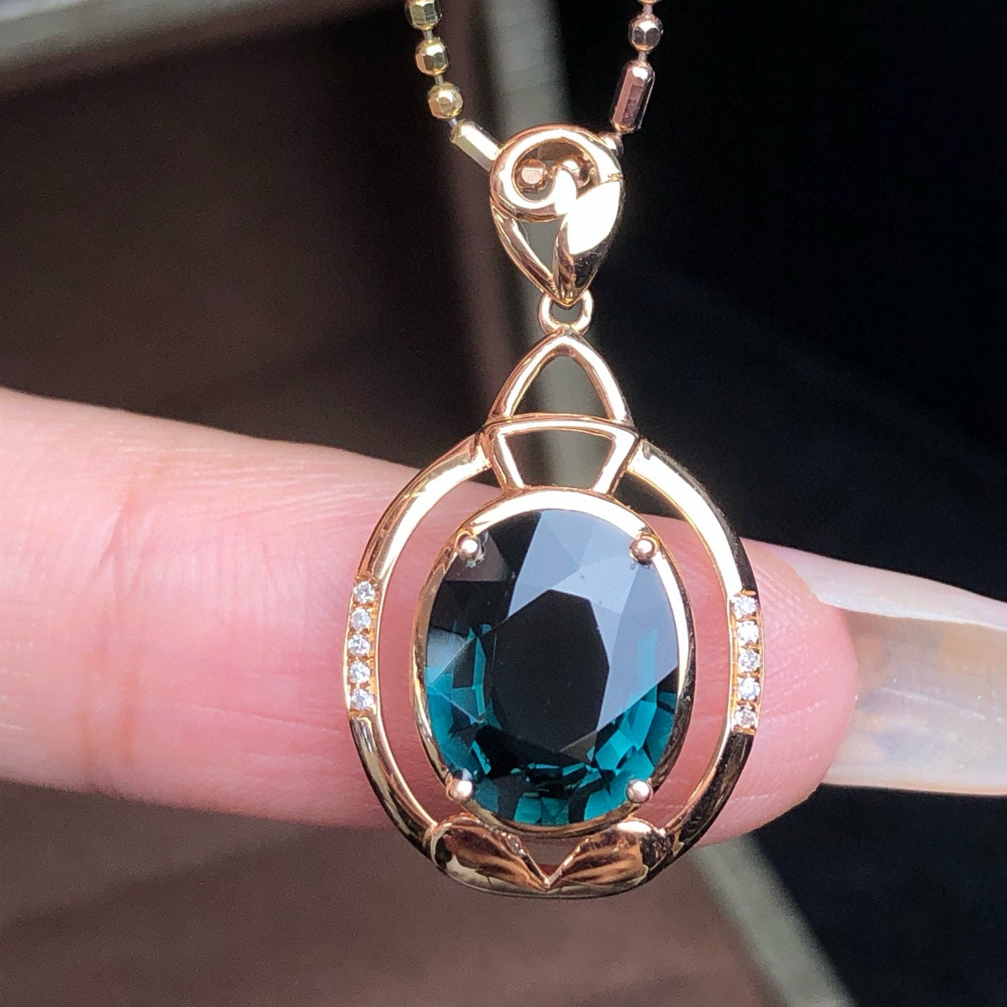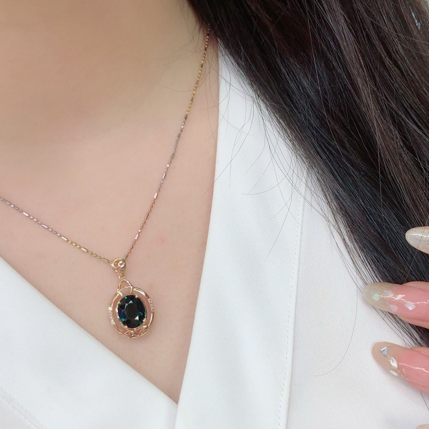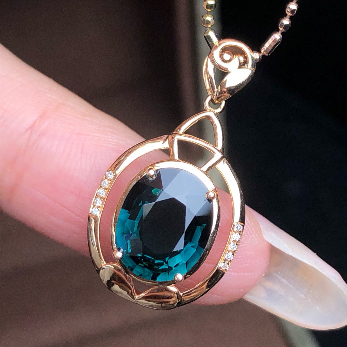 Ref:231023172 // Gold Content:14K Gold // Main Gemstone:Tourmaline // Shape:Oval // Carat Weight:2.75ct // Color:Blue // Treatment:Natural // // Adjacent Gemstone 2 : Diamond // Number of stones:10 // Shape:Round // Clarity Grade:VS-SI // Color:H // Treatment:Natural // Cut Grade:G //