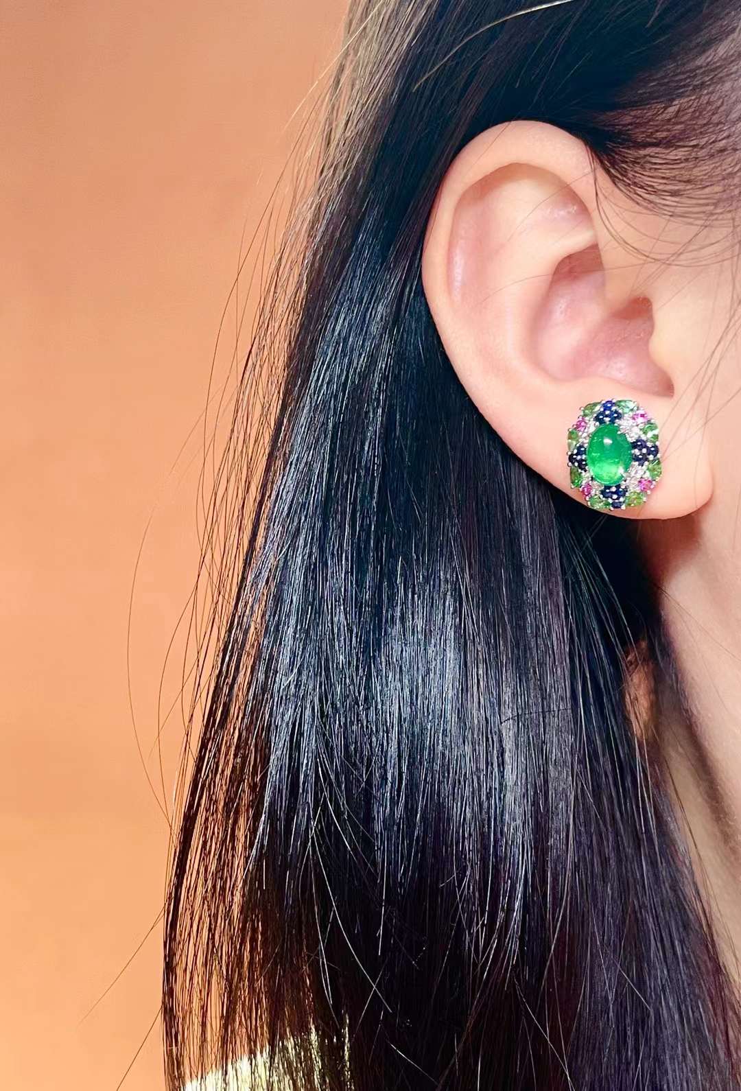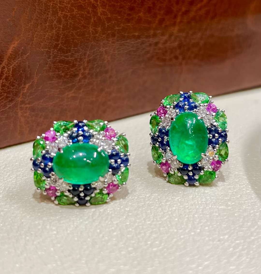 Ref:231021049 // Gold Content:14K Gold // Main Gemstone:Emerald // Shape:Oval // Carat Weight:2.55ct // Color:Green // Treatment:Natural // // Adjacent Gemstone 2 : Diamond // Shape:Round // Carat Weight:0.24ct // Clarity Grade:VS-SI // Color:H // Treatment:Natural // Cut Grade:G // // Adjacent Gemstone 3 : Sapphire // Shape:Round // Color:Color // Treatment:Natural // Cut Grade:G // // Adjacent Gemstone 4 : Tsavorite // Shape:Pear // Color:Green // Treatment:Natural //