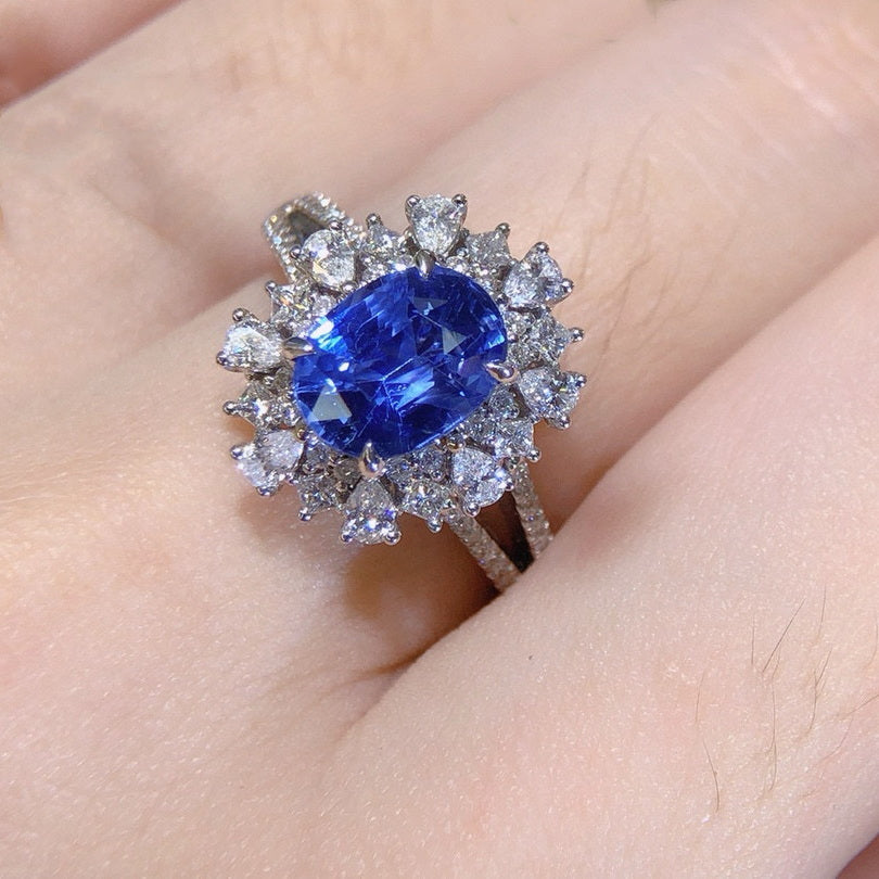 Ref:231023176 // Gold Content:14K Gold // Ring Size:7.25US // // Main Gemstone:Sapphire // Shape:Oval // Carat Weight:2.08ct // Color:Blue // Treatment:Natural // // Adjacent Gemstone 2 : Diamond // Shape:Multiply // Carat Weight:0.76ct // Clarity Grade:VS-SI // Color:H // Treatment:Natural //