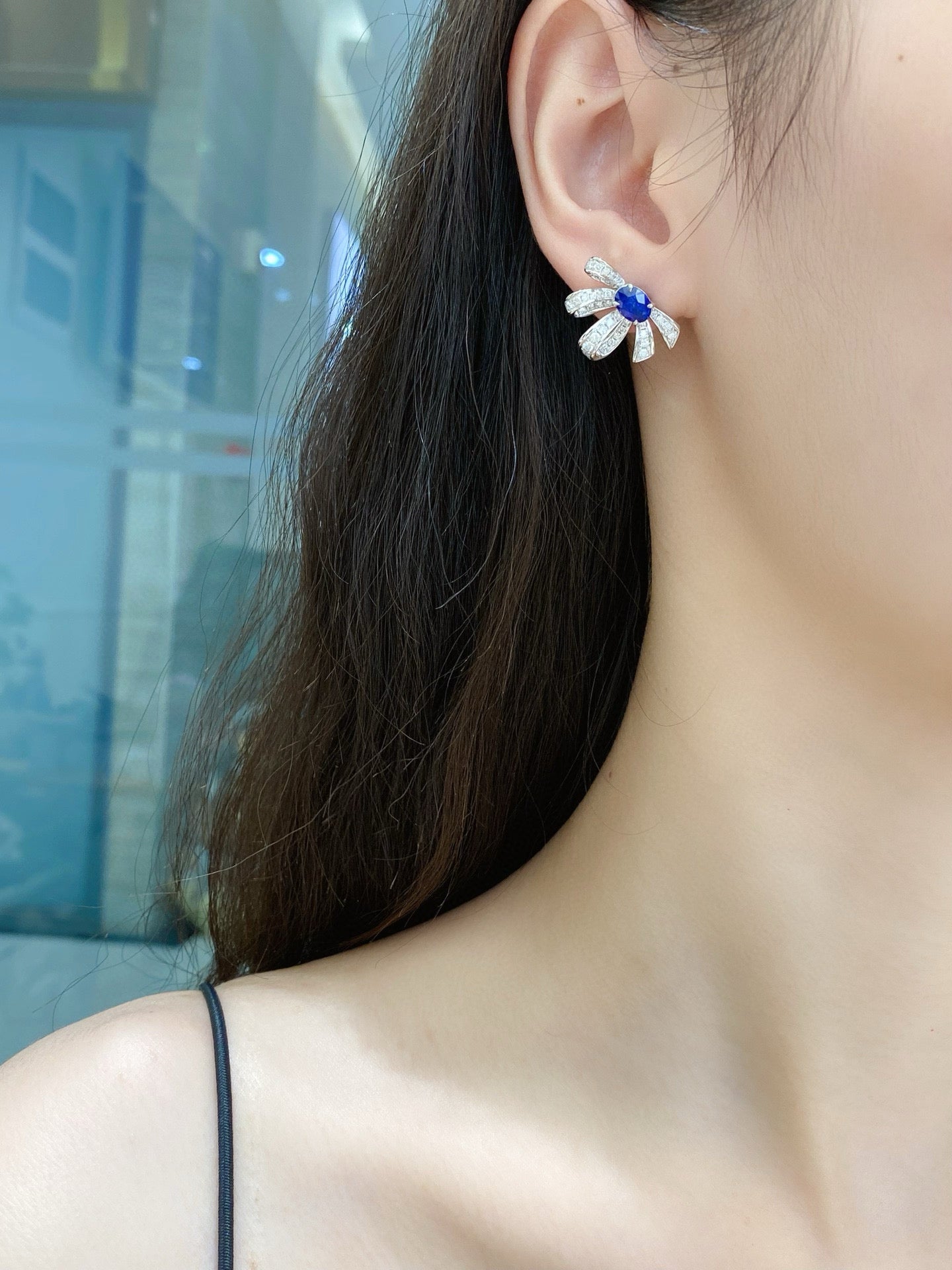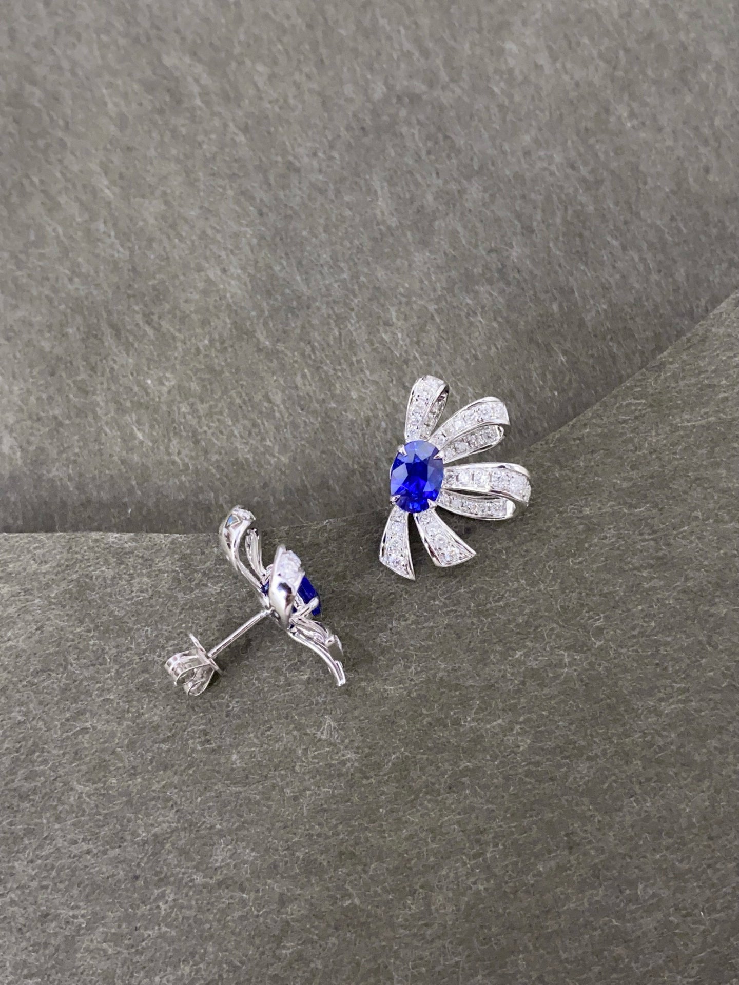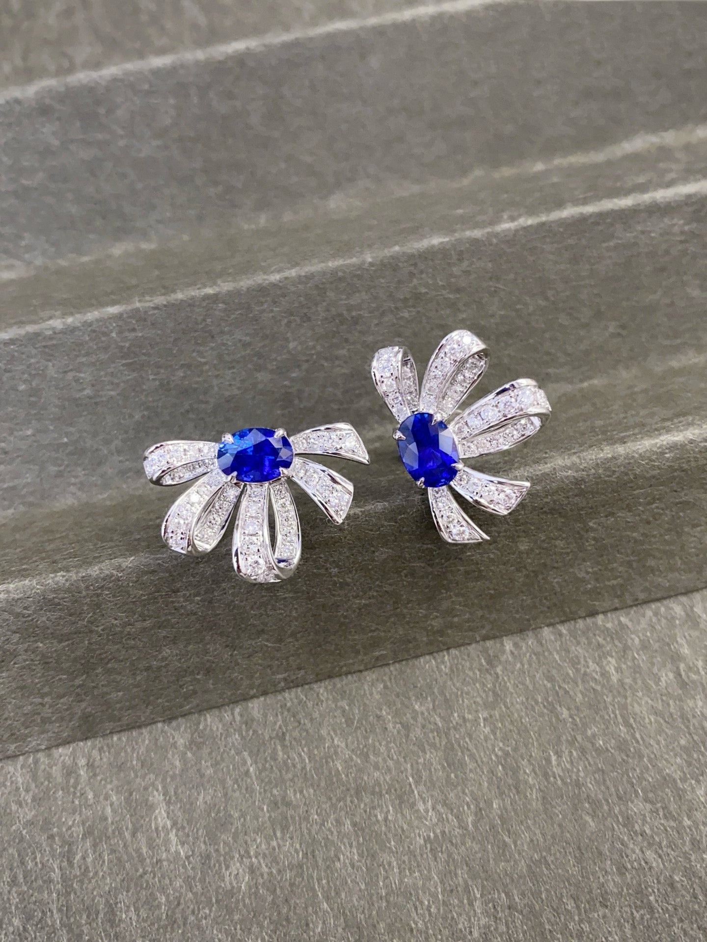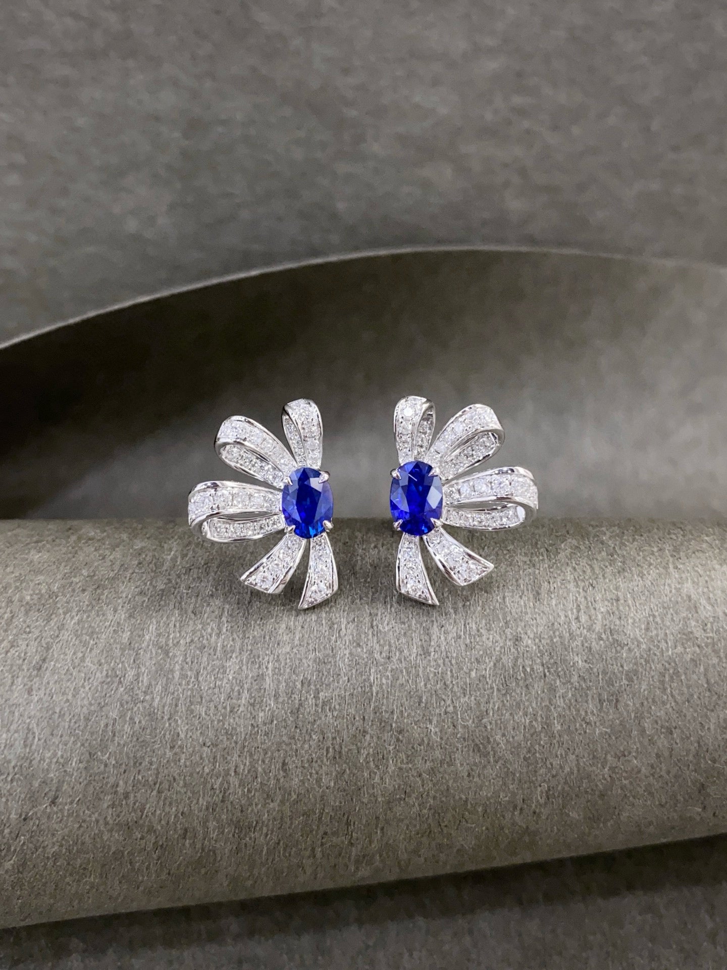 Ref:231027076 // Gold Content:14K Gold // Main Gemstone:Sapphire // Shape:Oval // Carat Weight:2.15ct // Color:Vivid Blue // Treatment:Natural // // Adjacent Gemstone 2 : Diamond // Shape:Round // Carat Weight:0.71ct // Clarity Grade:VS-SI // Color:H // Treatment:Natural // Cut Grade:G //