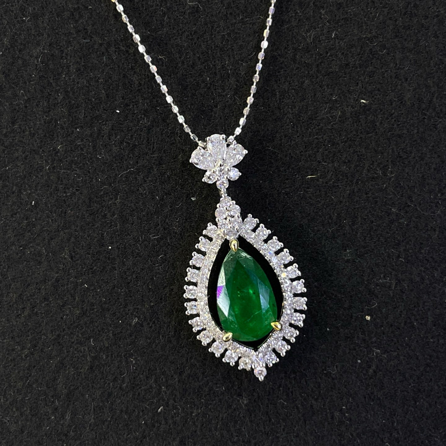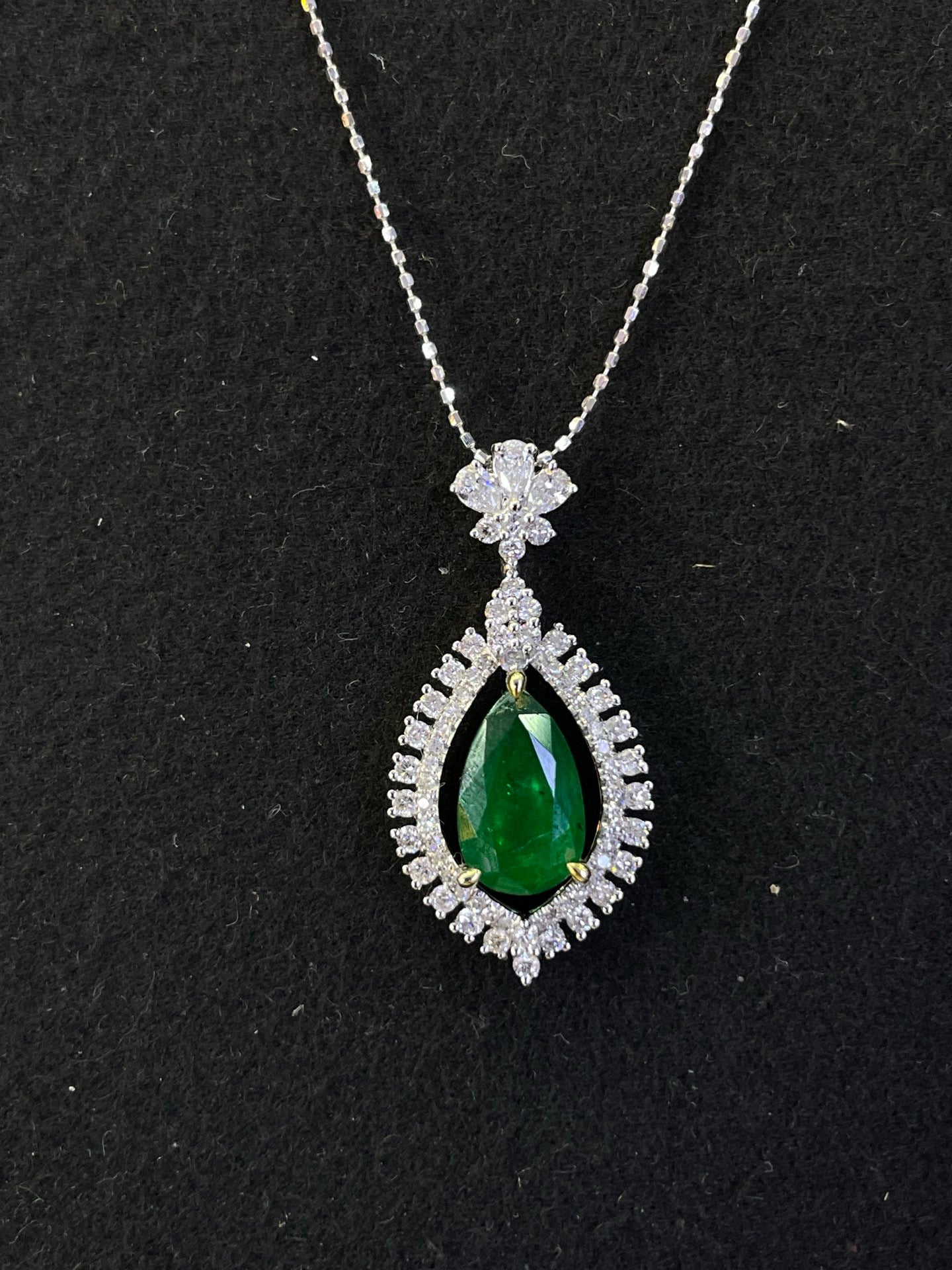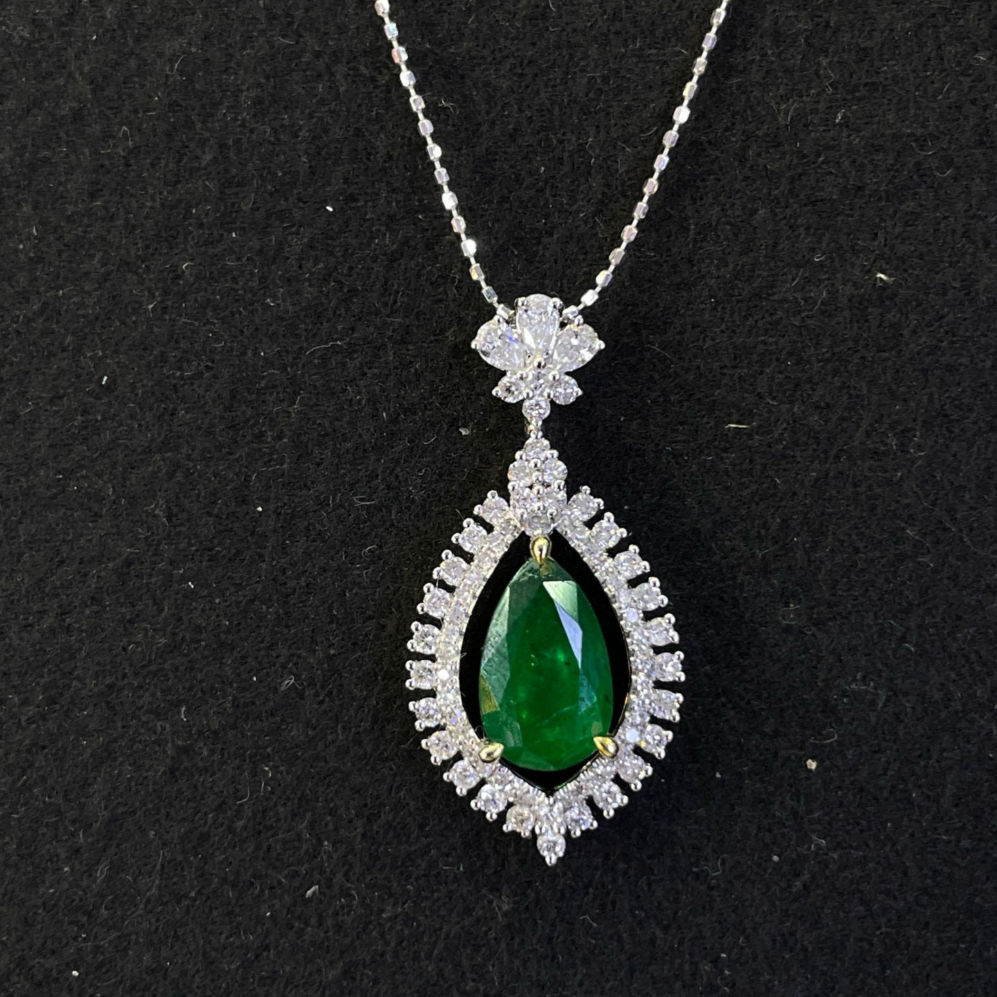 Ref:231019152 // Gold Content:14K Gold // Main Gemstone:Emerald // Shape:Pear // Carat Weight:2.07ct // Color:Green // Treatment:Natural // // Adjacent Gemstone 2 : Diamond // Shape:Multiply // Carat Weight:0.80ct // Clarity Grade:VS-SI // Color:H // Treatment:Natural //