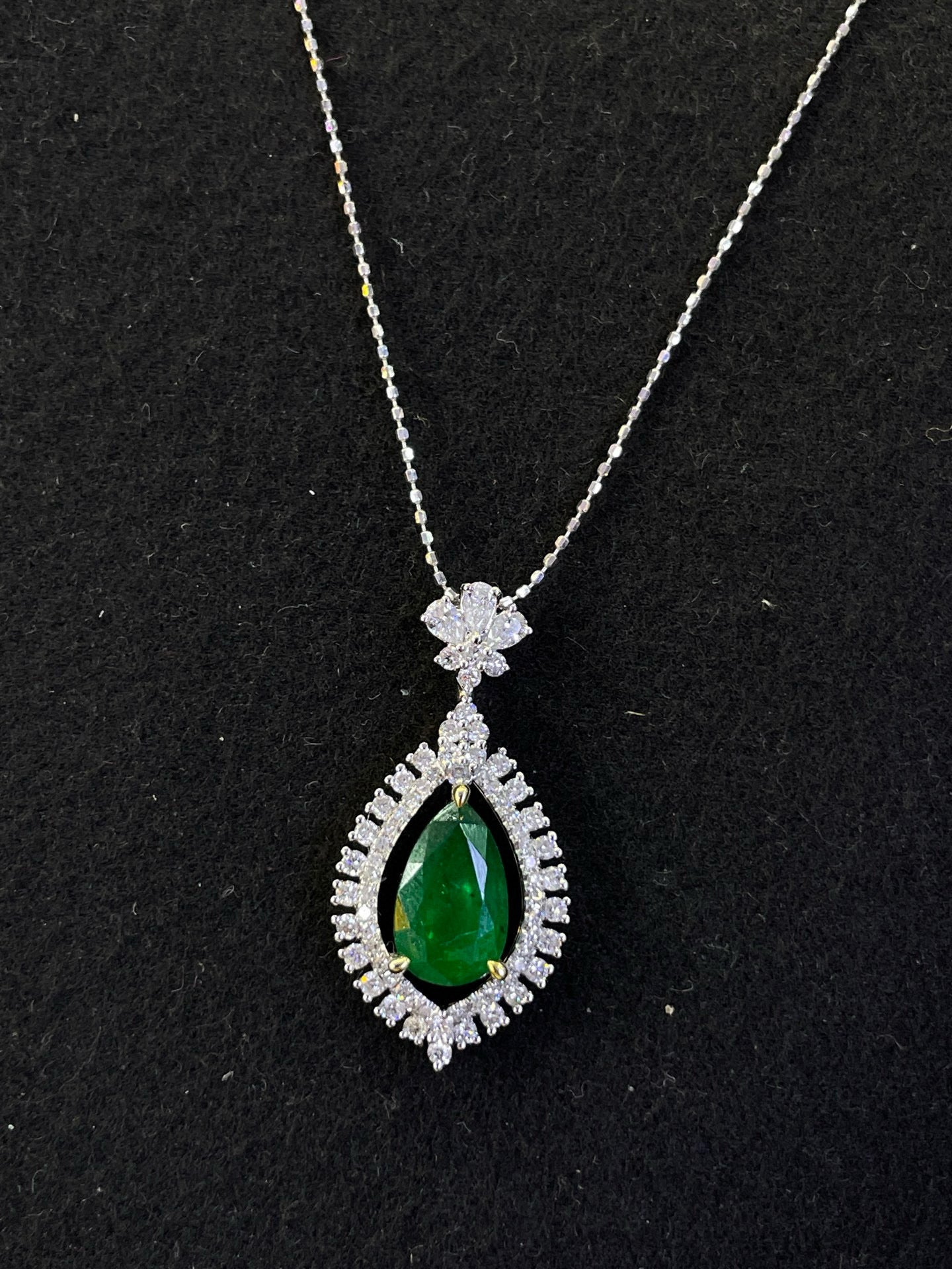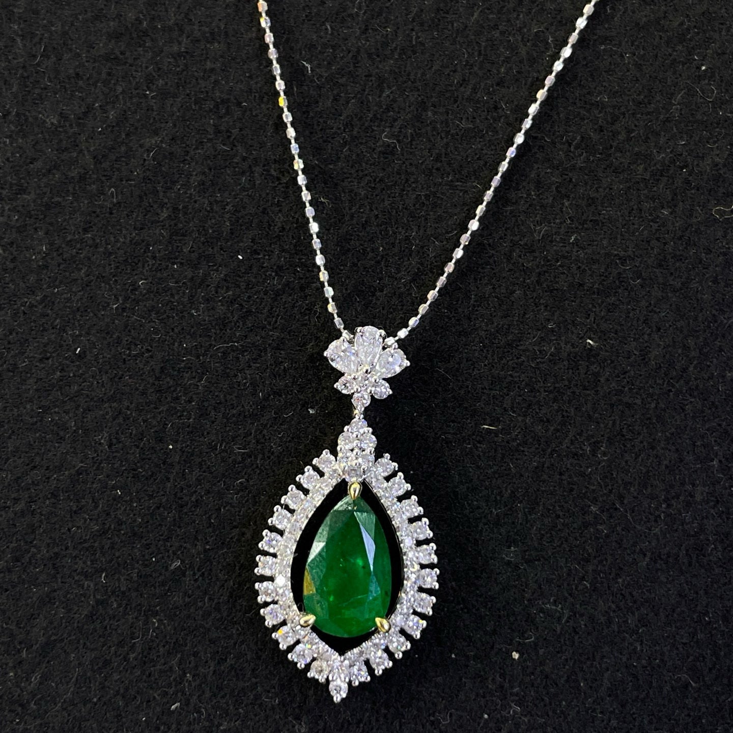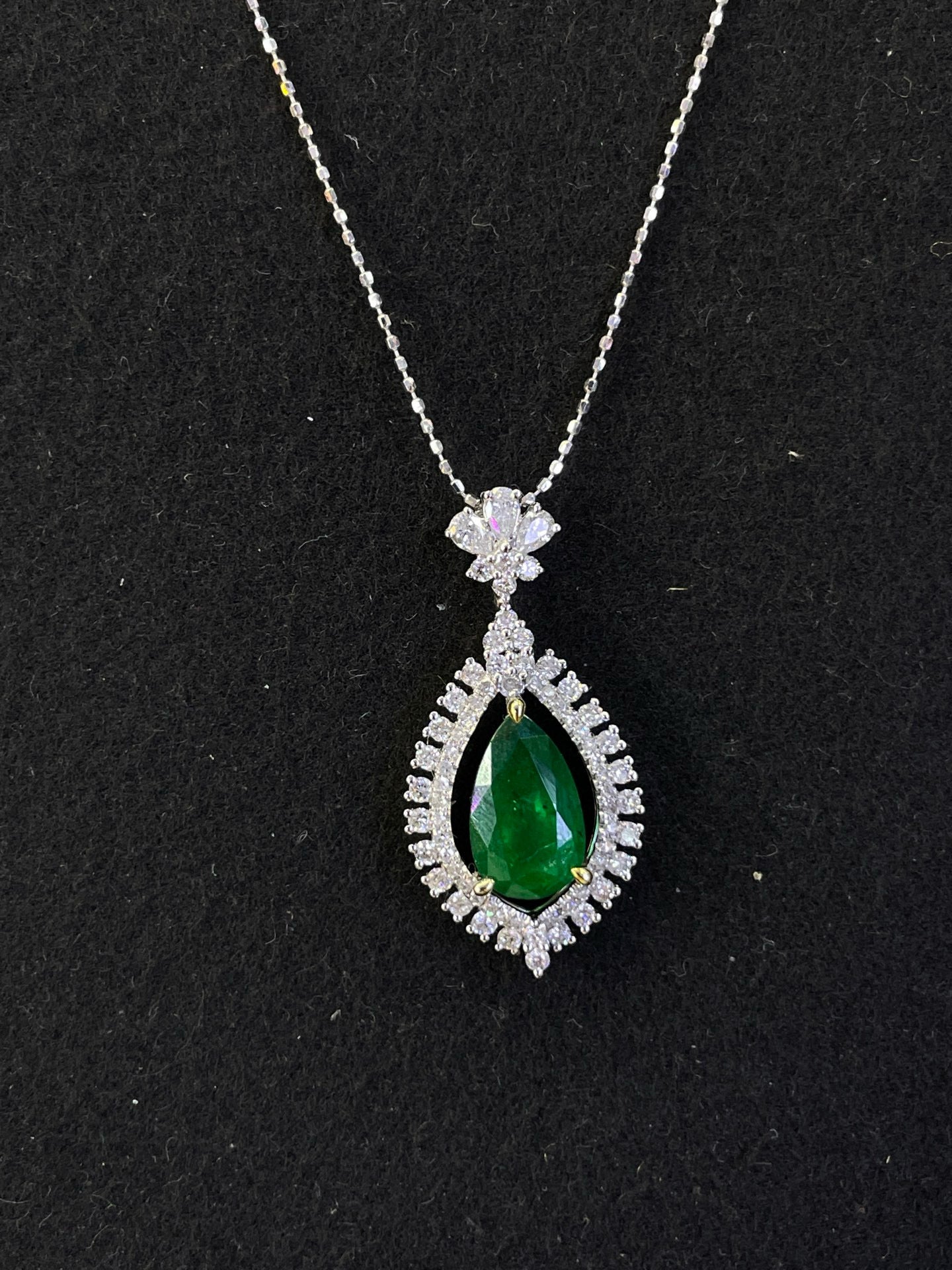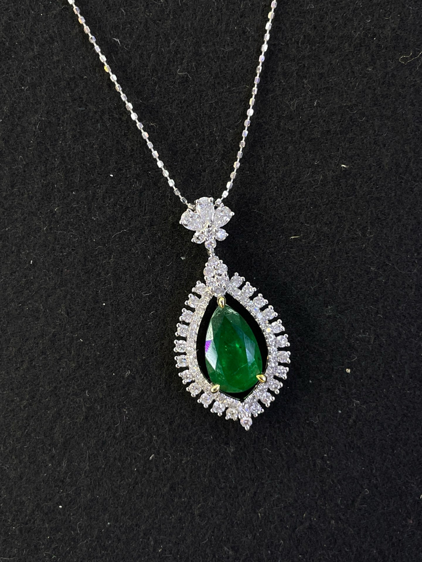Ref:231019152 // Gold Content:14K Gold // Main Gemstone:Emerald // Shape:Pear // Carat Weight:2.07ct // Color:Green // Treatment:Natural // // Adjacent Gemstone 2 : Diamond // Shape:Multiply // Carat Weight:0.80ct // Clarity Grade:VS-SI // Color:H // Treatment:Natural //