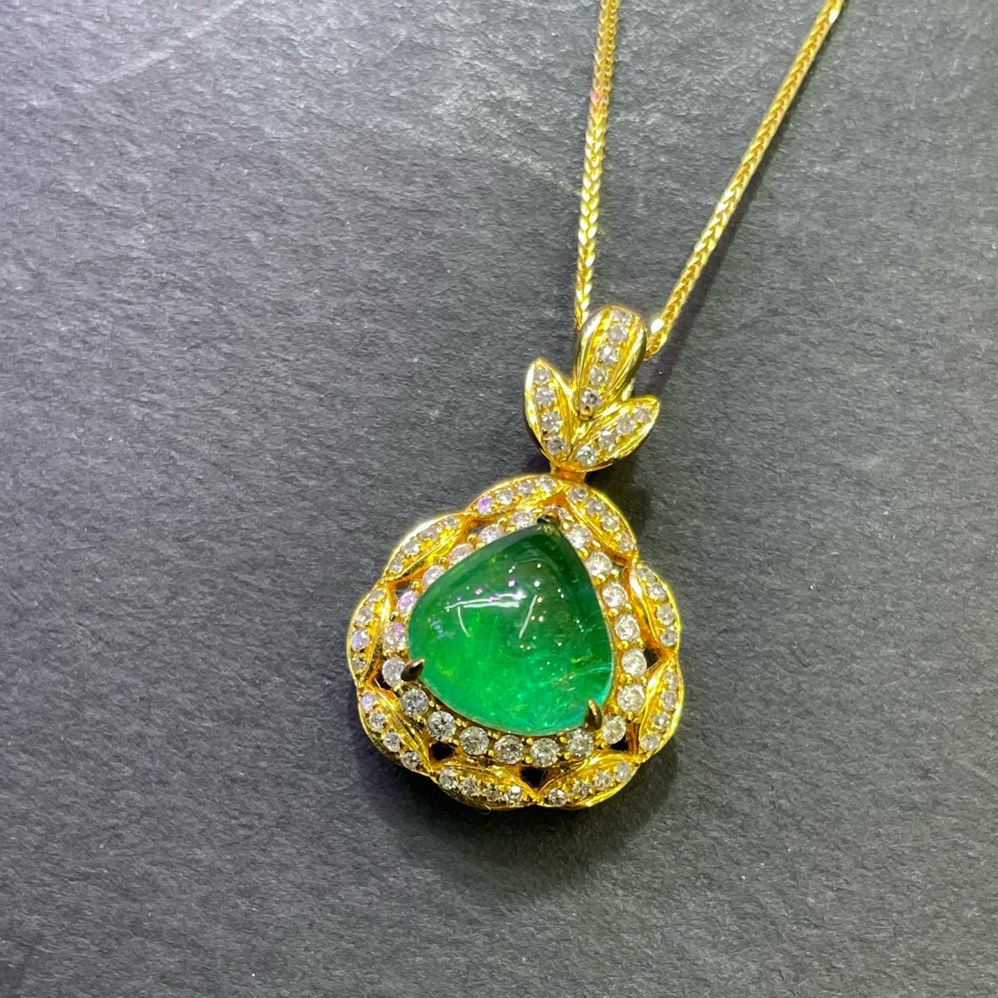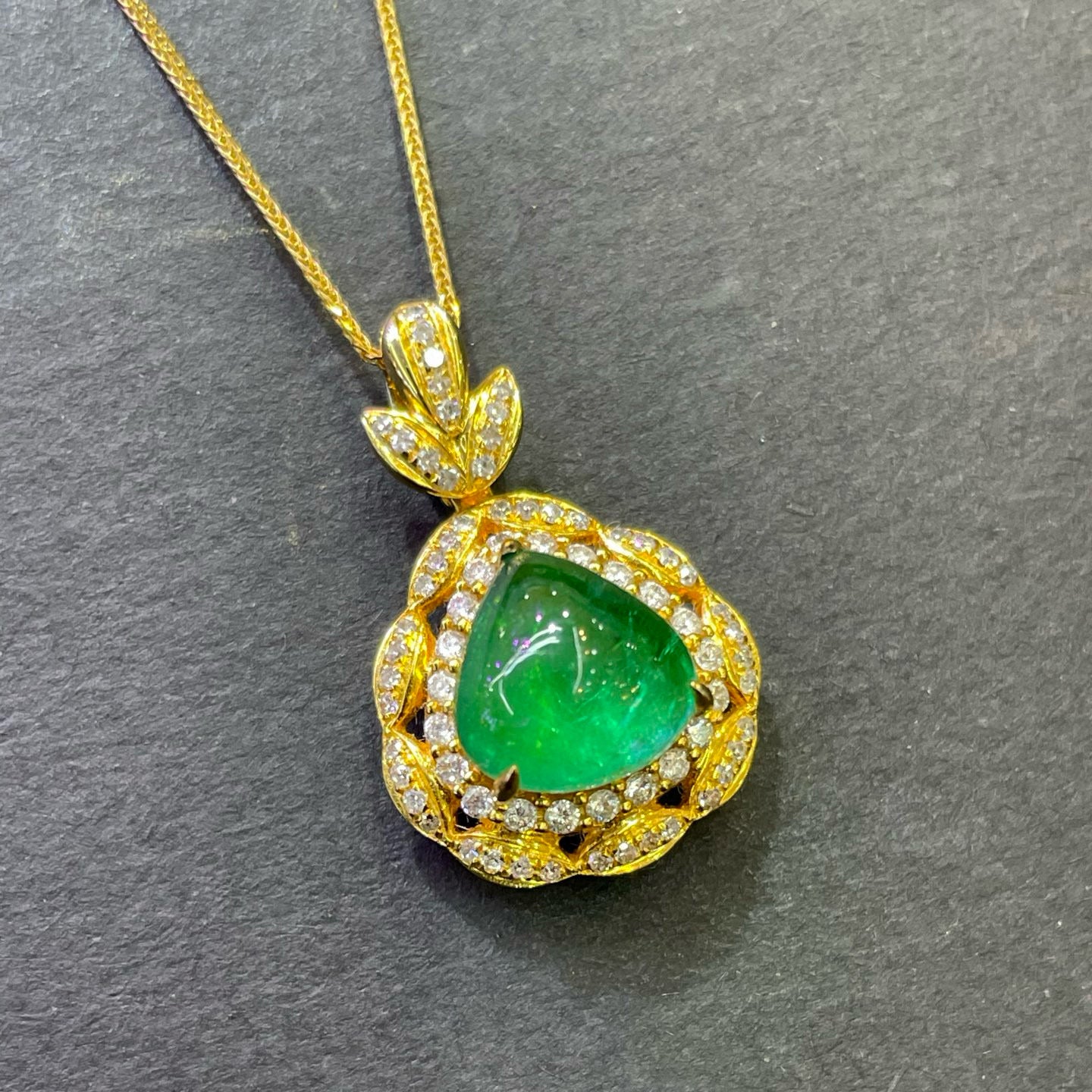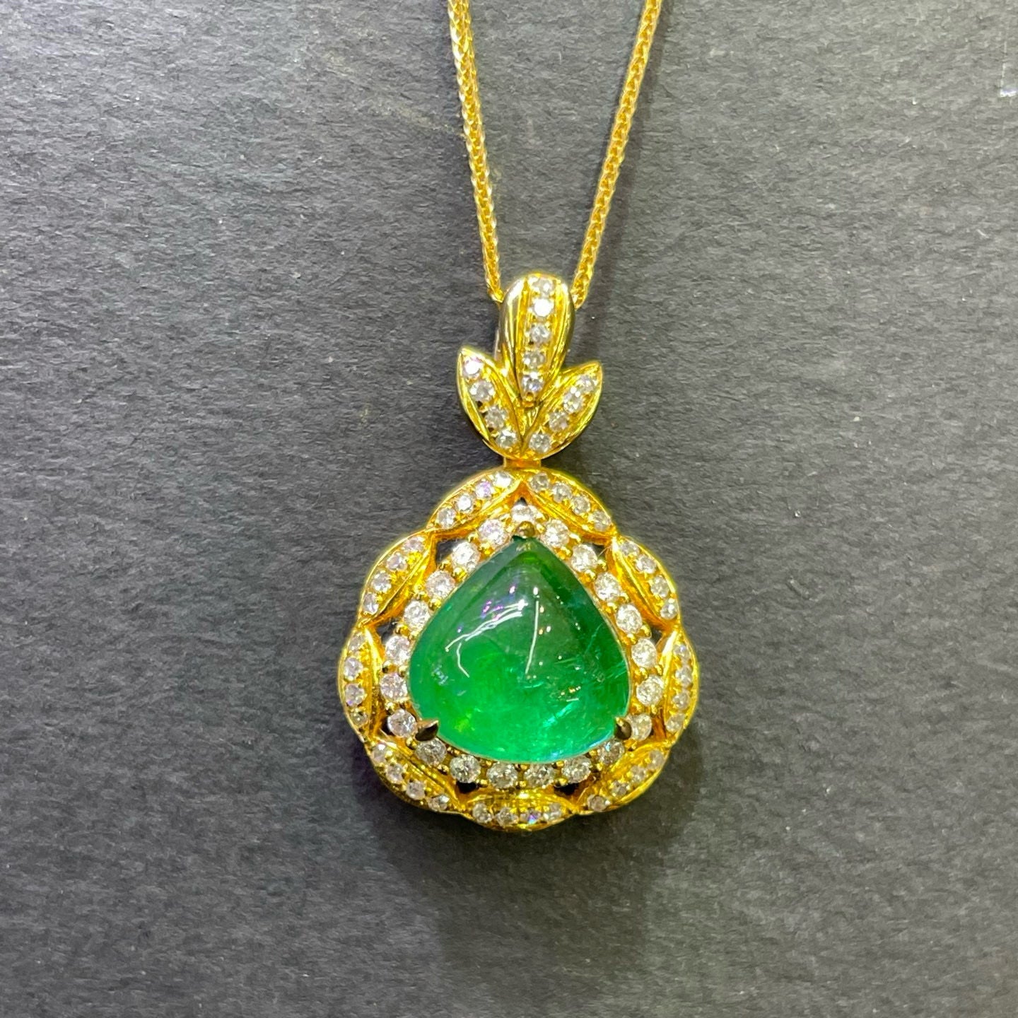 Ref:231023134 // Gold Content:14K Gold // Main Gemstone:Emerald // Shape:Pear // Carat Weight:2.9ct // Color:Green // Treatment:Natural // // Adjacent Gemstone 2 : Diamond // Number of stones:70 // Shape:Round // Clarity Grade:VS-SI // Color:H // Treatment:Natural // Cut Grade:G //