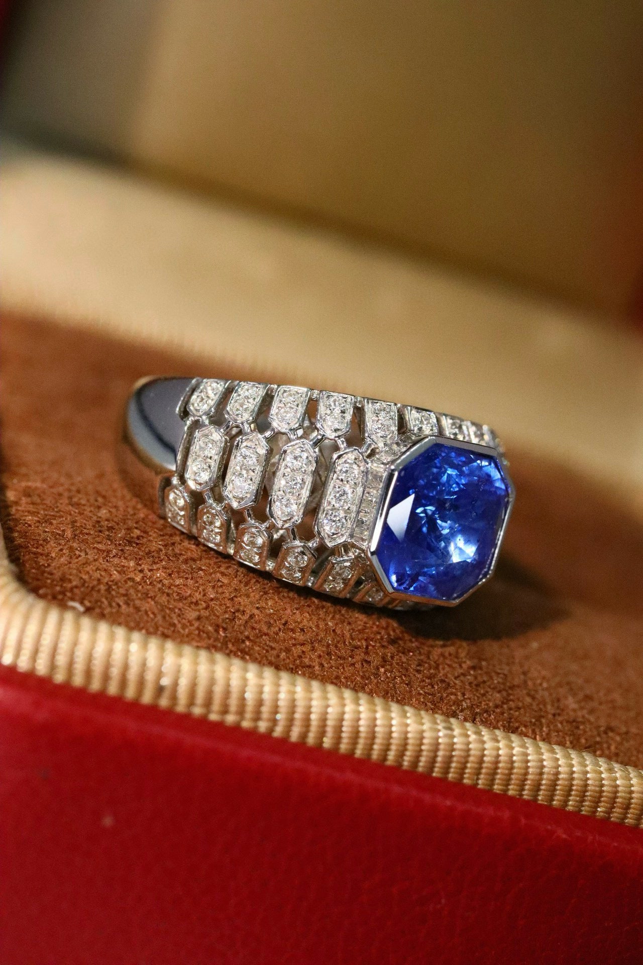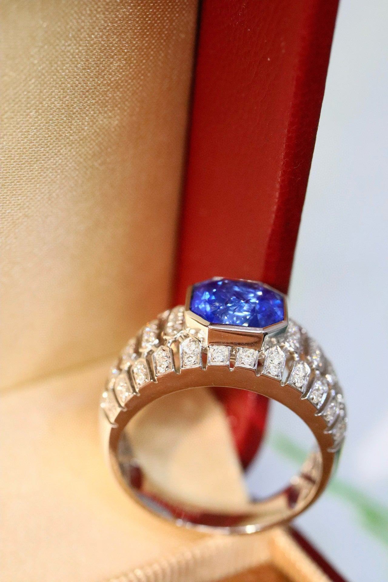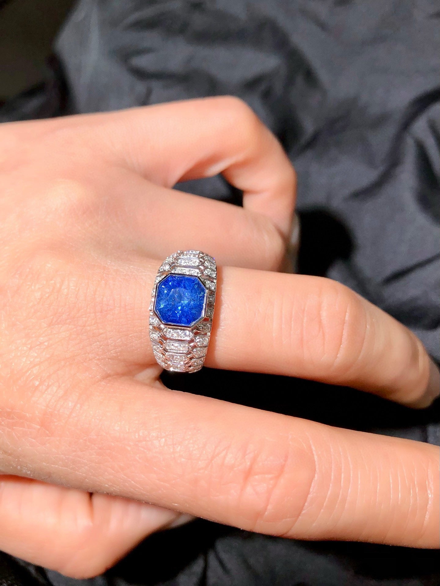 Ref:231019165 // Gold Content:14K Gold // Ring Size:7.25US // // Main Gemstone:Sapphire // Shape:Octagonal // Carat Weight:2.66ct // Color:Blue // Treatment:Natural // // Adjacent Gemstone 2 : Diamond // Shape:Round // Carat Weight:0.29ct // Clarity Grade:VS-SI // Color:H // Treatment:Natural // Cut Grade:G //