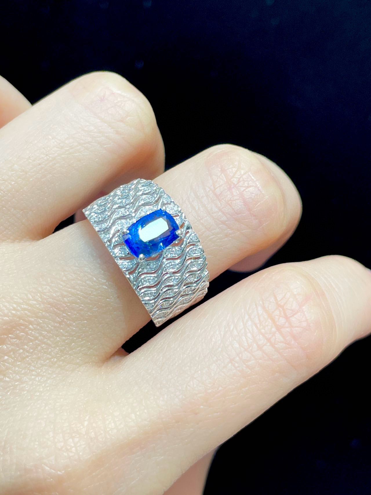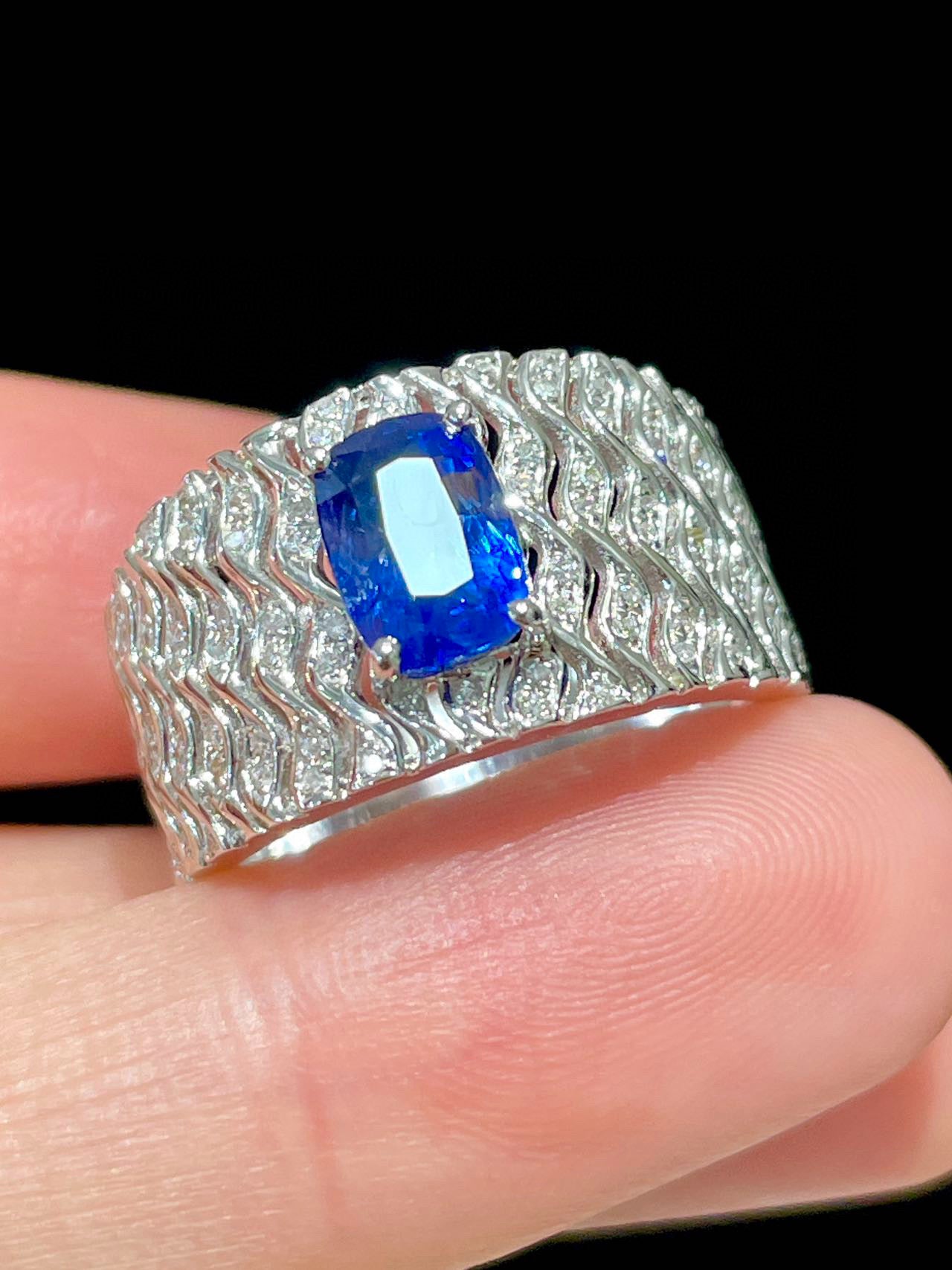 Ref:231027147 // Gold Content:14K Gold // Ring Size:7.25US // // Main Gemstone:Sapphire // Shape:Cushion // Carat Weight:2ct // Color:Cornflower Blue // Treatment:Natural // // Adjacent Gemstone 2 : Diamond // Shape:Round // Clarity Grade:VS-SI // Color:H // Treatment:Natural // Cut Grade:G //