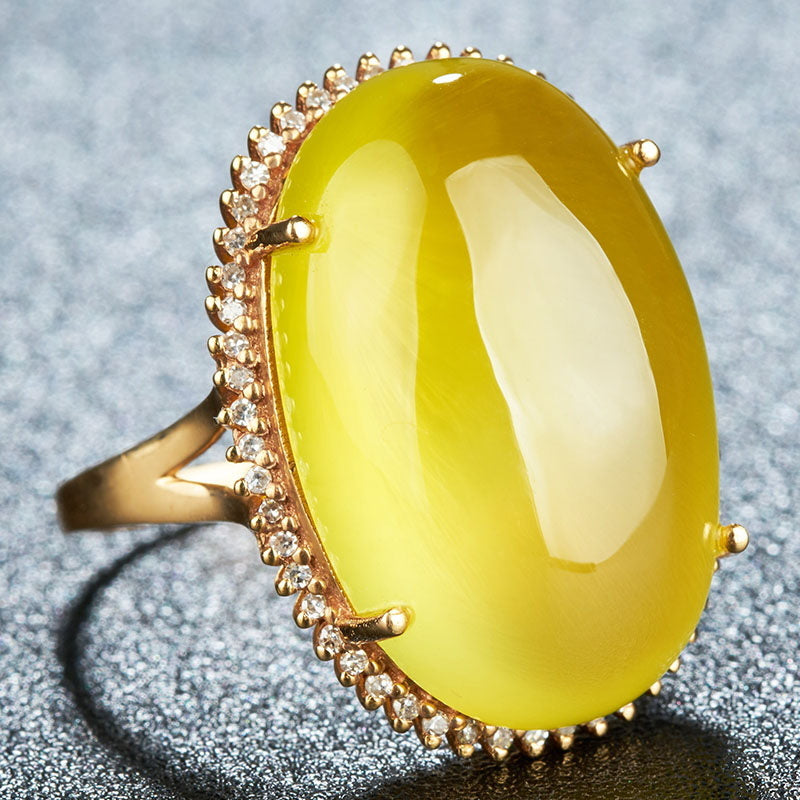 Ref:231021010 // Gold Content:14K Gold // Ring Size:7.25US // // Main Gemstone:Prehnite // Shape:Oval // Carat Weight:20.85ct // Color:Yellow // Treatment:Natural // // Adjacent Gemstone 2 : Diamond // Number of stones:54 // Shape:Round // Clarity Grade:VS-SI // Color:H // Treatment:Natural // Cut Grade:G //