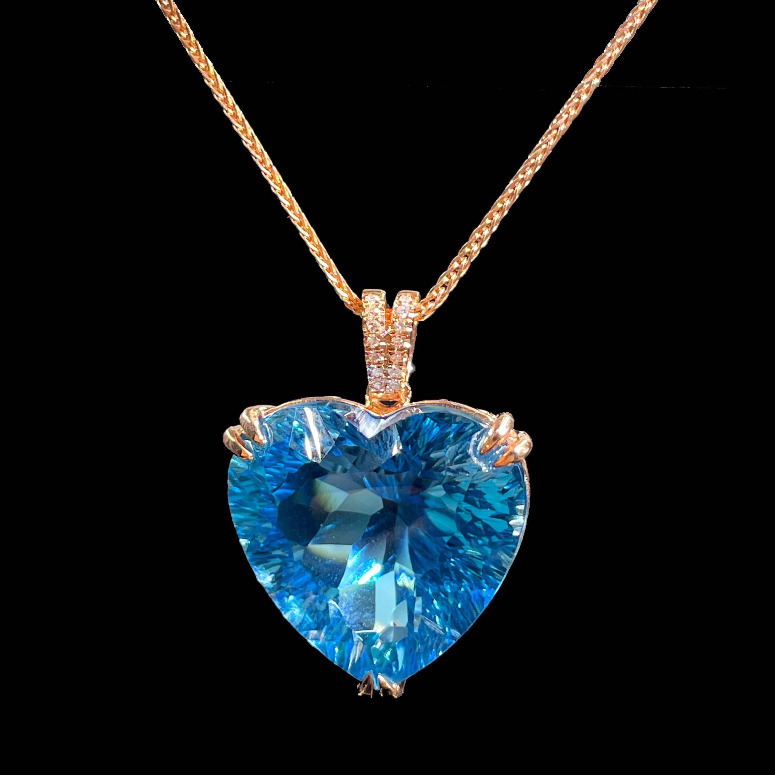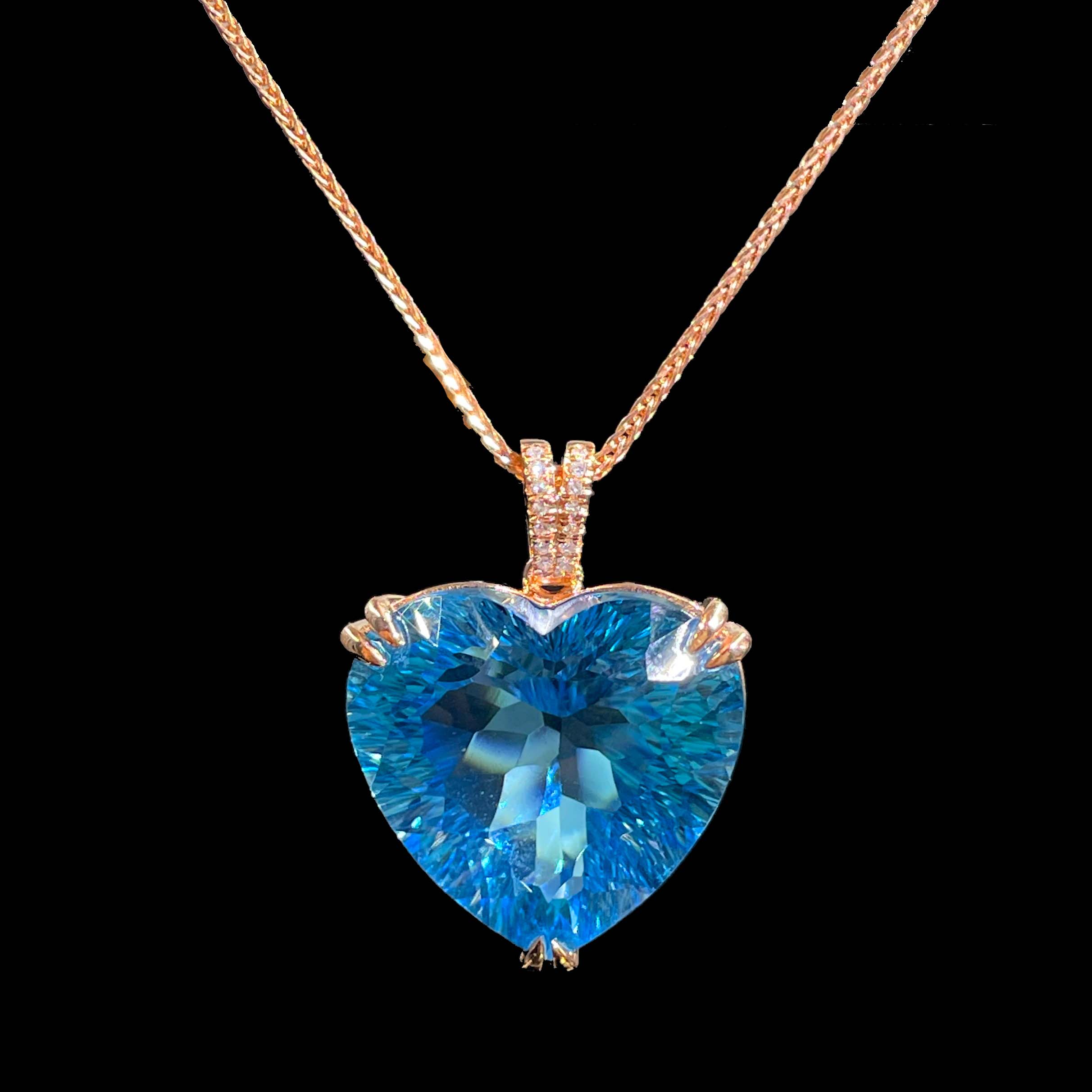 Ref:231027063 // Gold Content:14K Gold // Main Gemstone:Topaz // Shape:Heart // Carat Weight:24.68ct // Color:Blue // Treatment:Natural // // Adjacent Gemstone 2 : Diamond // Shape:Round // Clarity Grade:VS-SI // Color:H // Treatment:Natural // Cut Grade:G //