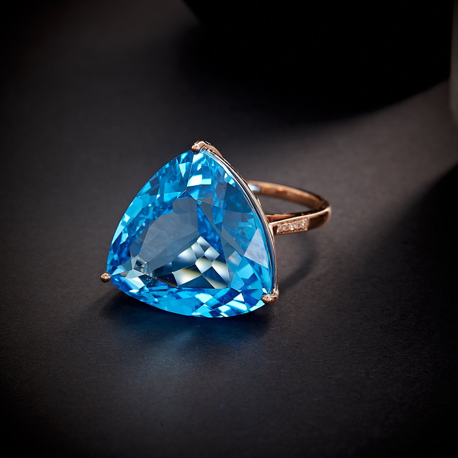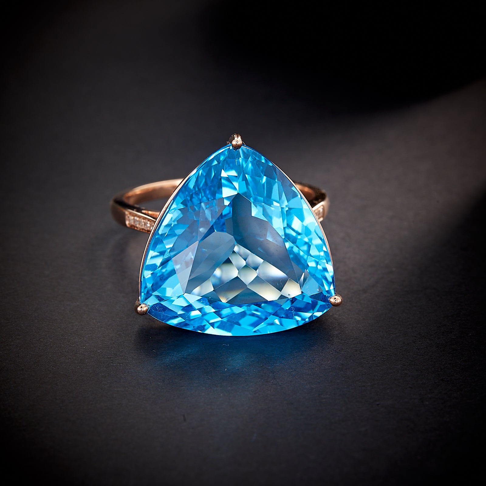 Ref:231027058 // Gold Content:14K Gold // Ring Size:7.25US // // Main Gemstone:Topaz // Shape:Triangle // Carat Weight:29.3ct // Color:Blue // Treatment:Natural // // Adjacent Gemstone 2 : Diamond // Number of stones:10 // Shape:Round // Clarity Grade:VS-SI // Color:H // Treatment:Natural // Cut Grade:G //