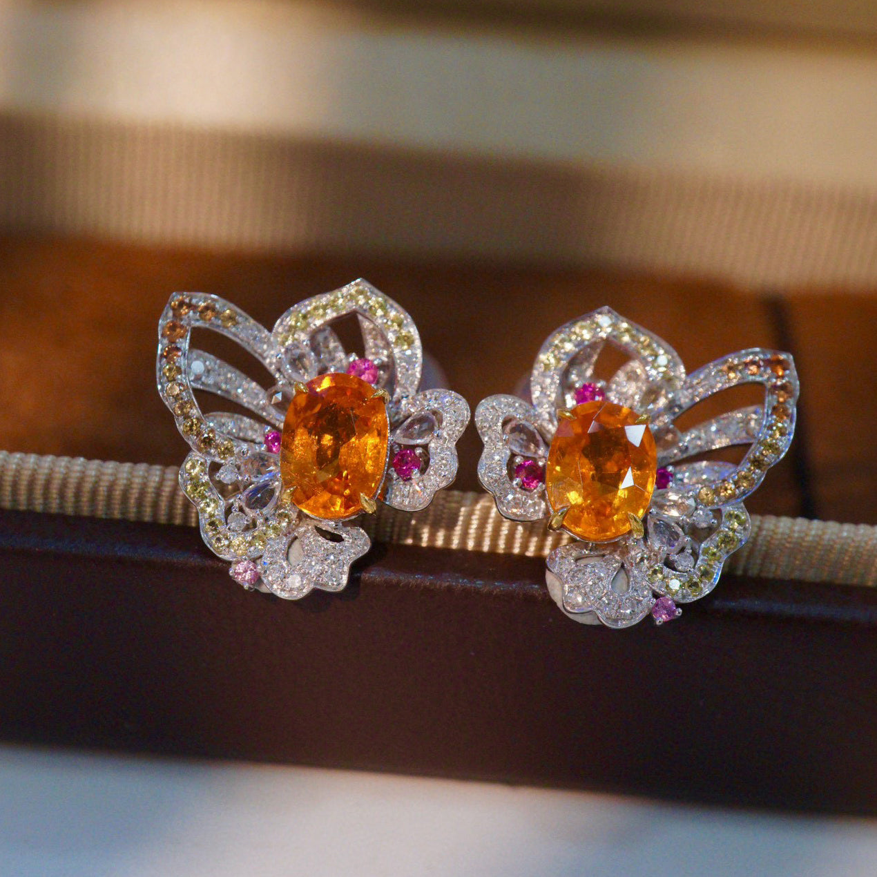 Ref:231025151 // Gold Content:14K Gold // Main Gemstone:Spessartine // Shape:Oval // Carat Weight:2.88ct // Color:Orange // Treatment:Natural // // Adjacent Gemstone 2 : Diamond // Shape:Round // Carat Weight:0.3ct // Clarity Grade:VS-SI // Color:H // Treatment:Natural // Cut Grade:G // // Adjacent Gemstone 3 : Sapphire // Shape:Round // Color:Color // Treatment:Natural // Cut Grade:G //