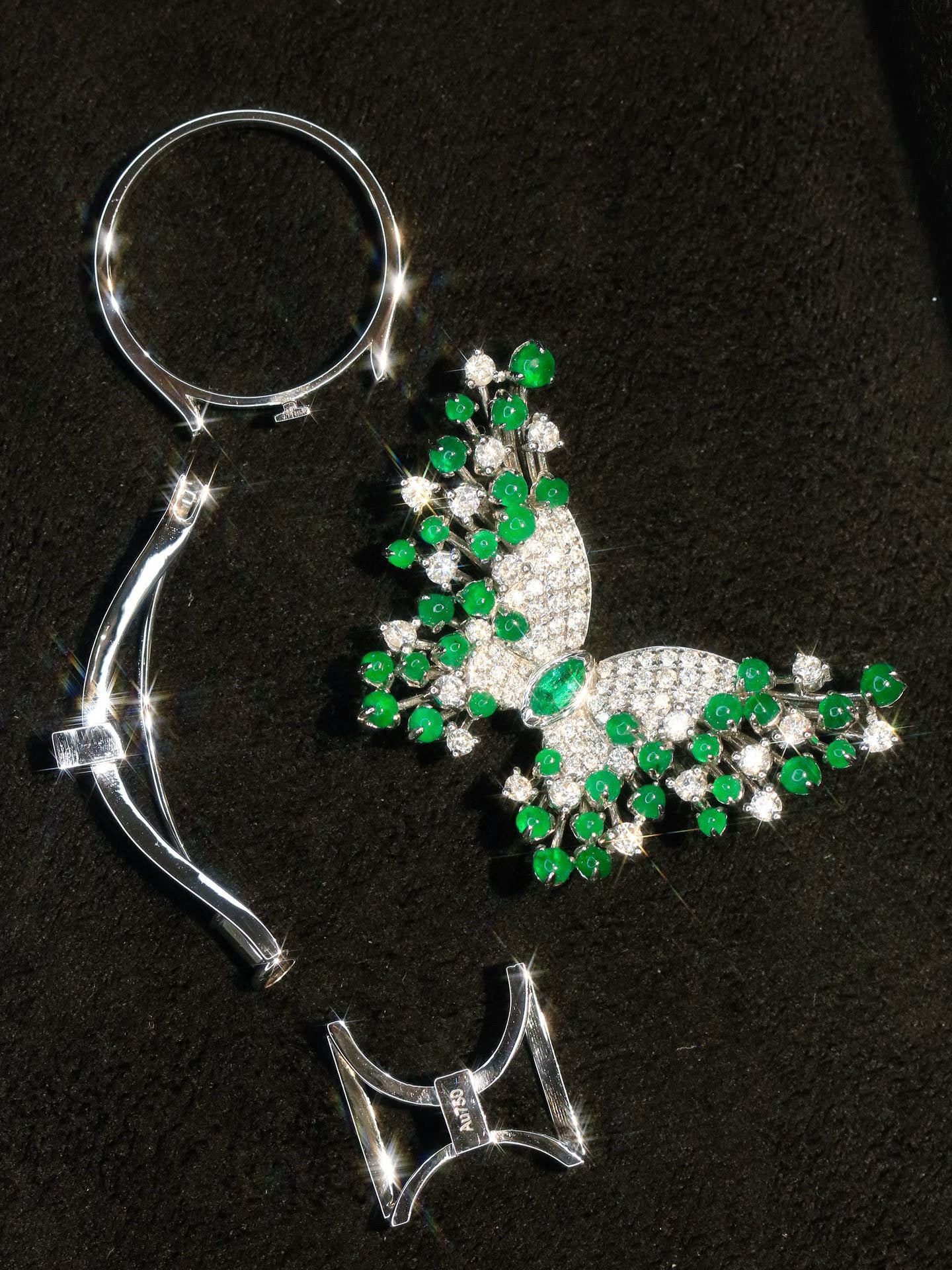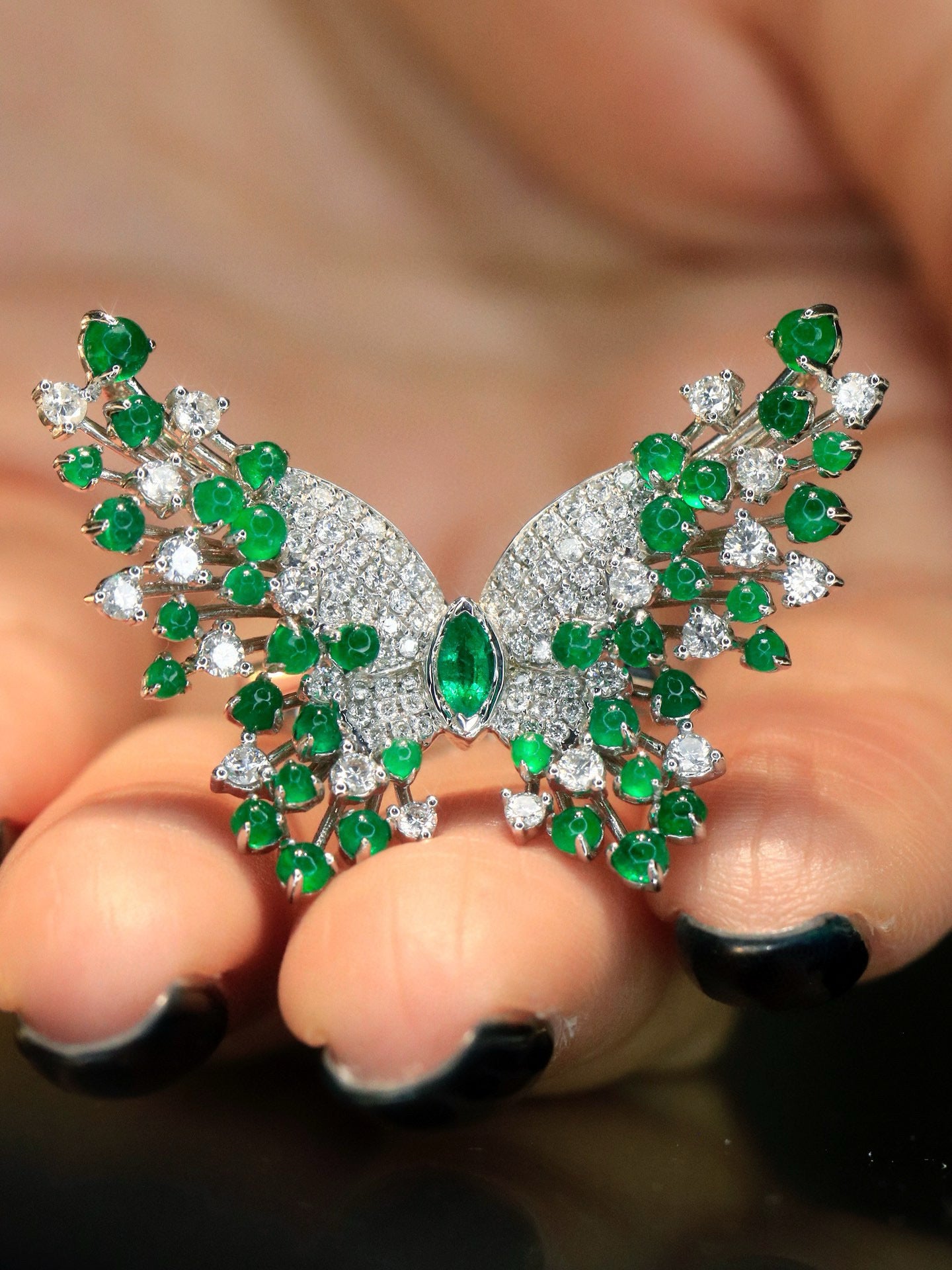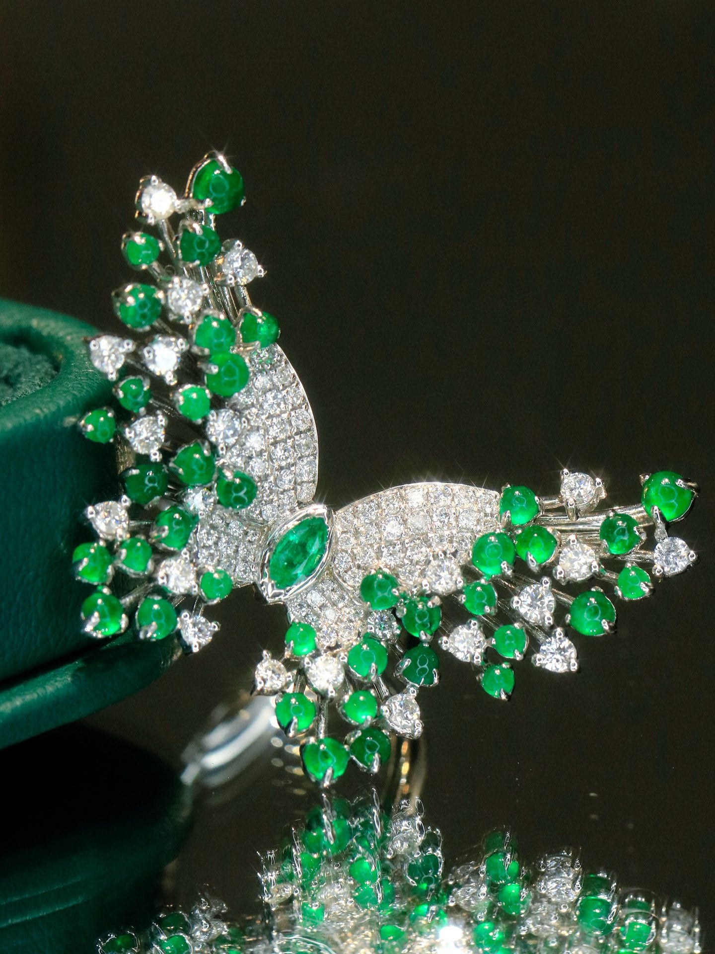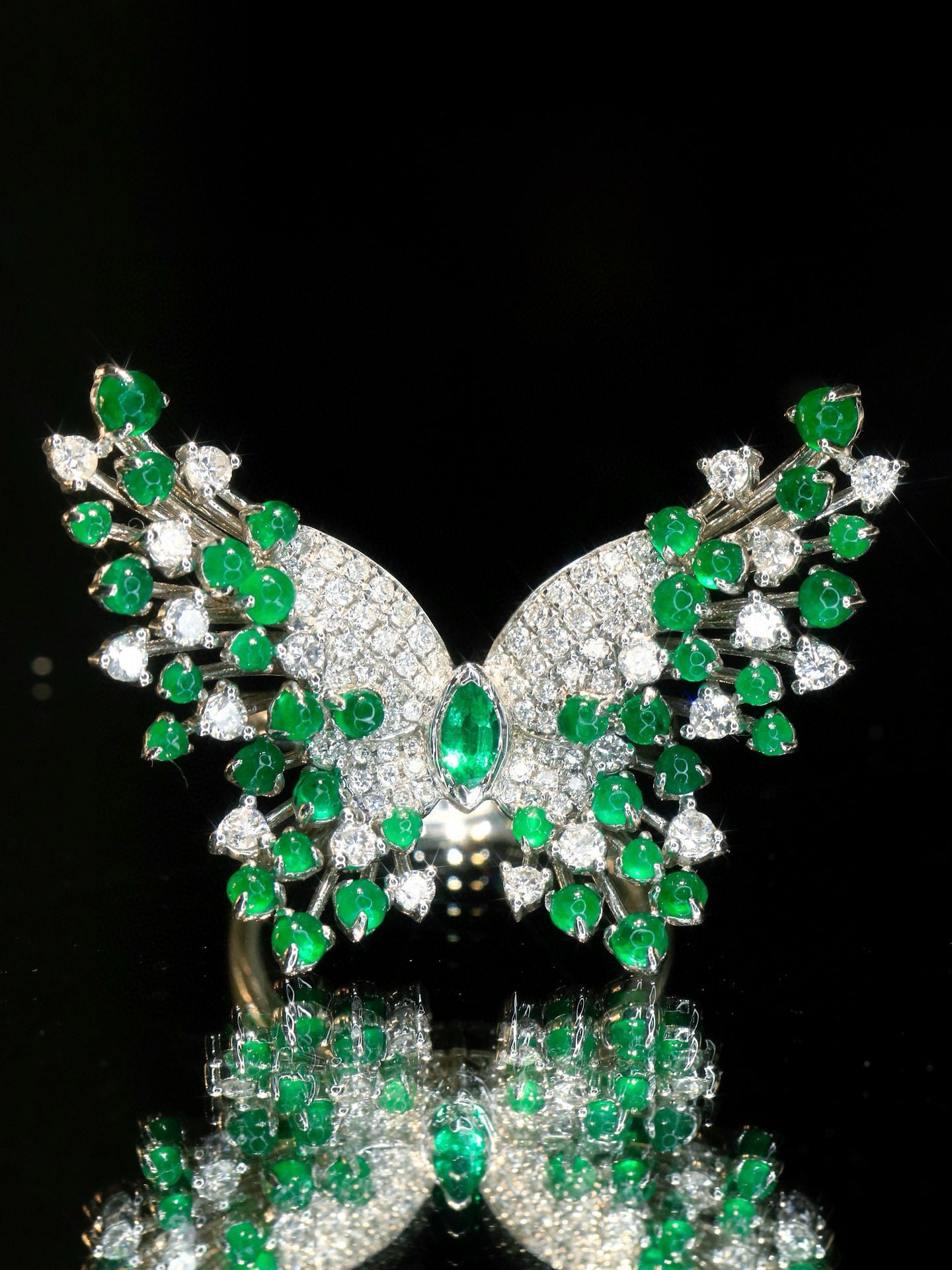 14K GOLD 3.2 CTW NATURAL EMERALD & DIAMOND RING/BROOCH/PENDANT( WITHOUT CHAIN )