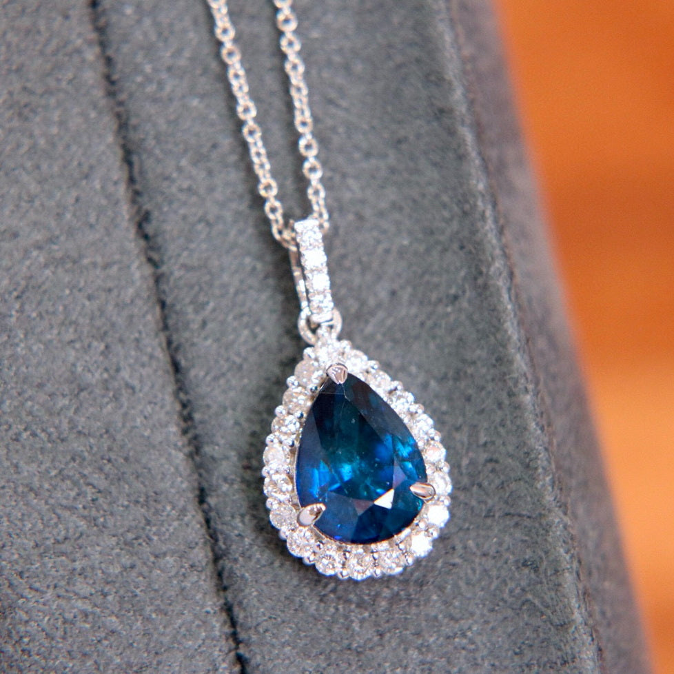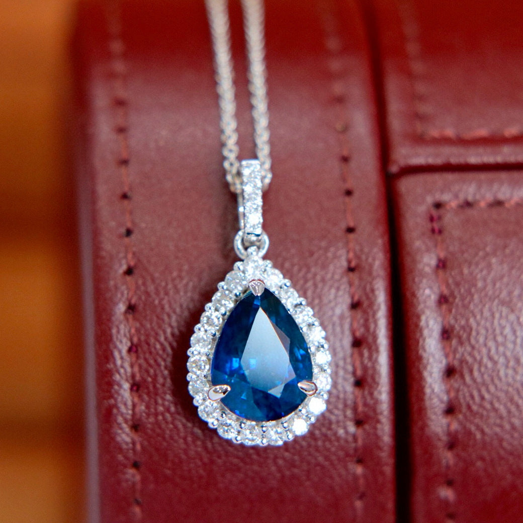 Ref:231023032 // Gold Content:14K Gold // Main Gemstone:Sapphire // Shape:Pear // Carat Weight:2.91ct // Color:Blue // Treatment:Natural // // Adjacent Gemstone 2 : Diamond // Shape:Round // Carat Weight:0.32ct // Clarity Grade:VS-SI // Color:H // Treatment:Natural // Cut Grade:G //