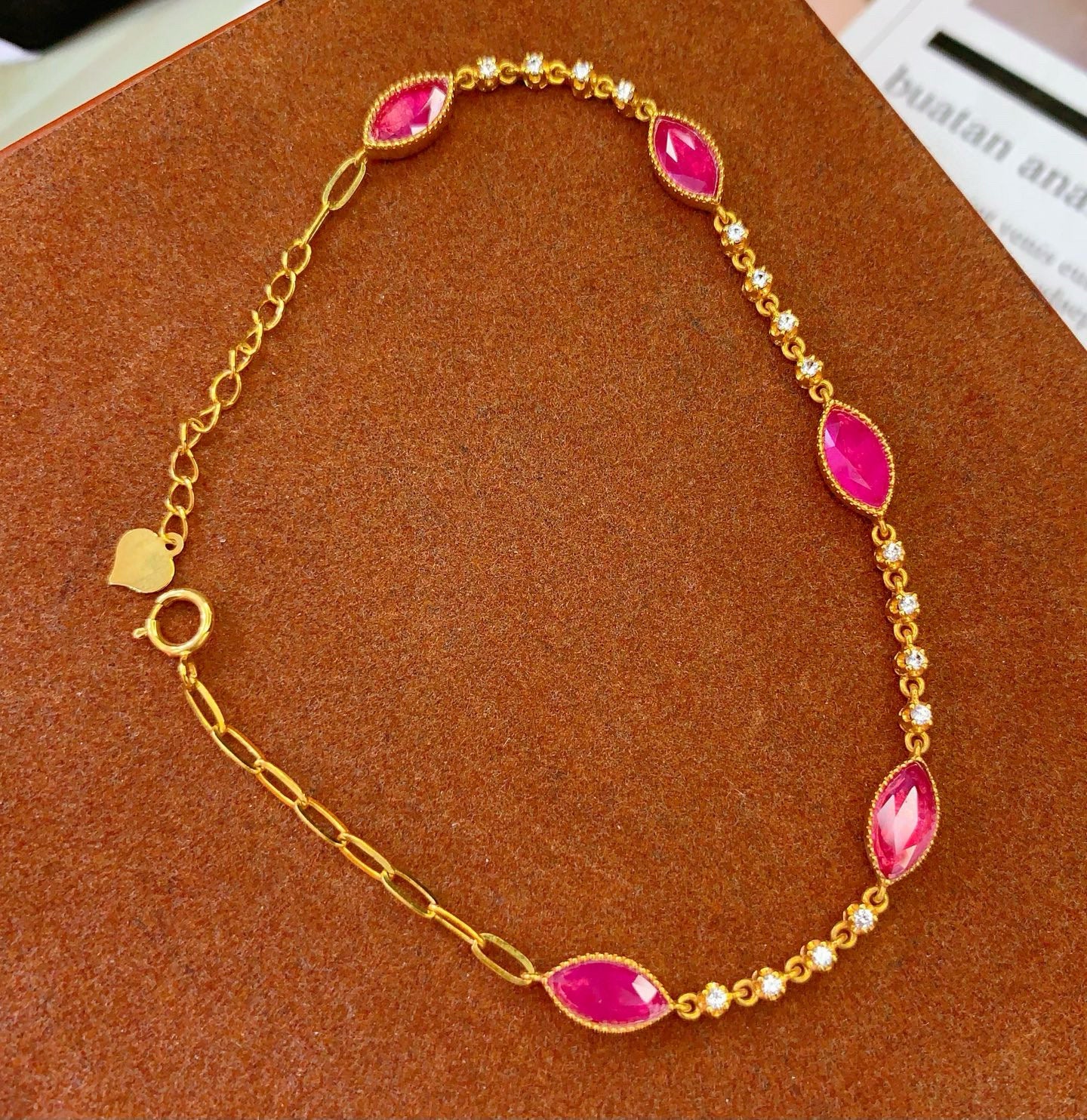 14K GOLD 3.25 CT NATURAL RUBY & SAPPHIRE BRACELET