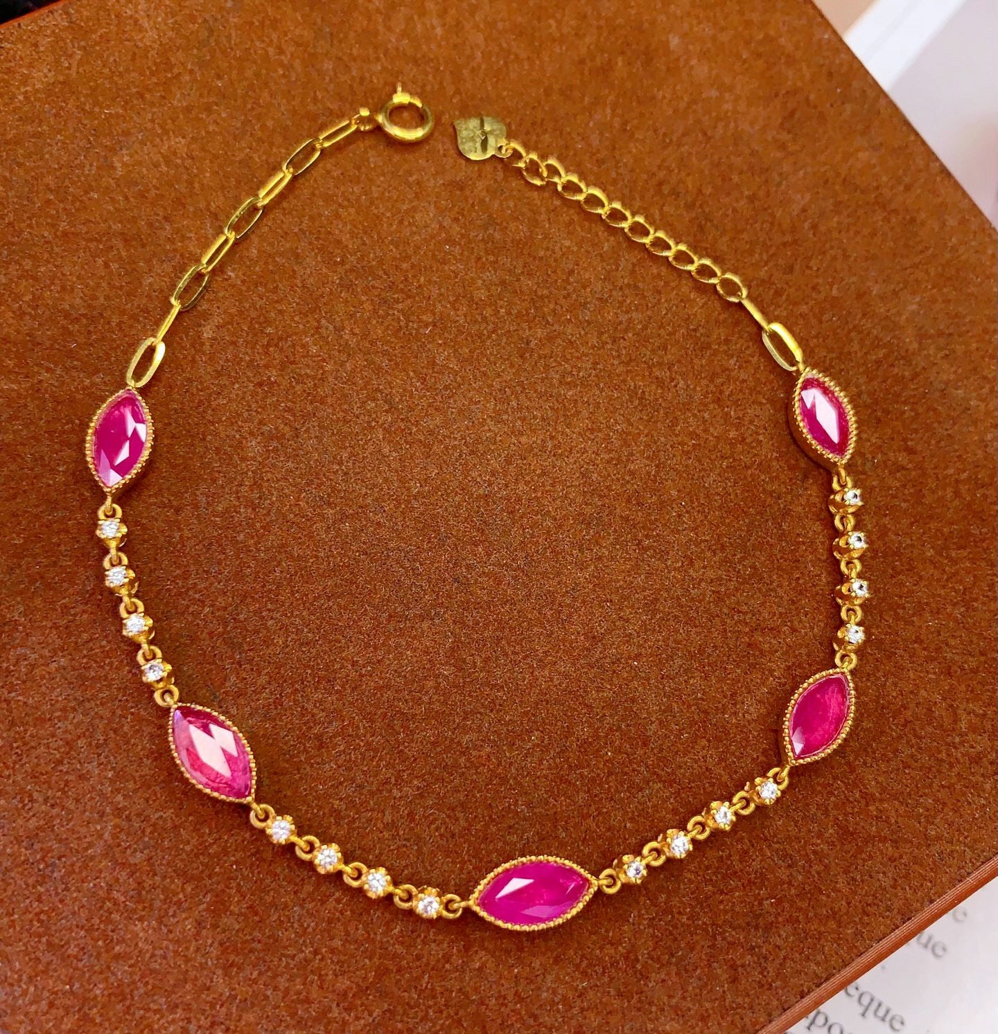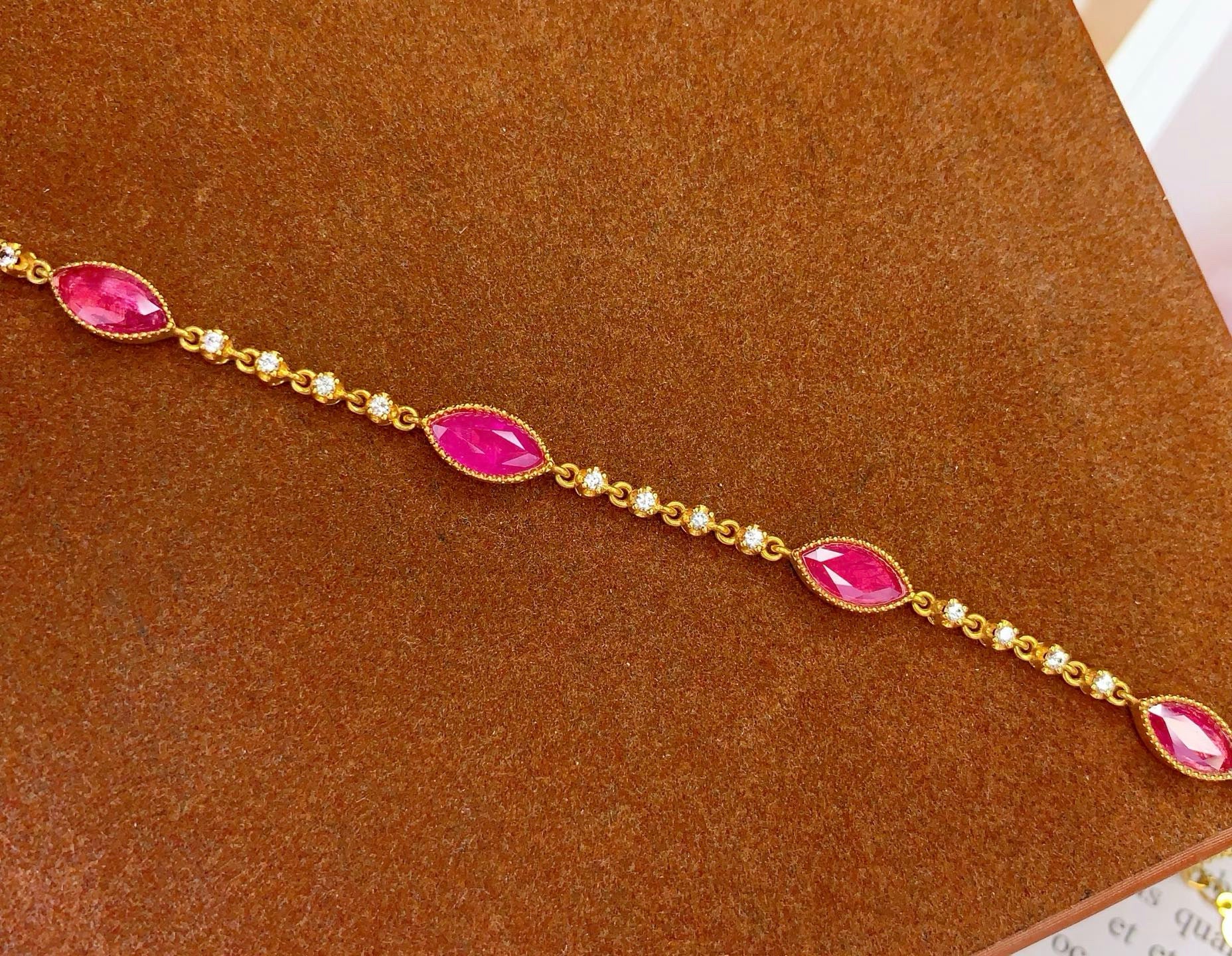 Ref:231025173 // Gold Content:14K Gold // Main Gemstone:Ruby // Shape:Marquise // Carat Weight:3.25ct // Color:Red // Treatment:Natural // // Adjacent Gemstone 2 : Sapphire // Number of stones:16 // Shape:Round // Color:White // Treatment:Natural // Cut Grade:G //