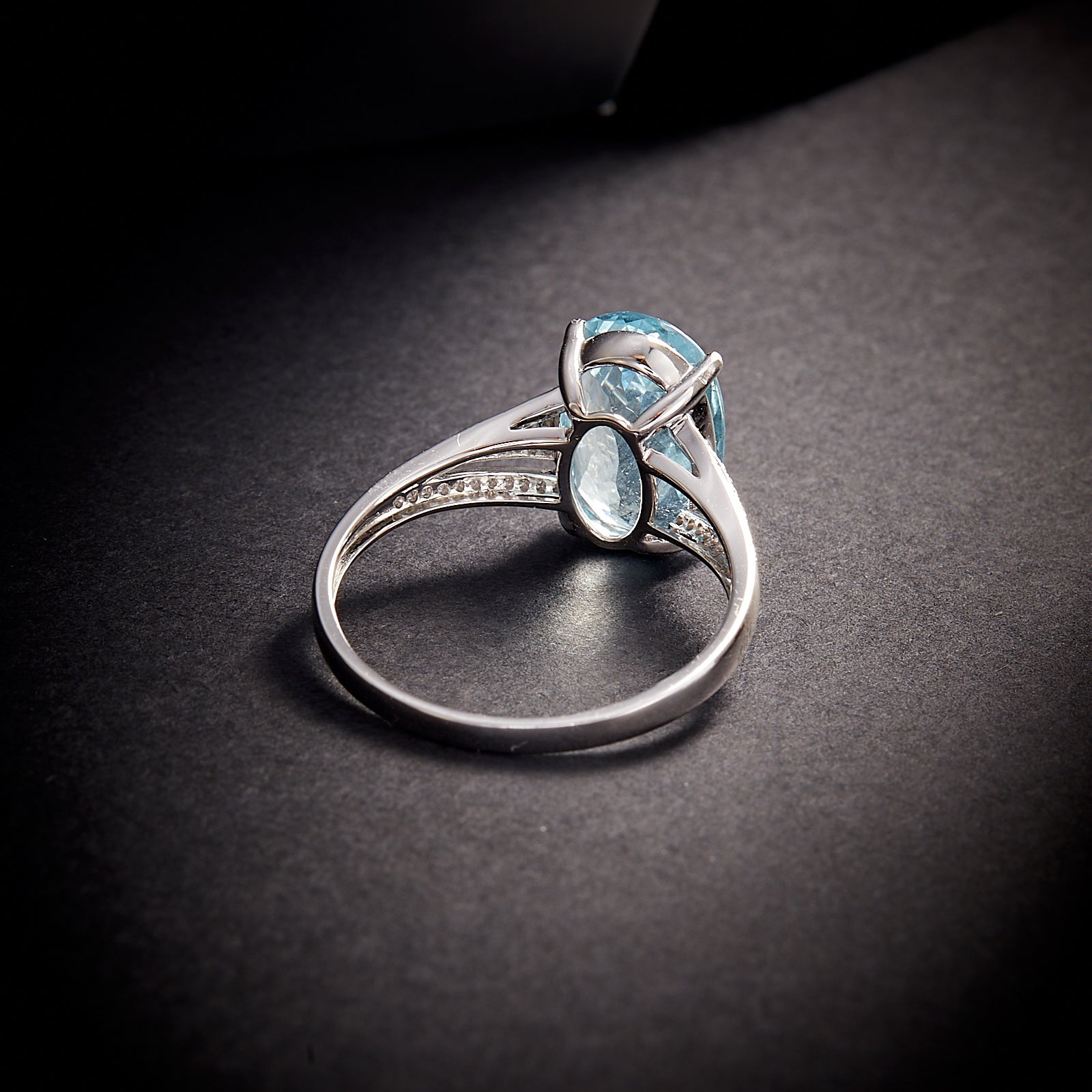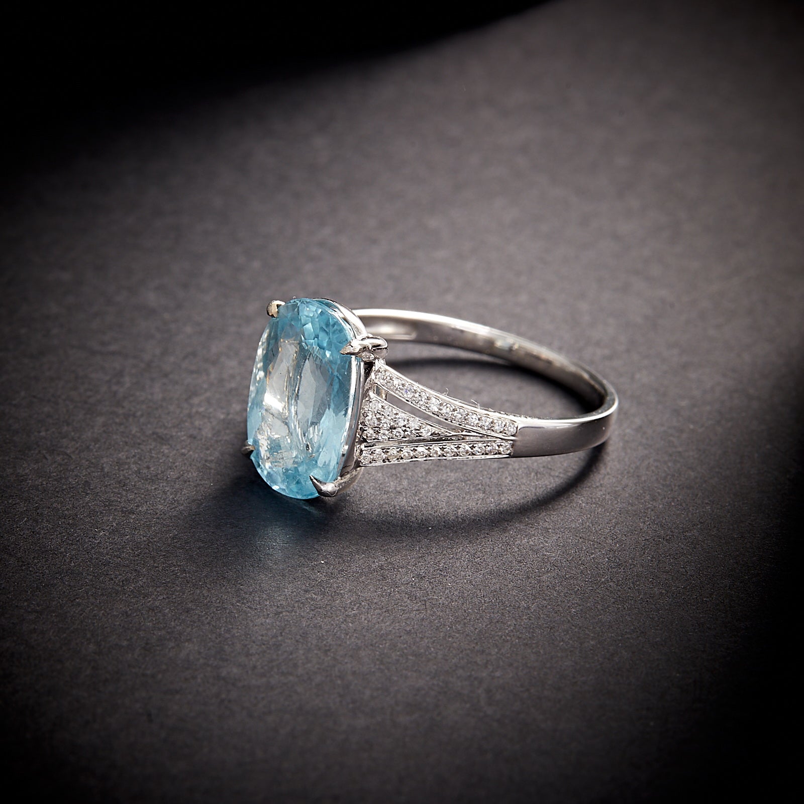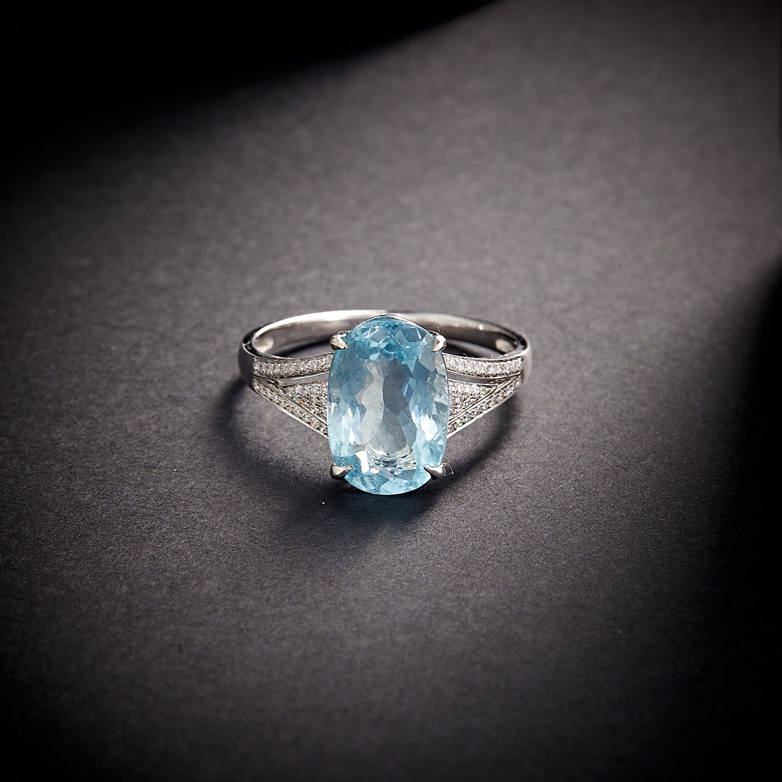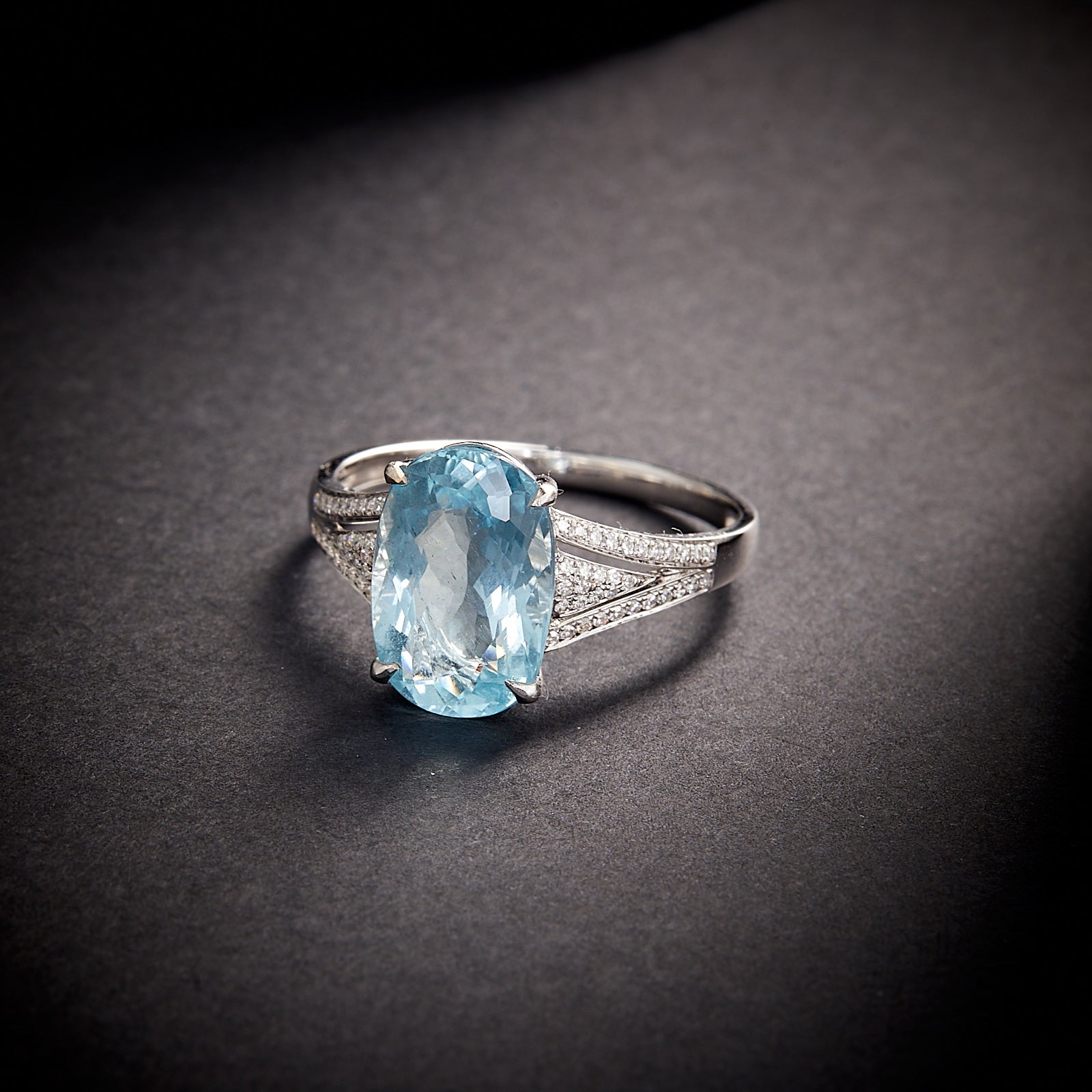 Ref:231027044 // Gold Content:14K Gold // Ring Size:7.25US // // Main Gemstone:Aquamarine // Shape:Oval // Carat Weight:3.1ct // Color:Blue // Treatment:Natural // // Adjacent Gemstone 2 : Diamond // Shape:Round // Carat Weight:0.2ct // Clarity Grade:VS-SI // Color:H // Treatment:Natural // Cut Grade:G //