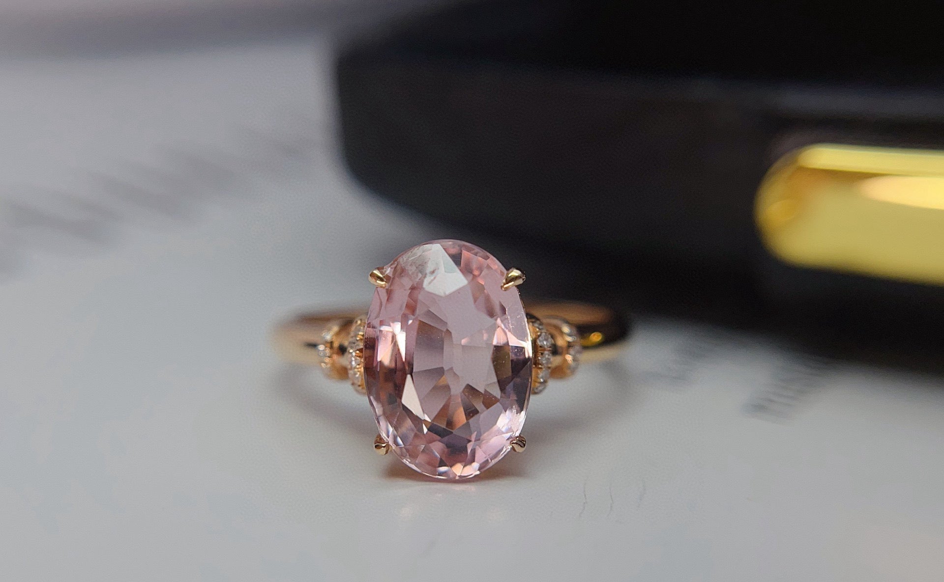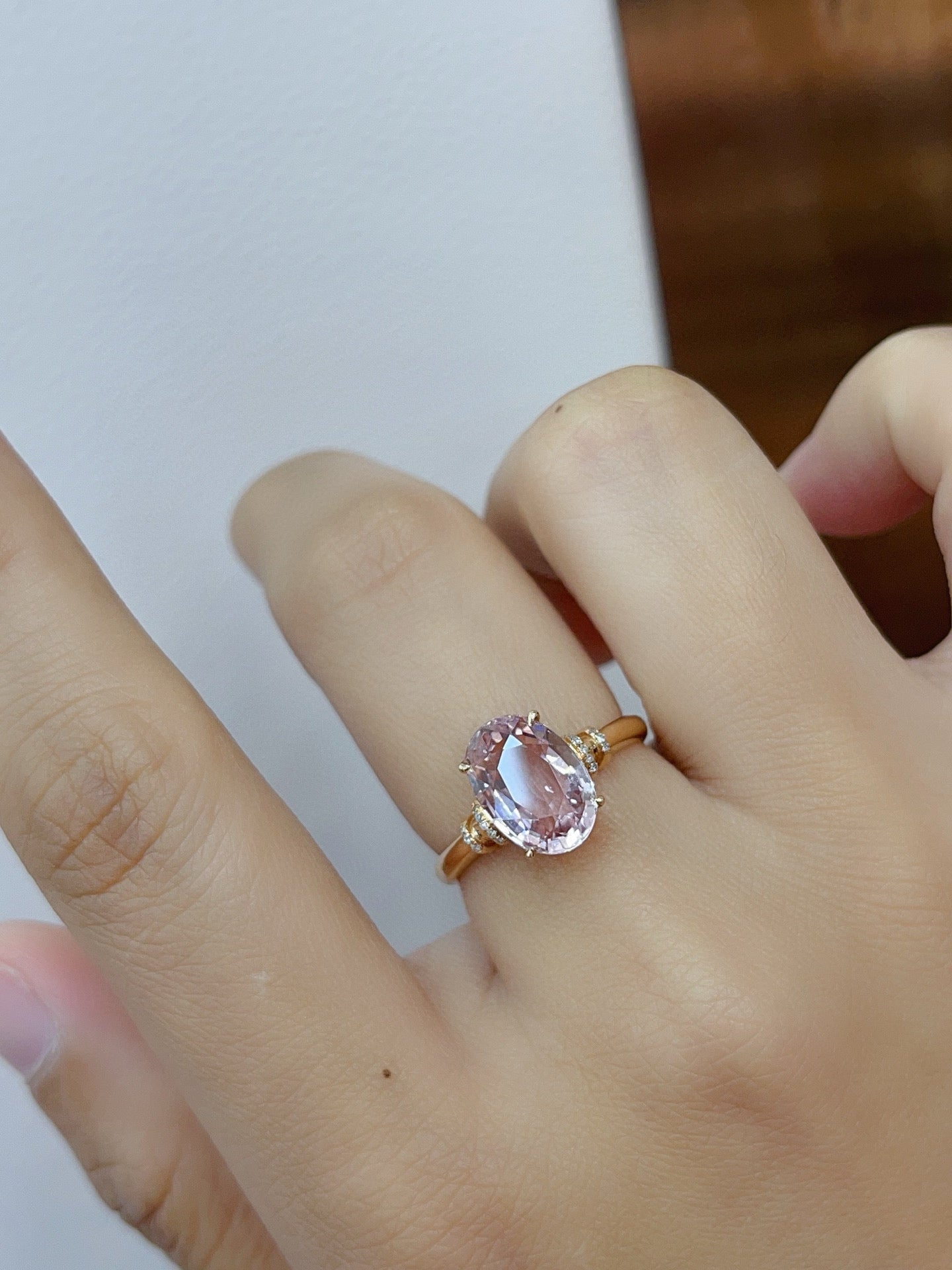 Ref:231027175 // Gold Content:14K Gold // Ring Size:7.25US // // Main Gemstone:Tourmaline // Shape:Oval // Carat Weight:3.35ct // Color:Pink // Treatment:Natural // // Adjacent Gemstone 2 : Diamond // Number of stones:16 // Shape:Round // Clarity Grade:VS-SI // Color:H // Treatment:Natural // Cut Grade:G //