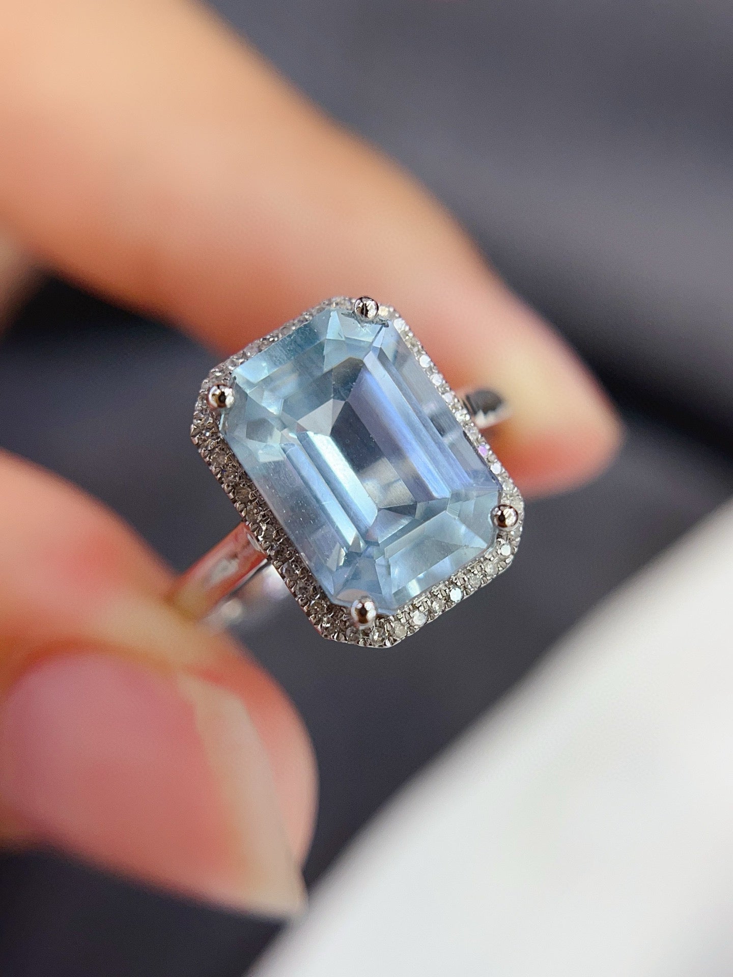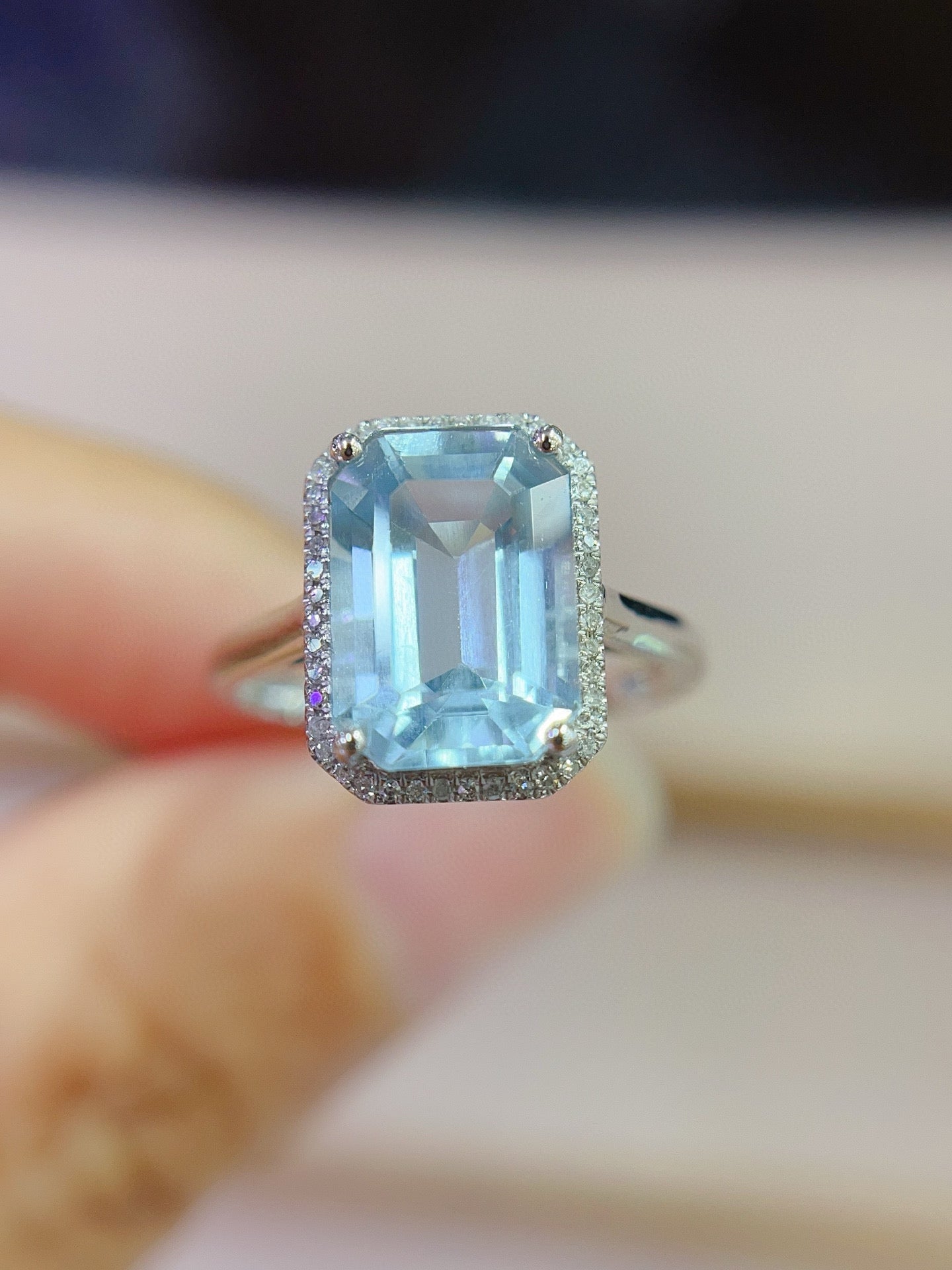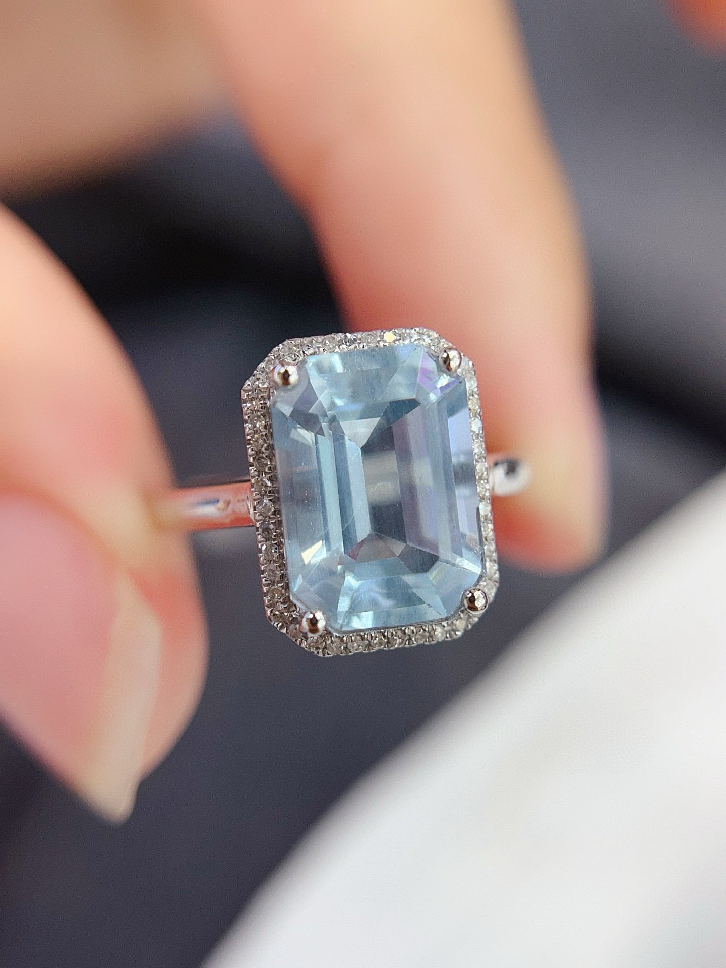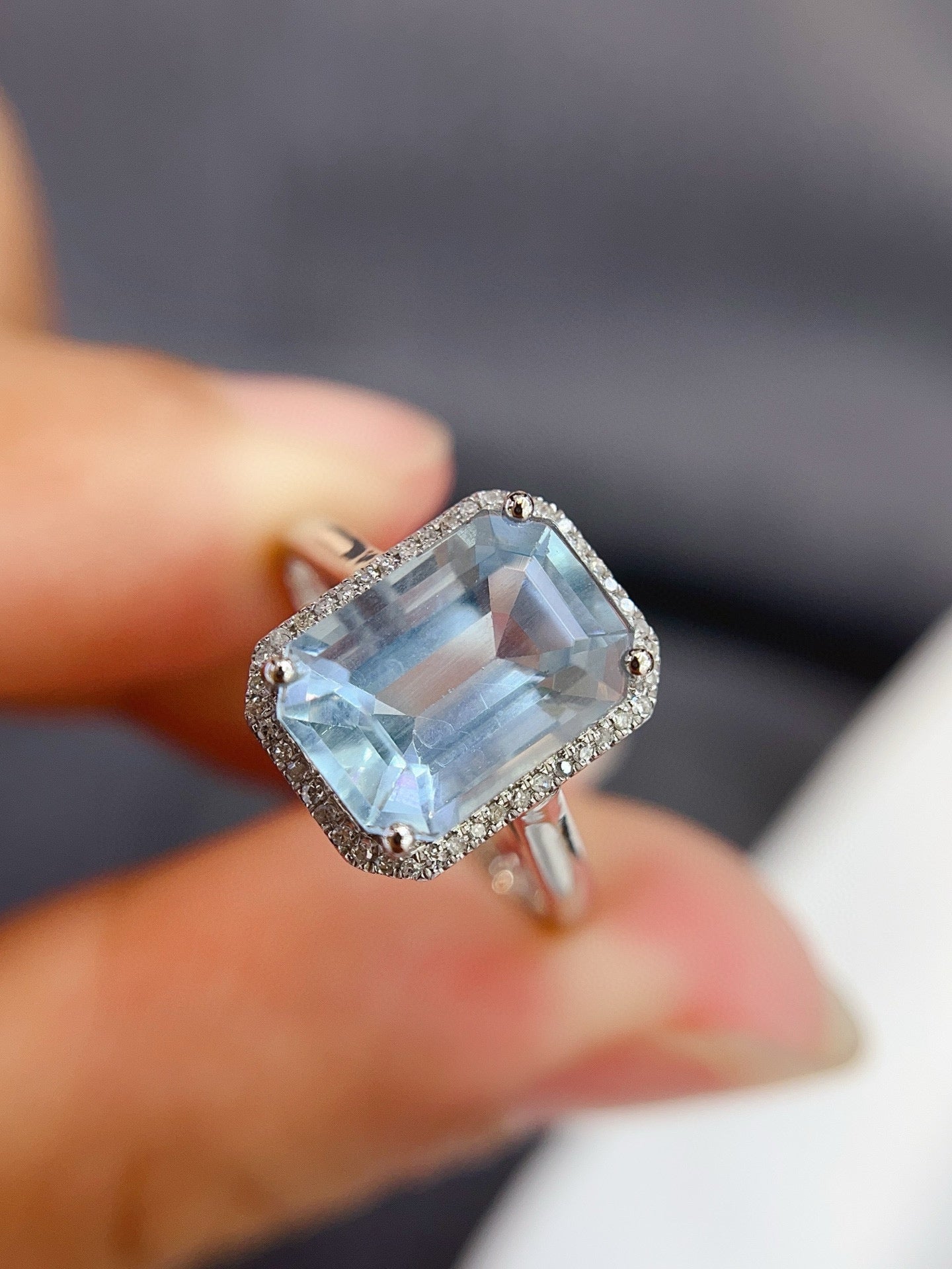Ref:231027188 // Gold Content:14K Gold // Ring Size:7.25US // // Main Gemstone:Aquamarine // Shape:Octagonal // Carat Weight:3.40ct // Color:Blue // Treatment:Natural // // Adjacent Gemstone 2 : Diamond // Number of stones:44 // Shape:Round // Clarity Grade:VS-SI // Color:H // Treatment:Natural // Cut Grade:G //