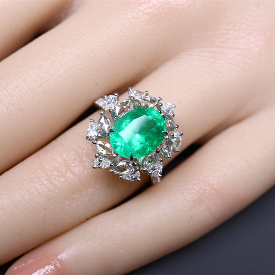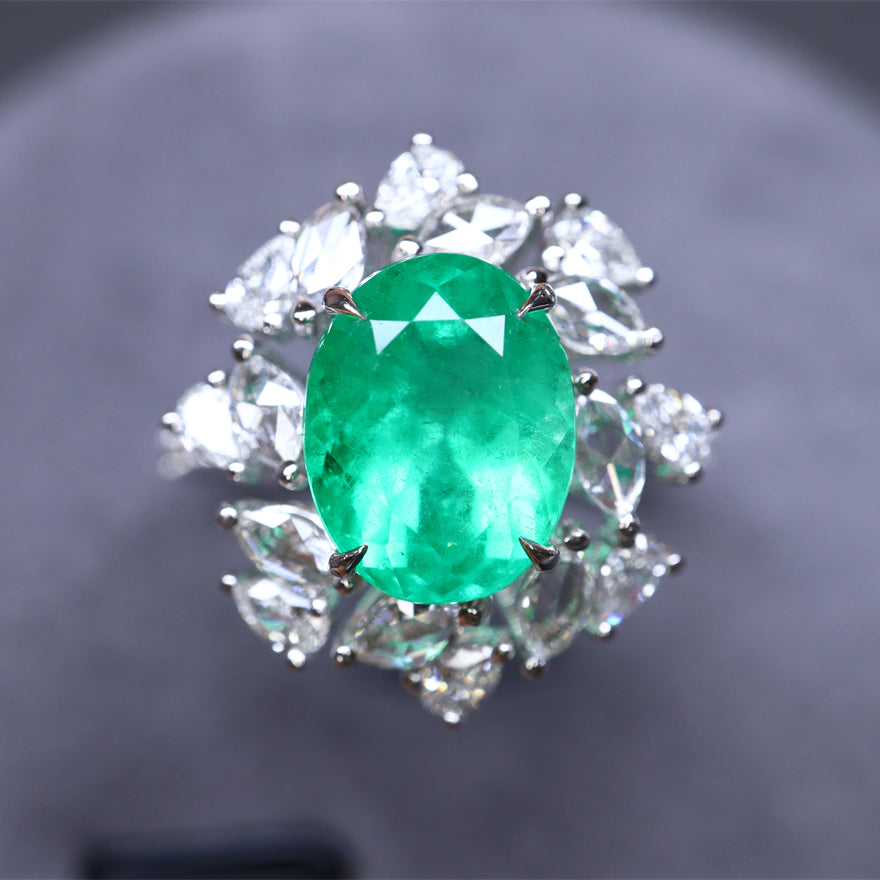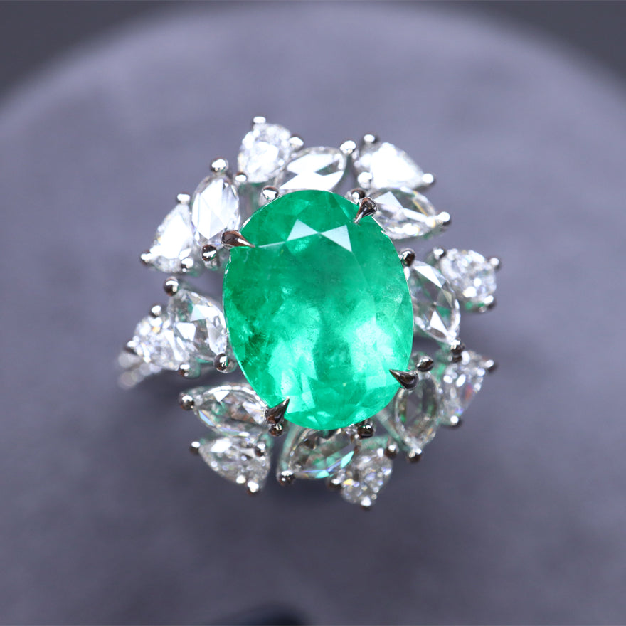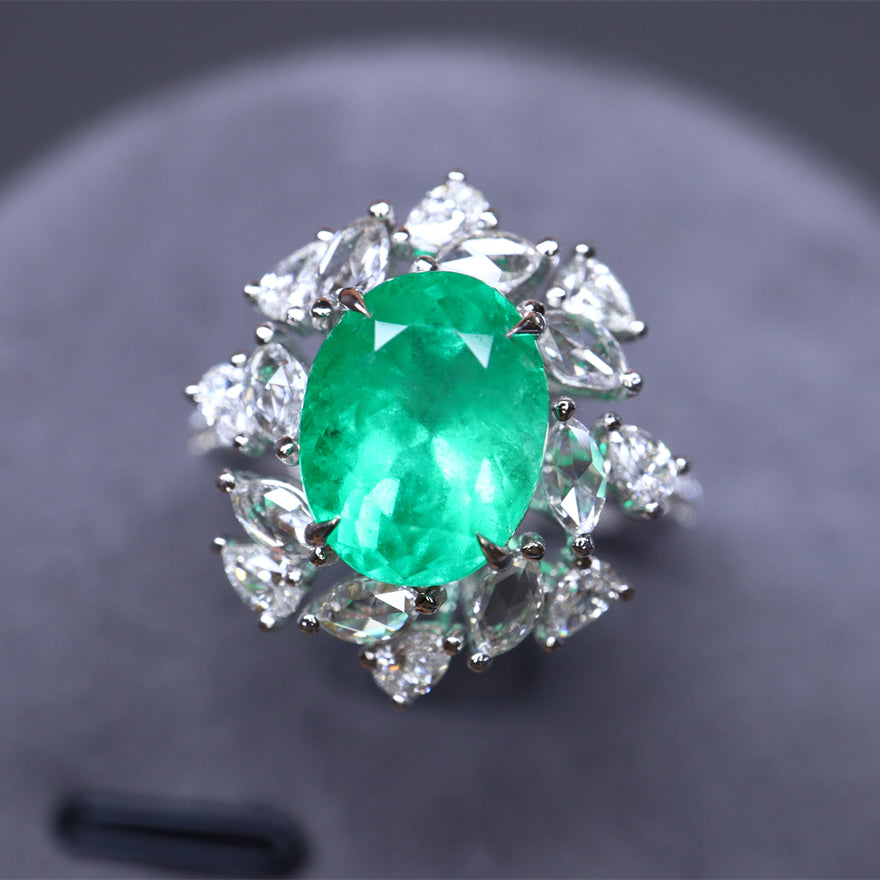 Ref:231021001 // Gold Content:14K Gold // Ring Size:7.25US // // Main Gemstone:Emerald // Shape:Oval // Carat Weight:2.6ct // Color:Green // Treatment:Natural // // Adjacent Gemstone 2 : Diamond // Shape:Multiply // Carat Weight:0.86ct // Clarity Grade:VS-SI // Color:H // Treatment:Natural //