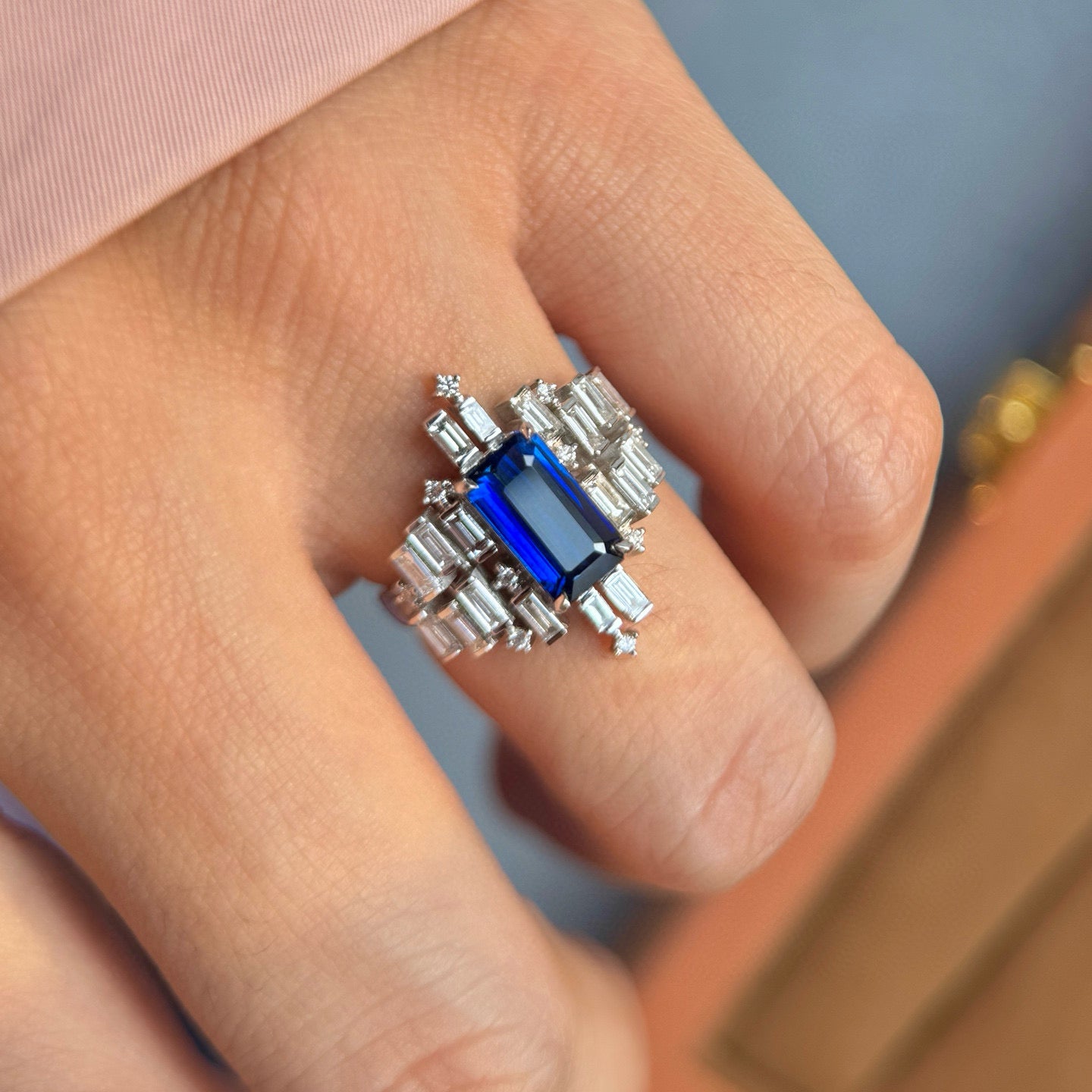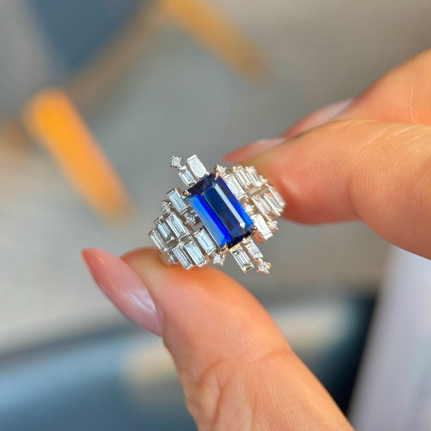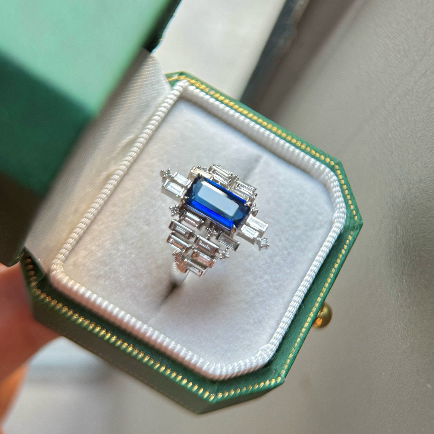 Ref:231027207 // Gold Content:14K Gold // Ring Size:7.25US // // Main Gemstone:Sapphire // Shape:Octagonal // Carat Weight:2.12ct // Color:Blue // Treatment:Natural // // Adjacent Gemstone 2 : Diamond // Shape:Multiply // Carat Weight:1.36ct // Clarity Grade:VS-SI // Color:H // Treatment:Natural //