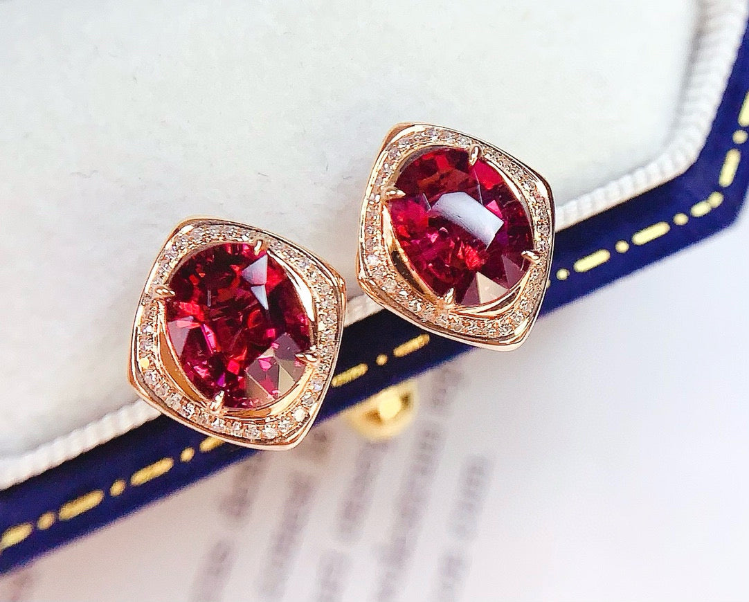 Ref:231027158 // Gold Content:14K Gold // Main Gemstone:Tourmaline // Shape:Oval // Carat Weight:3.5ct // Color:Red // Treatment:Natural // // Adjacent Gemstone 2 : Diamond // Number of stones:72 // Shape:Round // Clarity Grade:VS-SI // Color:H // Treatment:Natural // Cut Grade:G //