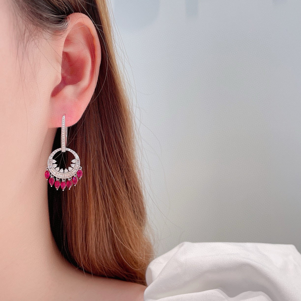 14K GOLD 3.52 CTW NATURAL RUBY & DIAMOND EARRINGS