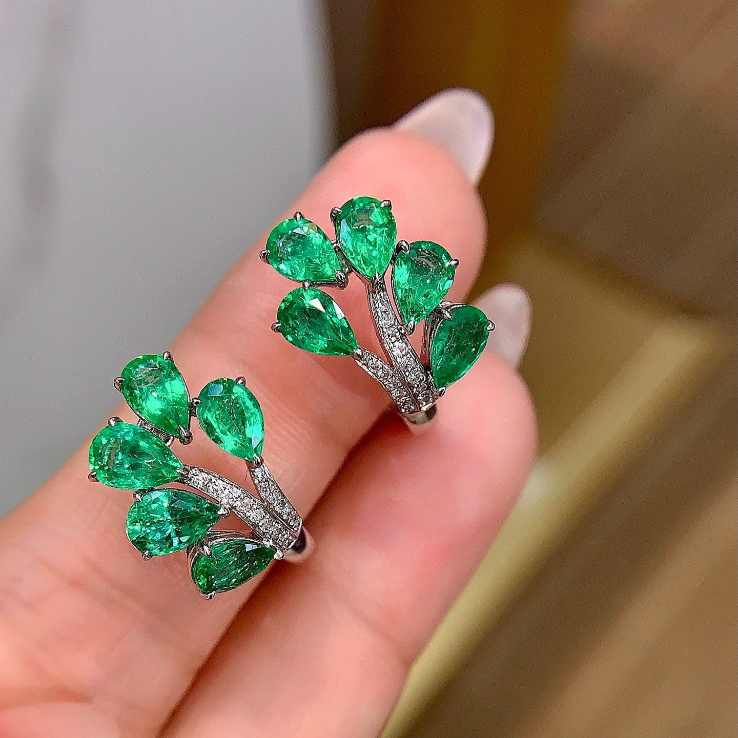 Ref:231023029 // Gold Content:14K Gold // Main Gemstone:Emerald // Shape:Pear // Carat Weight:3.4ct // Color:Green // Treatment:Natural // // Adjacent Gemstone 2 : Diamond // Shape:Round // Carat Weight:0.16ct // Clarity Grade:VS-SI // Color:H // Treatment:Natural // Cut Grade:G //