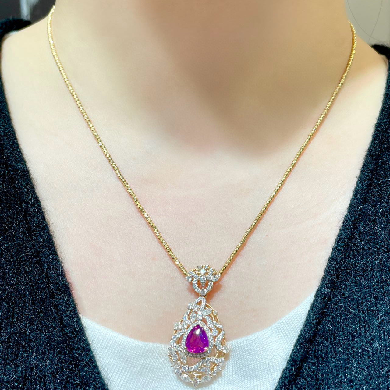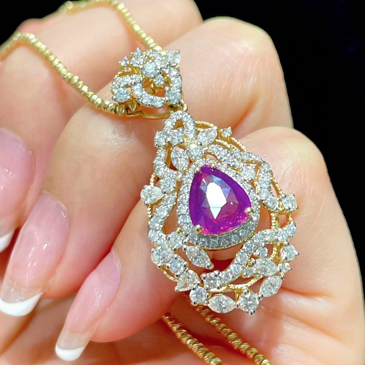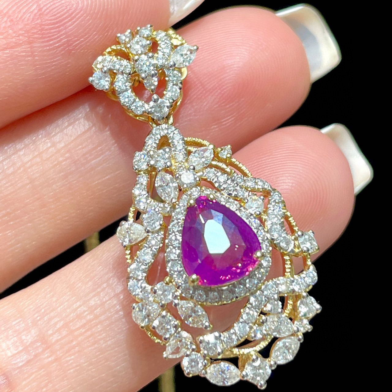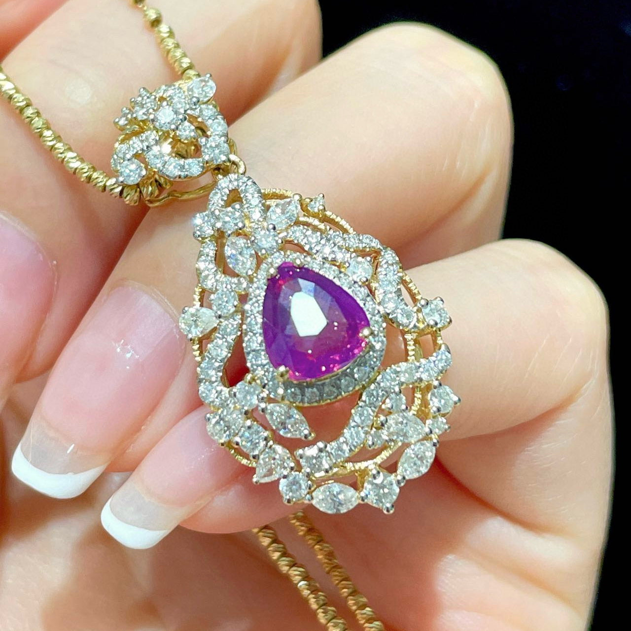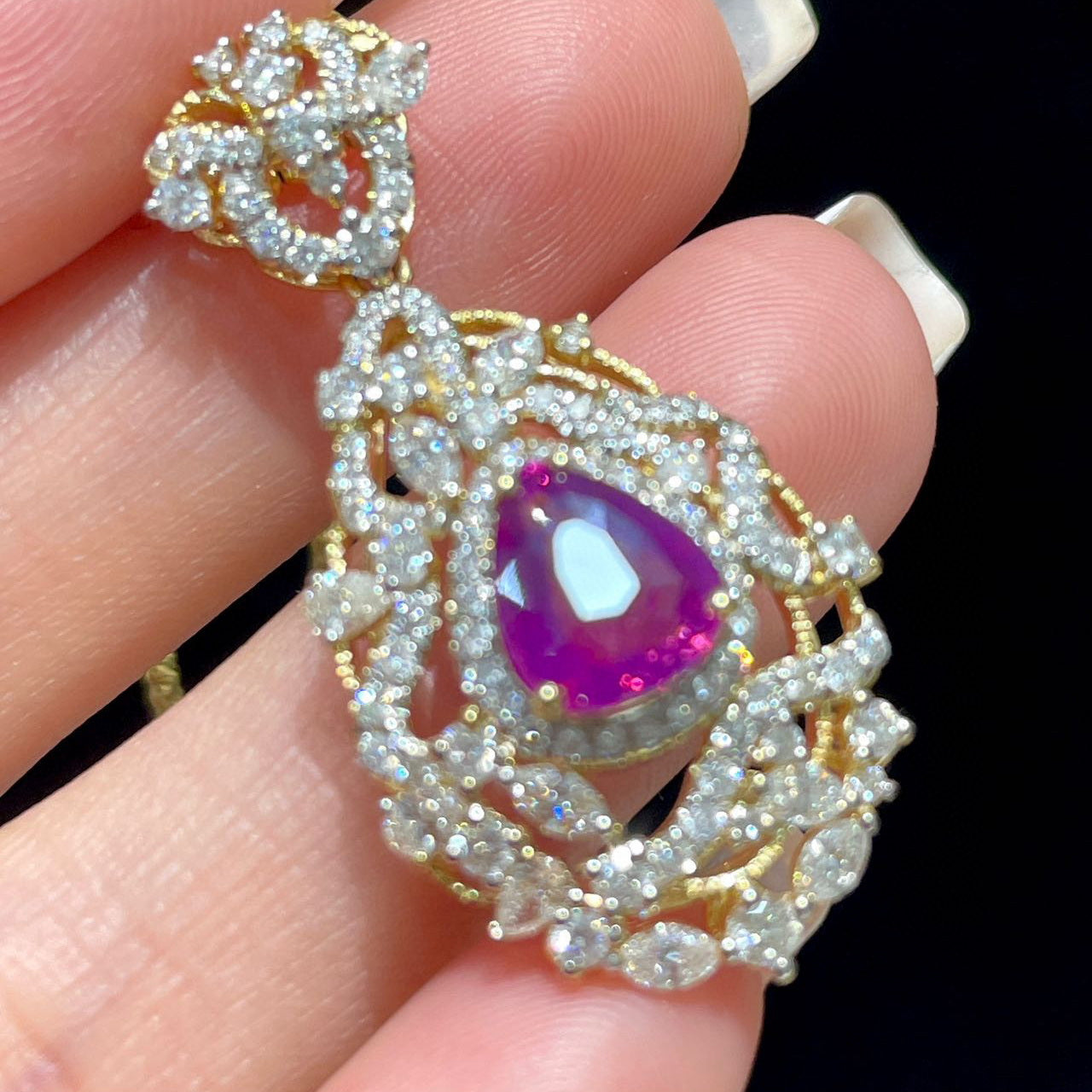 Ref:231023229 // Gold Content:14K Gold // Main Gemstone:Sapphire // Shape:Pear // Carat Weight:2.06ct // Color:Purple // Treatment:Natural // // Adjacent Gemstone 2 : Diamond // Shape:Multiply // Carat Weight:1.5ct // Clarity Grade:VS-SI // Color:H // Treatment:Natural //