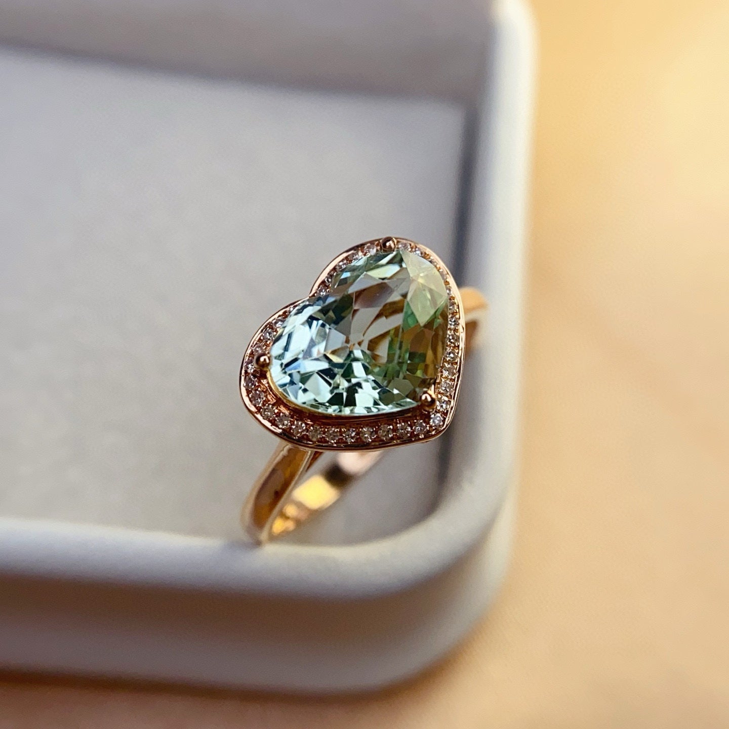 Ref:231021192 // Gold Content:14K Gold // Ring Size:7.25US // // Main Gemstone:Tourmaline // Shape:Heart // Carat Weight:3.85ct // Color:Green // Treatment:Natural // // Adjacent Gemstone 2 : Diamond // Number of stones:37 // Shape:Round // Clarity Grade:VS-SI // Color:H // Treatment:Natural // Cut Grade:G //