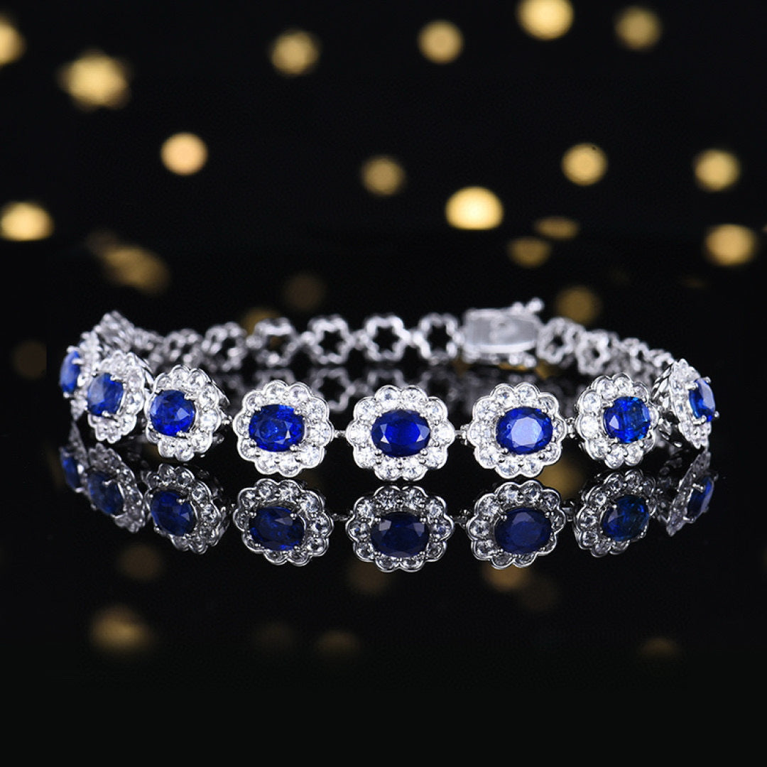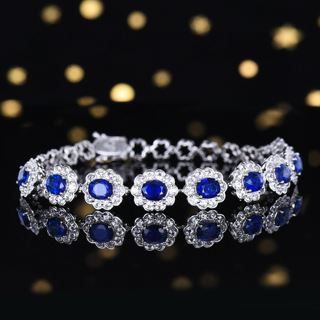 14K GOLD 3.89 CTW NATURAL SAPPHIRE & DIAMOND BRACELET
