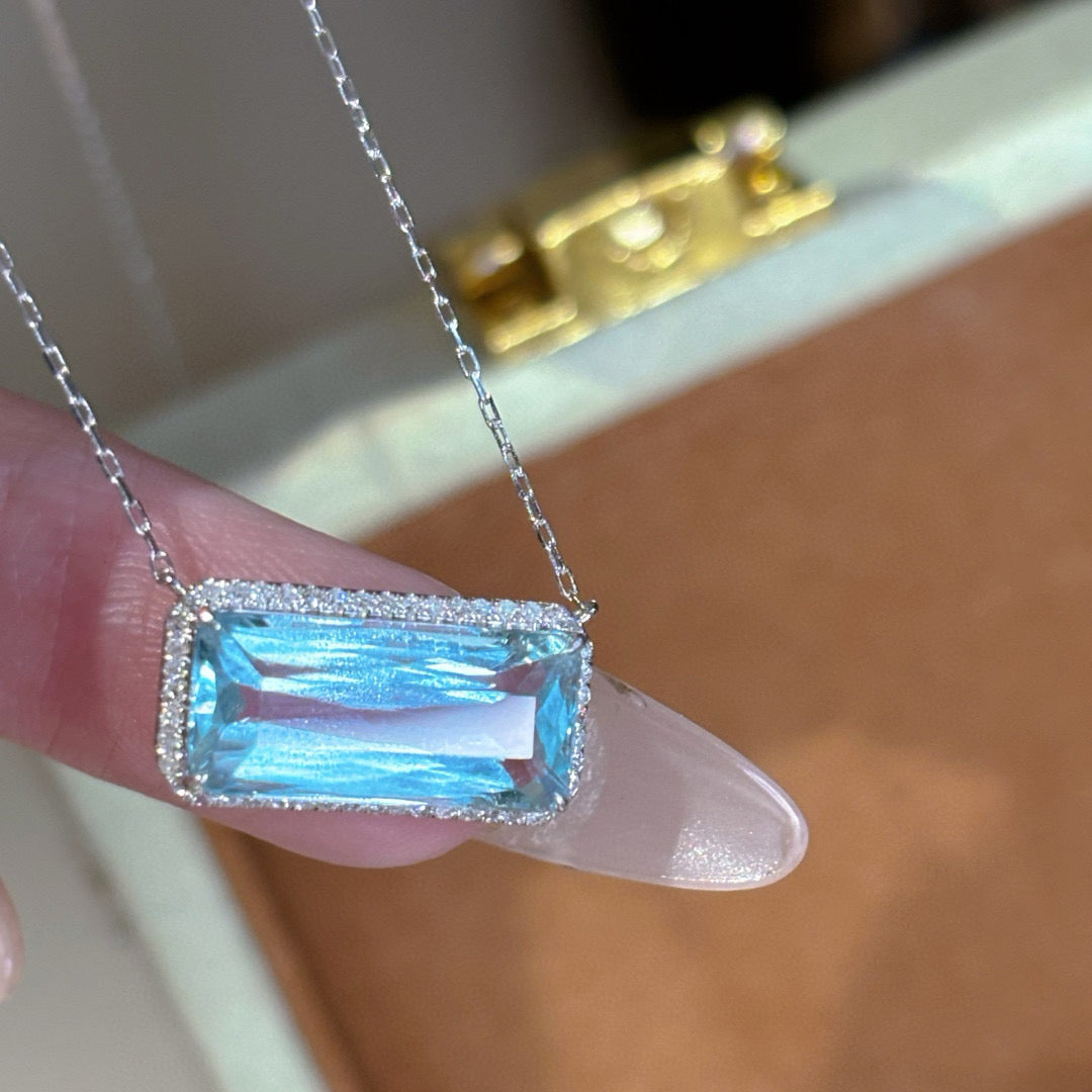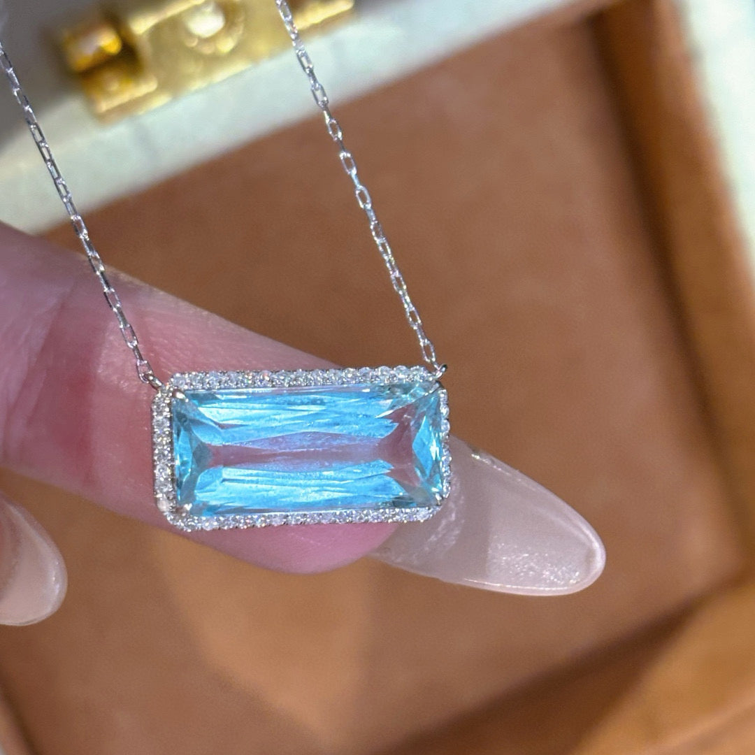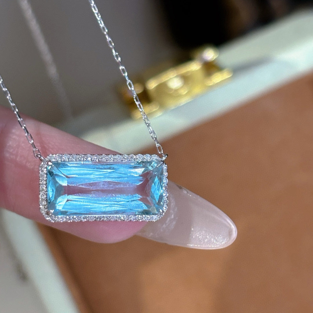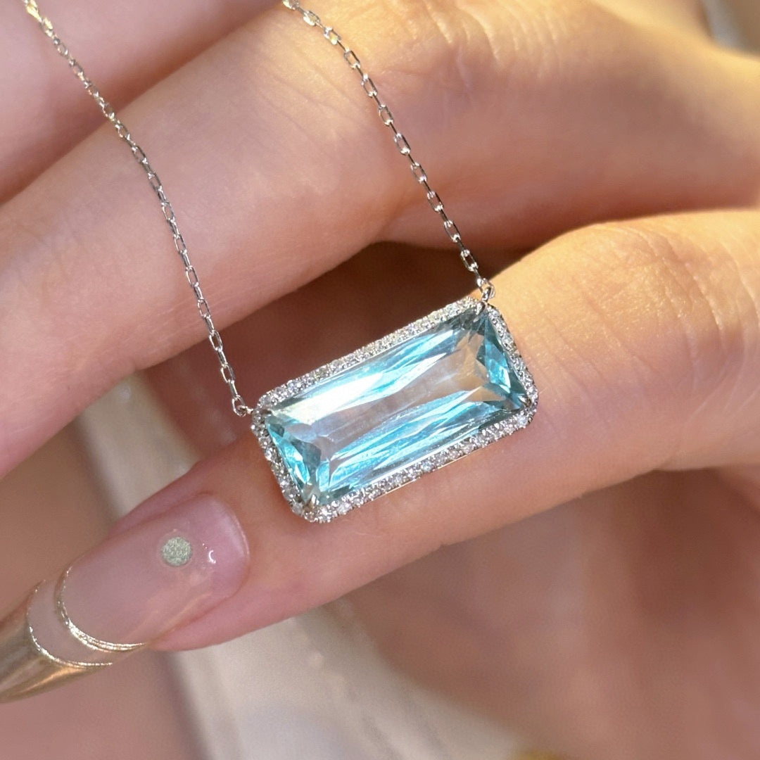 14K GOLD 4.03 CT NATURAL AQUAMARINE & DIAMOND NECKLACE