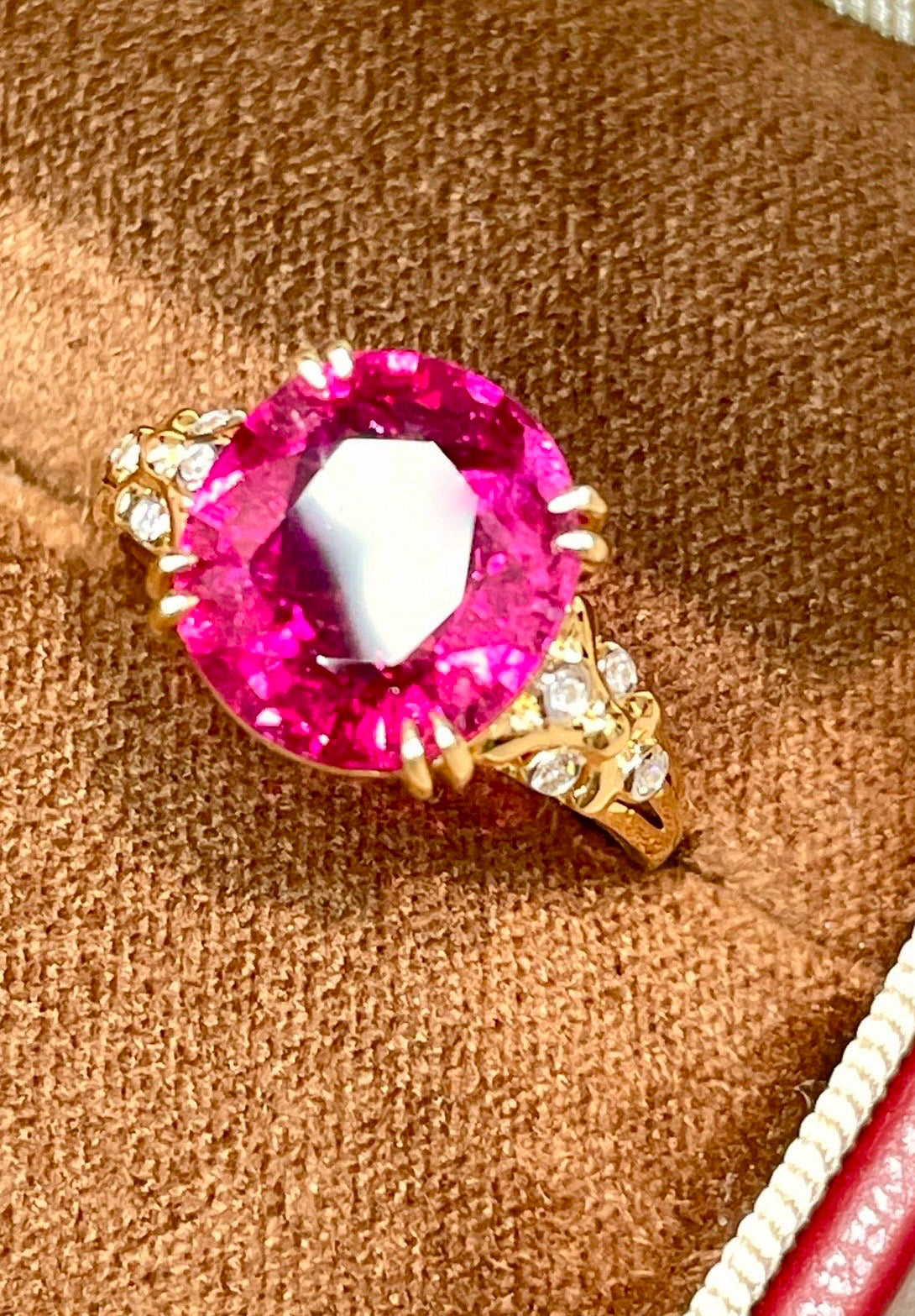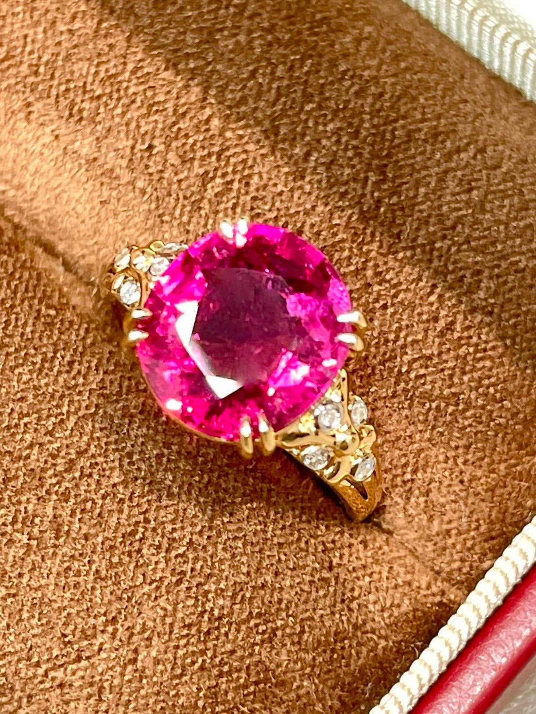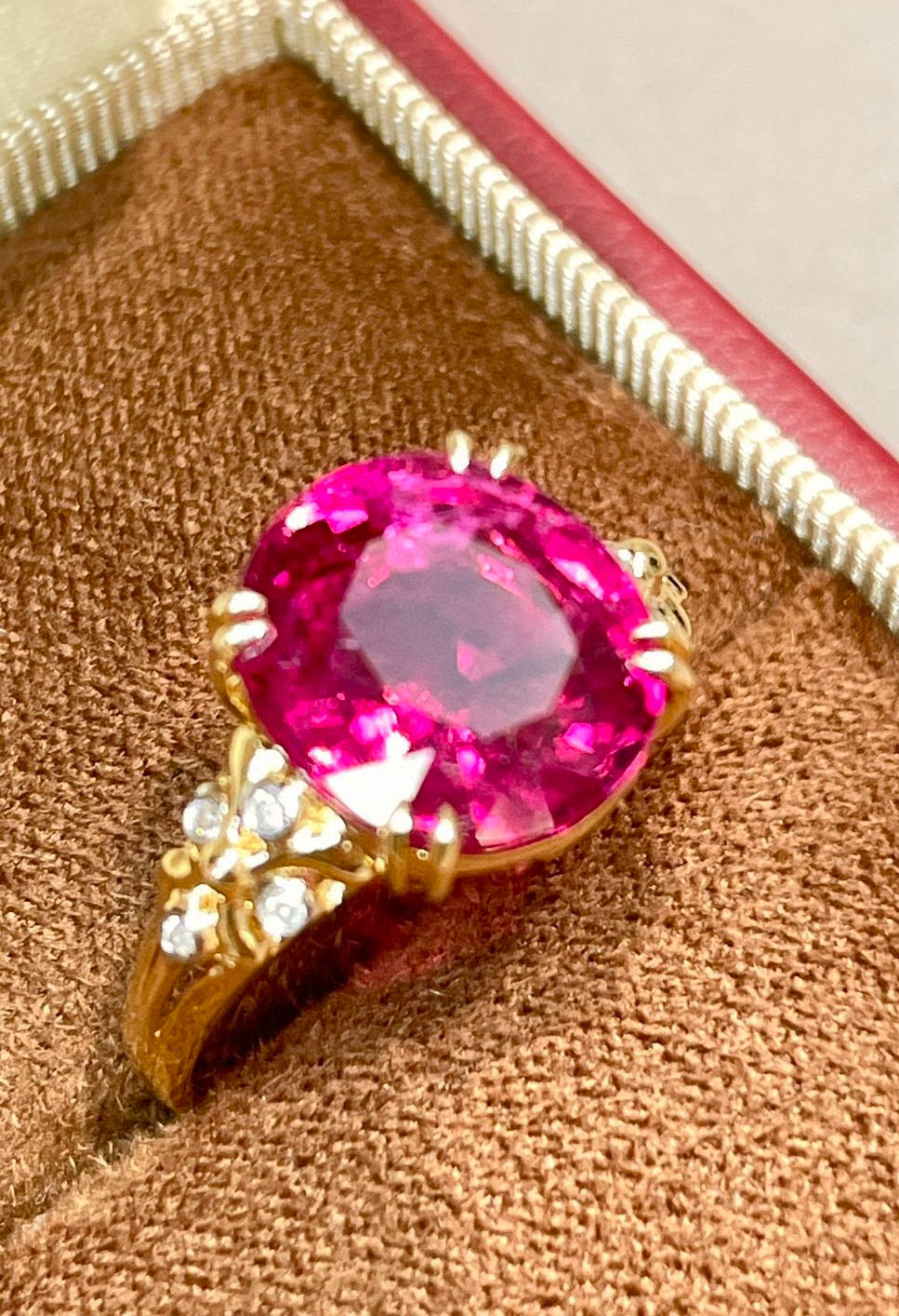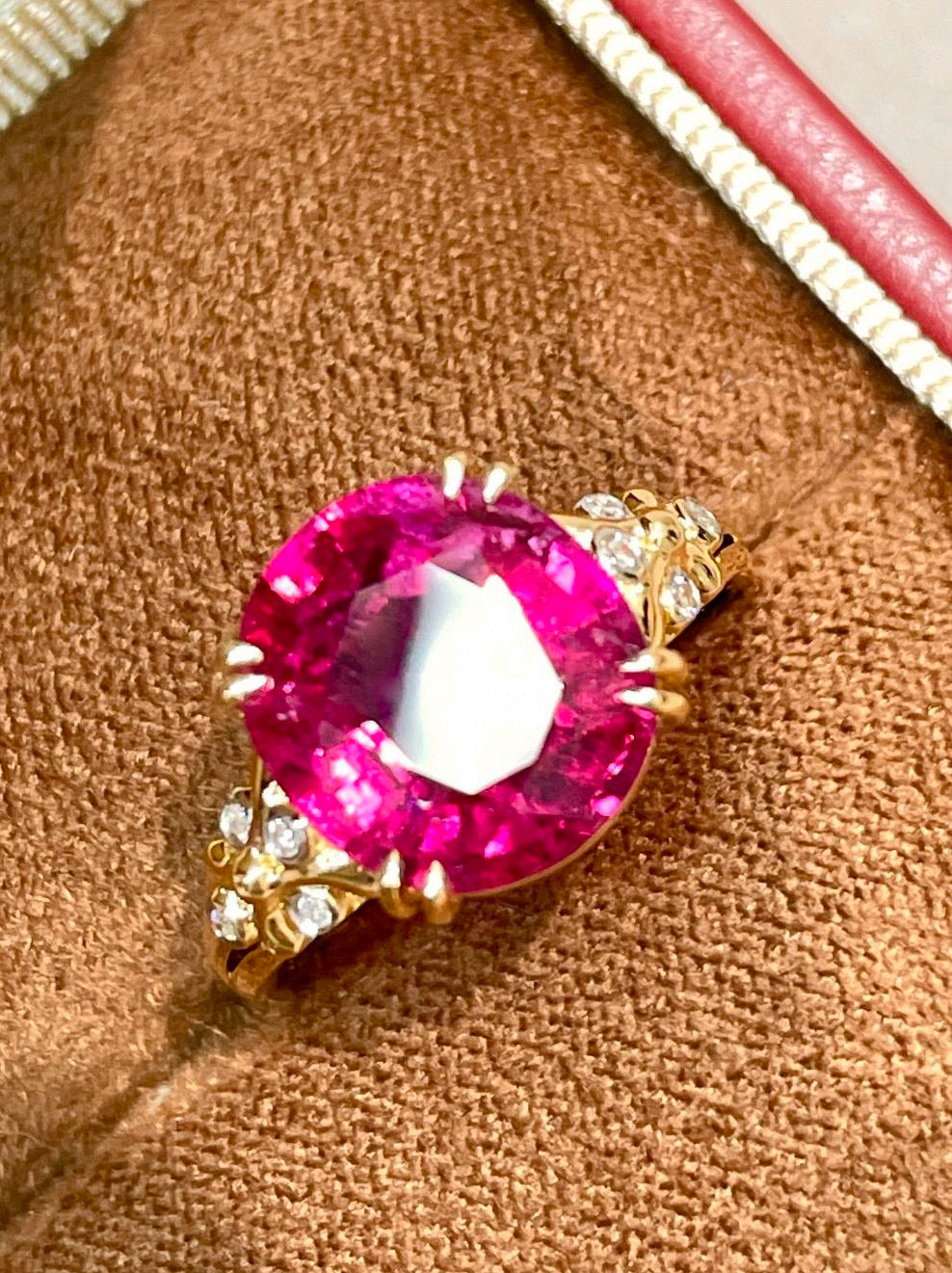 Ref:231027095 // Gold Content:14K Gold // Ring Size:7.25US // // Main Gemstone:Tourmaline // Shape:Oval // Carat Weight:4.18ct // Color:Red // Treatment:Natural // // Adjacent Gemstone 2 : Diamond // Shape:Round // Clarity Grade:VS-SI // Color:H // Treatment:Natural // Cut Grade:G //