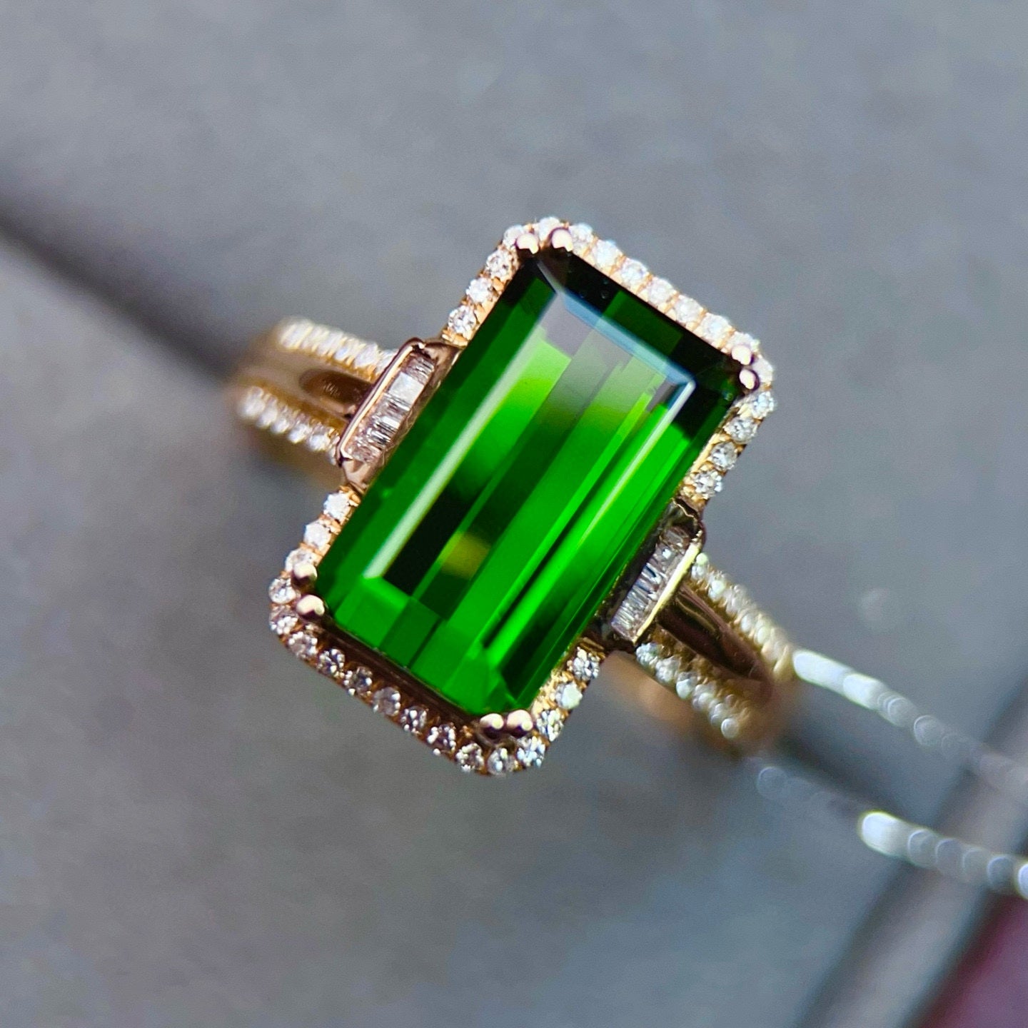 Ref:231023142 // Gold Content:14K Gold // Ring Size:7.25US // // Main Gemstone:Tourmaline // Shape:Octagonal // Carat Weight:3.95ct // Color:Green // Treatment:Natural // // Adjacent Gemstone 2 : Diamond // Number of stones:72 // Shape:Multiply // Carat Weight:0.23ct // Clarity Grade:VS-SI // Color:H // Treatment:Natural //