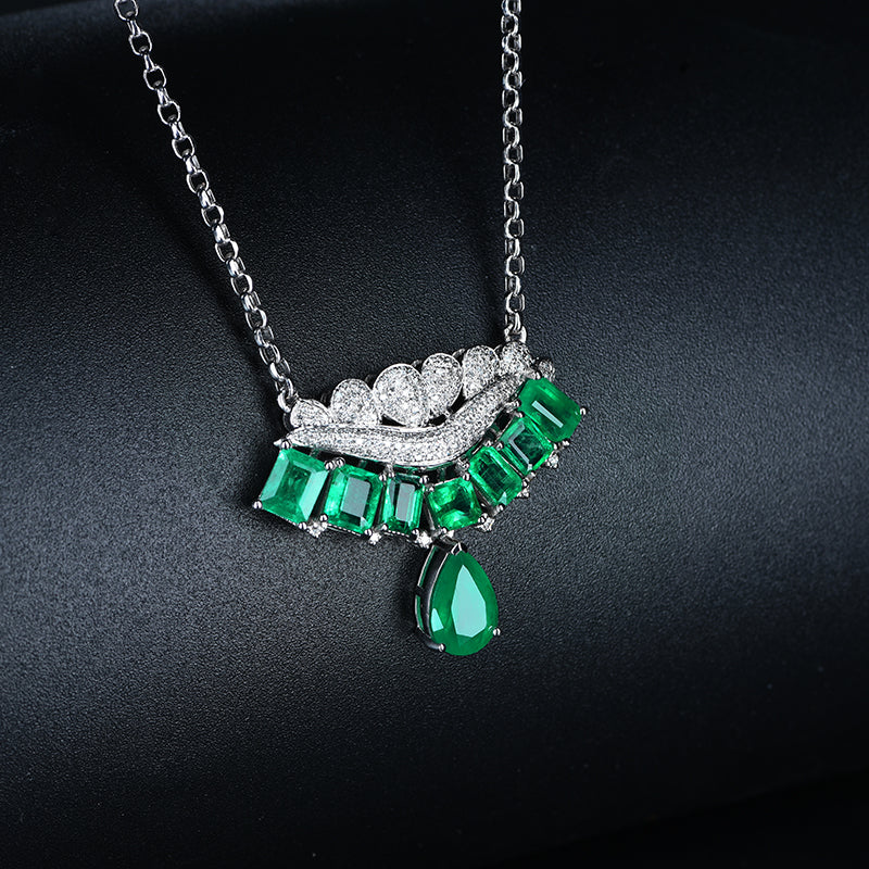Ref:231025024 // Gold Content:14K Gold // Main Gemstone:Emerald // Shape:Multiply // Carat Weight:4.2ct // Color:Green // Treatment:Natural // // Adjacent Gemstone 2 : Diamond // Shape:Round // Clarity Grade:VS-SI // Color:H // Treatment:Natural // Cut Grade:G //