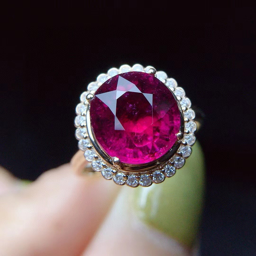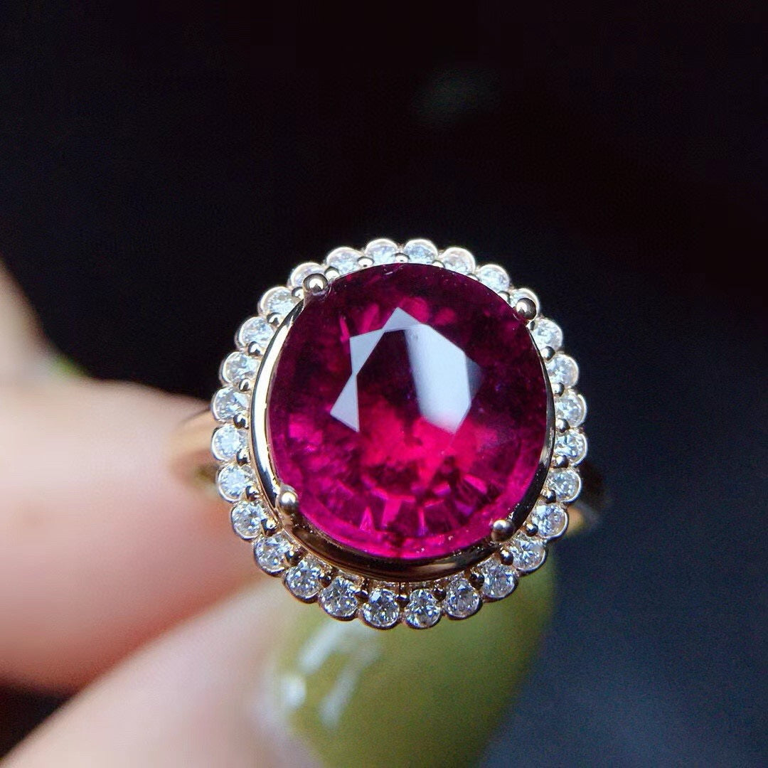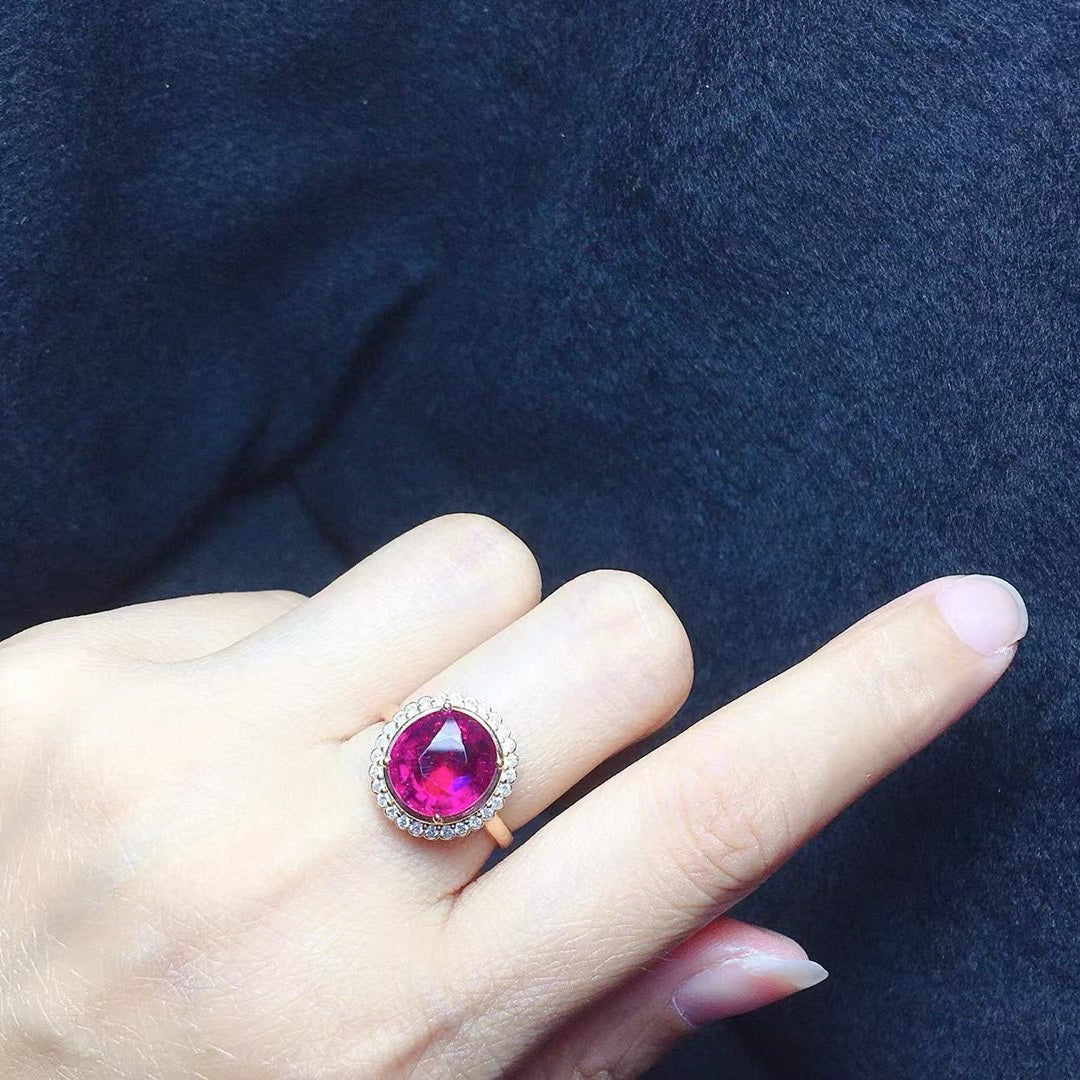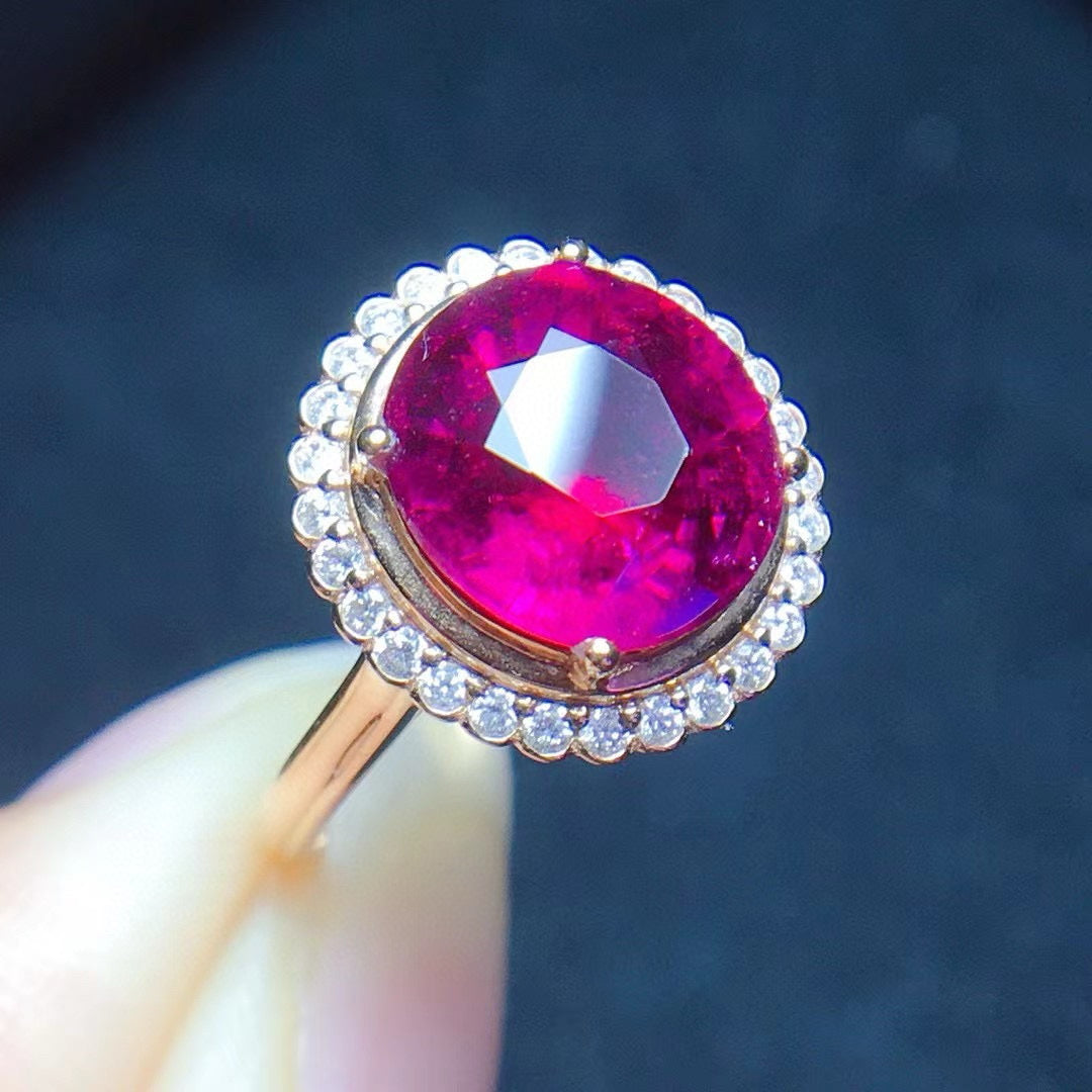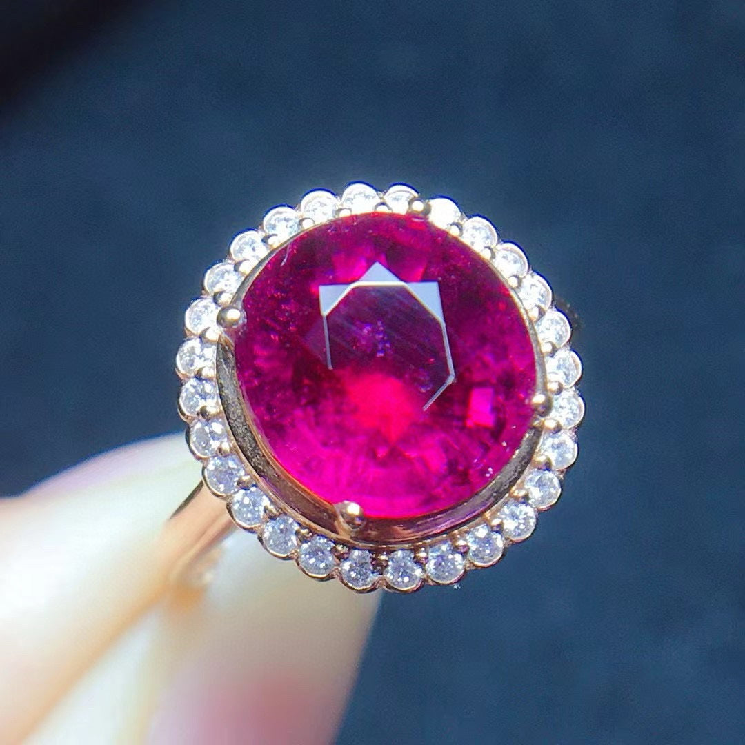 Ref:231023081 // Gold Content:14K Gold // Ring Size:7.25US // // Main Gemstone:Tourmaline // Shape:Round // Carat Weight:4.2ct // Color:Rubellite // Treatment:Natural // Cut Grade:G // // Adjacent Gemstone 2 : Diamond // Number of stones:28 // Shape:Round // Clarity Grade:VS-SI // Color:H // Treatment:Natural // Cut Grade:G //