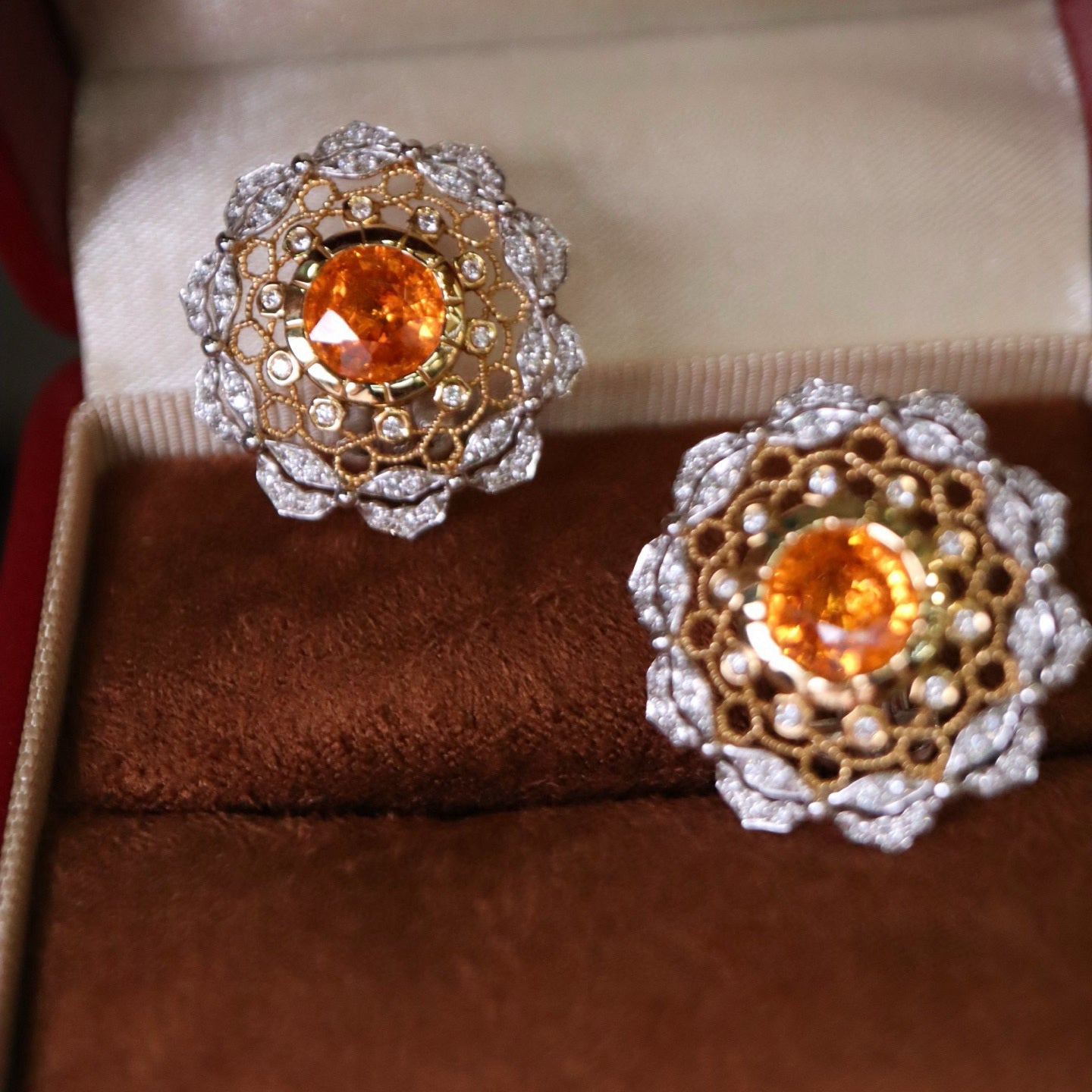 Ref:231019246 // Gold Content:14K Gold // Main Gemstone:Spessartine // Shape:Round // Carat Weight:3.9ct // Color:Orange // Treatment:Natural // Cut Grade:G // // Adjacent Gemstone 2 : Diamond // Shape:Round // Carat Weight:0.48ct // Clarity Grade:VS-SI // Color:H // Treatment:Natural // Cut Grade:G //