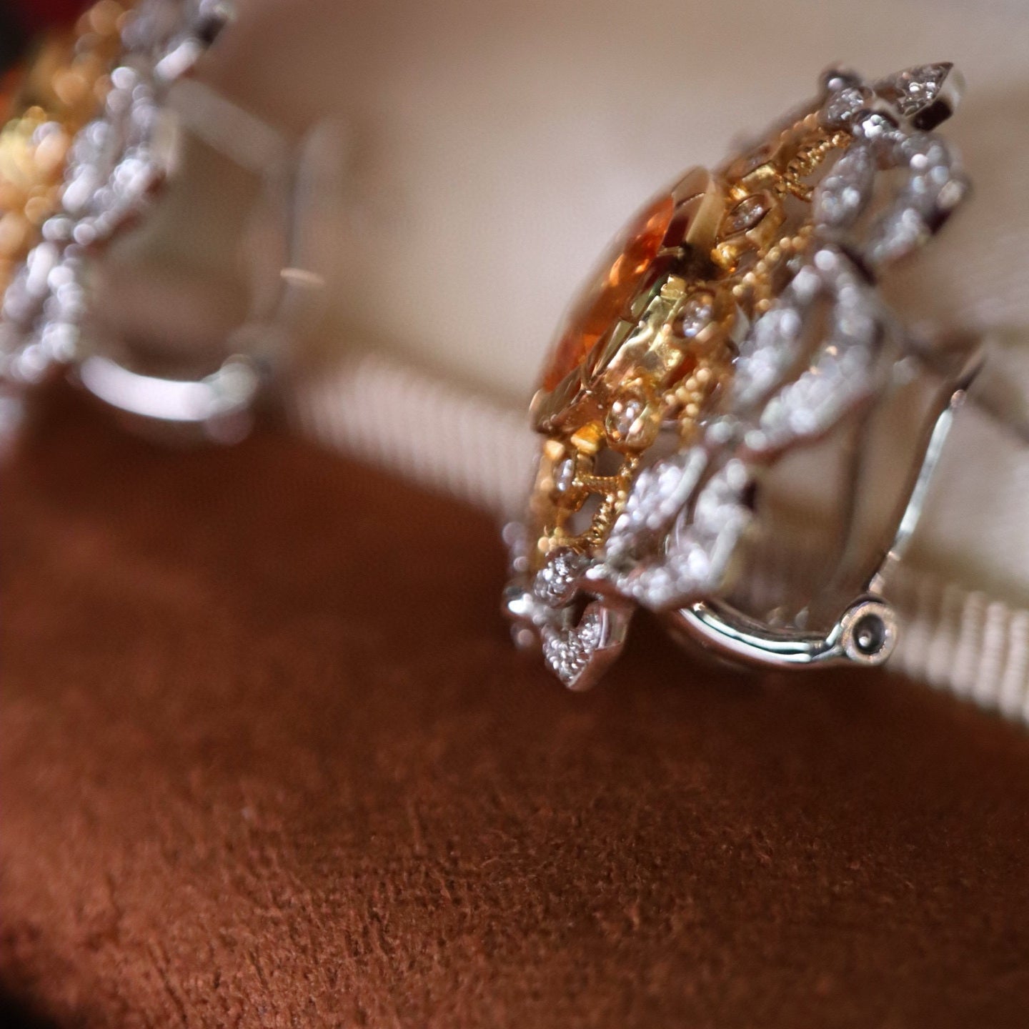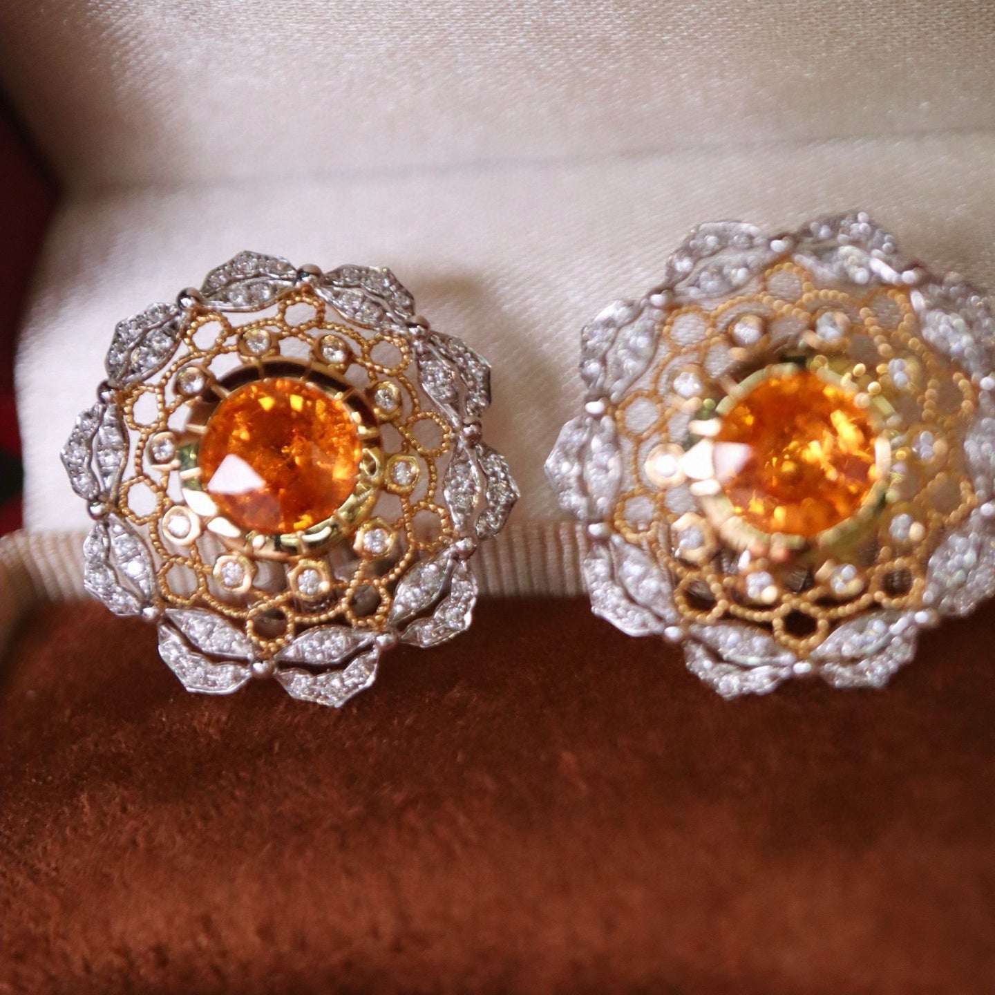 14K GOLD 4.38 CTW NATURAL SPESSARTINE & DIAMOND EARRINGS