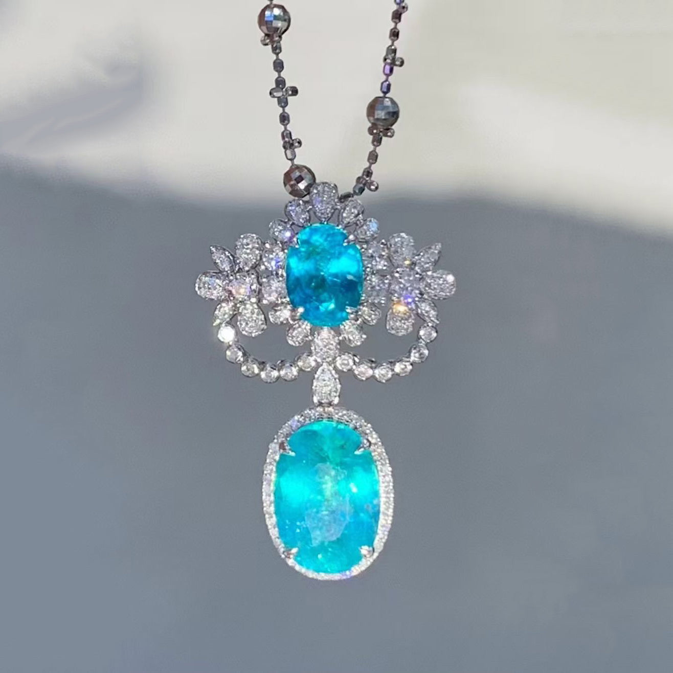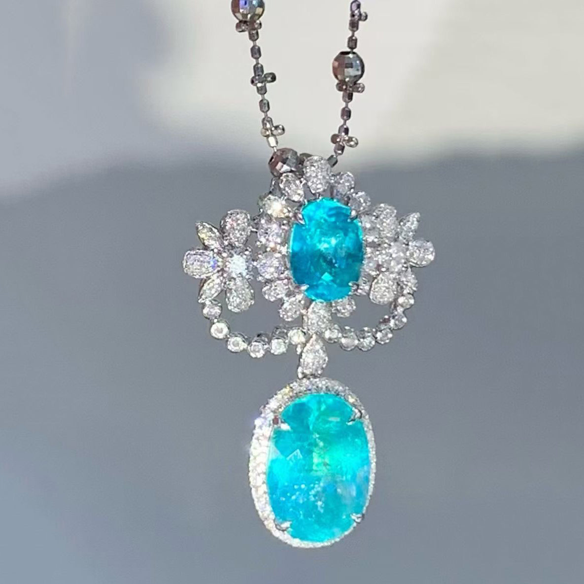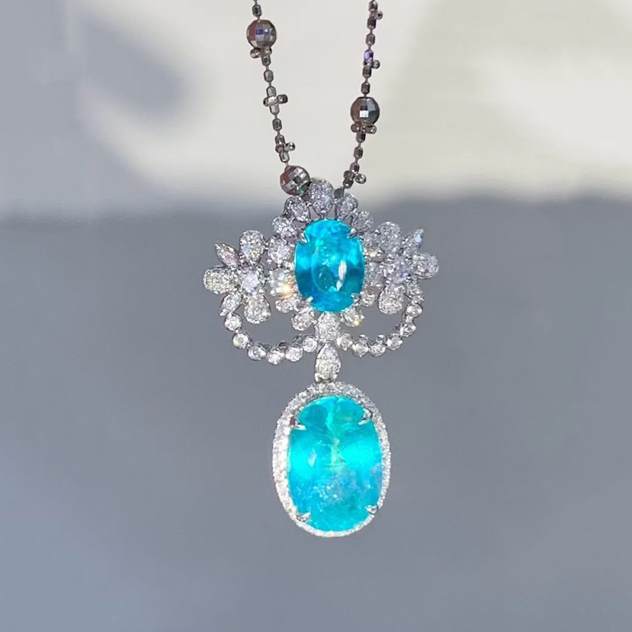 Ref:231019099 // Gold Content:14K Gold // Main Gemstone:Paraiba Tourmaline // Shape:Oval // Carat Weight:4.5ct // Color:Neon Blue // Treatment:Natural // // Adjacent Gemstone 2 : Diamond // Shape:Round // Clarity Grade:VS-SI // Color:H // Treatment:Natural // Cut Grade:G //