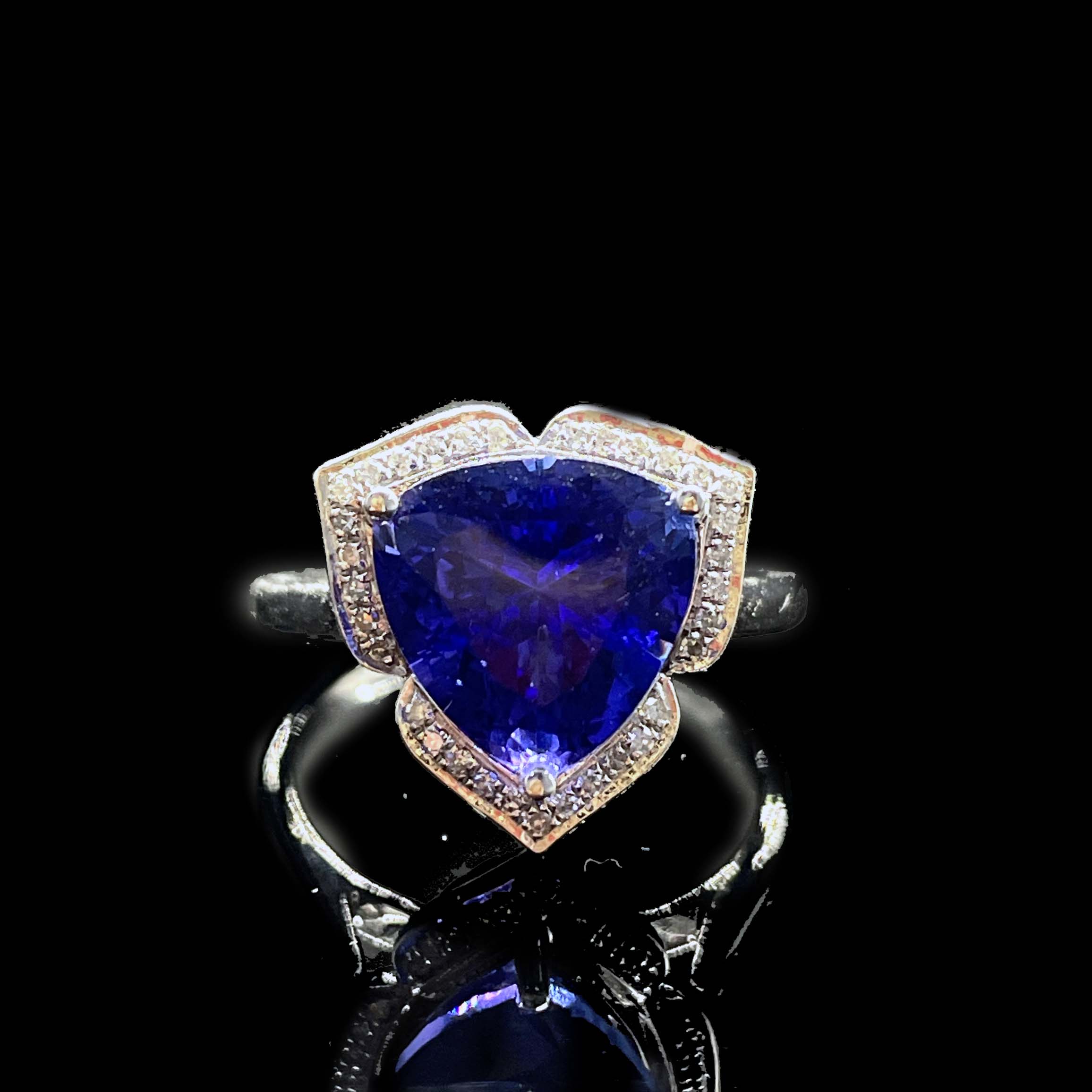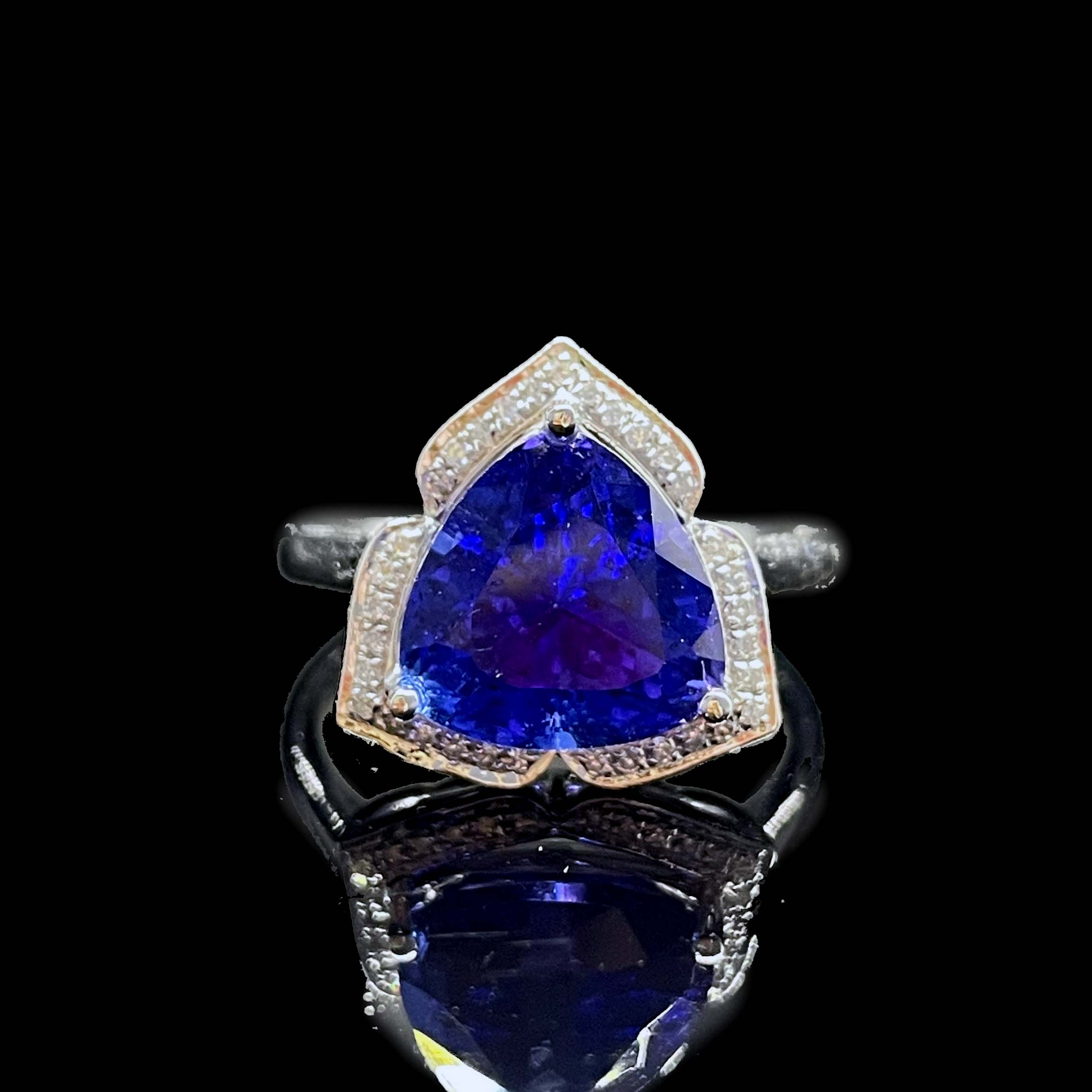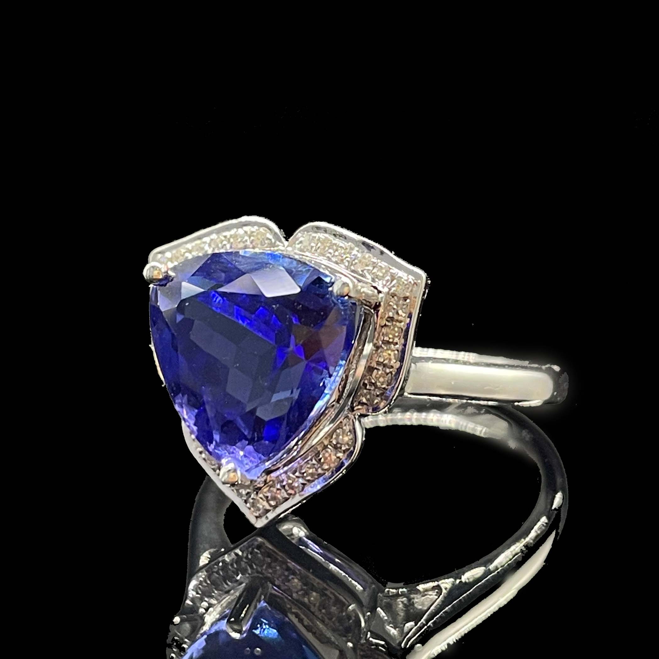 Ref:231027068 // Gold Content:14K Gold // Ring Size:7.25US // // Main Gemstone:Tanzanite // Shape:Triangle // Carat Weight:4.5ct // Color:Blue // Treatment:Natural // // Adjacent Gemstone 2 : Diamond // Shape:Round // Clarity Grade:VS-SI // Color:H // Treatment:Natural // Cut Grade:G //
