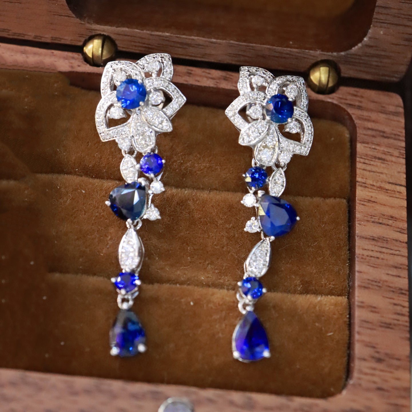 14K GOLD 4.54 CTW NATURAL SAPPHIRE & DIAMOND EARRINGS