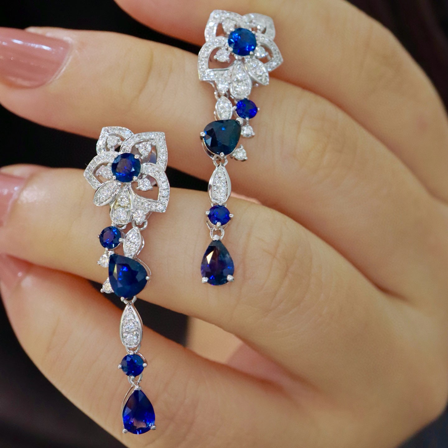 Ref:231019137 // Gold Content:14K Gold // Main Gemstone:Sapphire // Shape:Multiply // Carat Weight:3.85ct // Color:Blue // Treatment:Natural // // Adjacent Gemstone 2 : Diamond // Shape:Round // Carat Weight:0.69ct // Clarity Grade:VS-SI // Color:H // Treatment:Natural // Cut Grade:G //