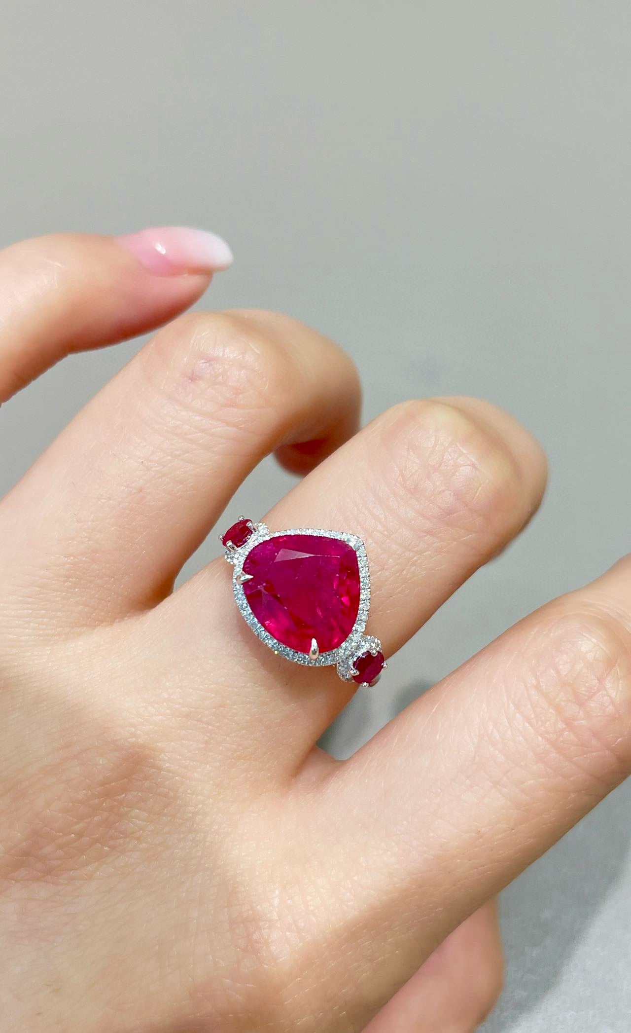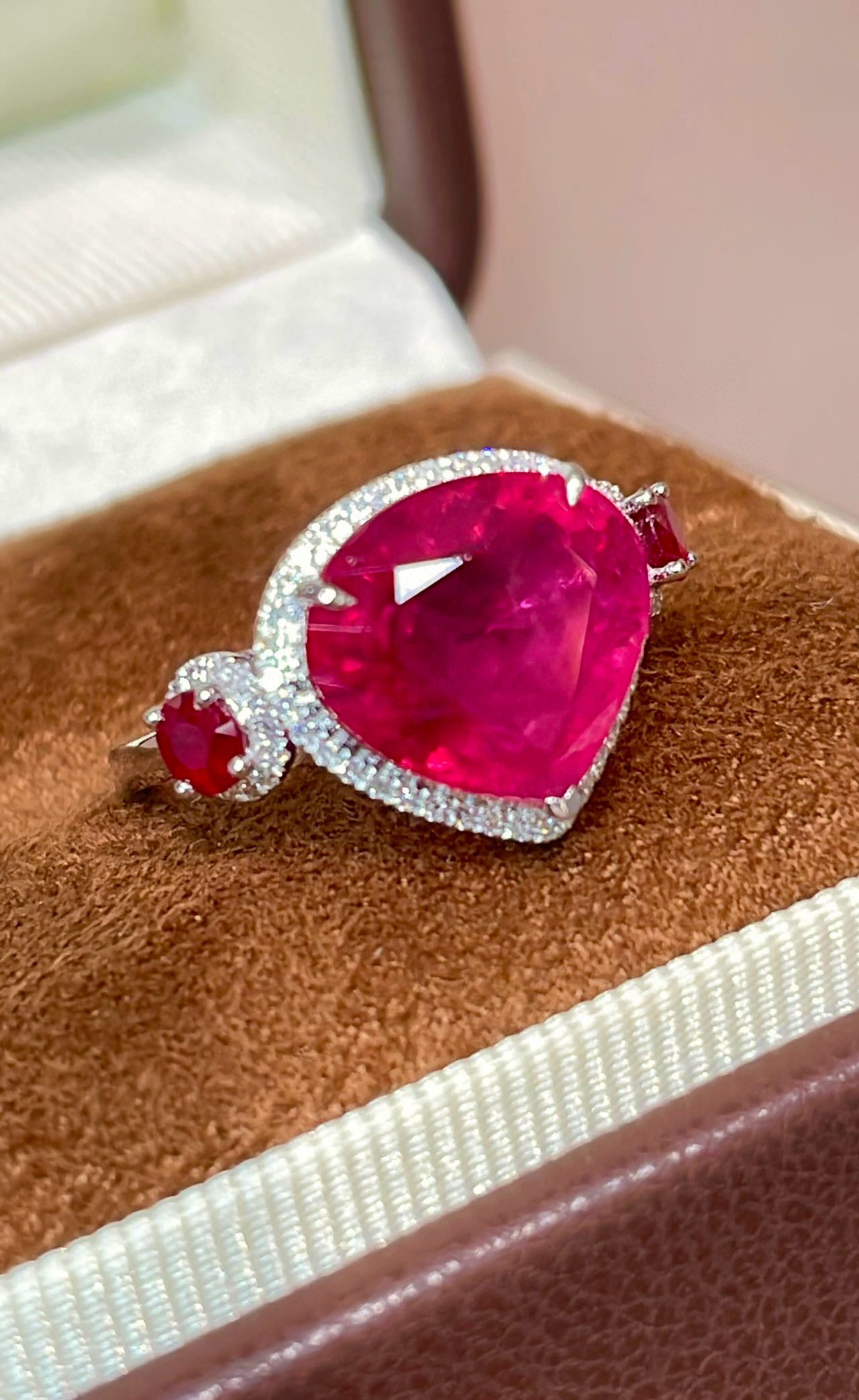 Ref:231027157 // Gold Content:14K Gold // Ring Size:7.25US // // Main Gemstone:Tourmaline // Shape:Pear // Carat Weight:4.33ct // Color:Red // Treatment:Natural // // Adjacent Gemstone 2 : Ruby // Shape:Round // Carat Weight:0.38ct // Color:Red // Treatment:Natural // Cut Grade:G // // Adjacent Gemstone 3 : Diamond // Shape:Round // Clarity Grade:VS-SI // Color:H // Treatment:Natural // Cut Grade:G //