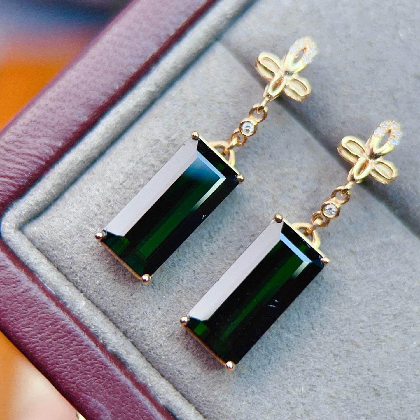 Ref:231023015 // Gold Content:14K Gold // Main Gemstone:Tourmaline // Shape:Octagonal // Carat Weight:4.7ct // Color:Green // Treatment:Natural // // Adjacent Gemstone 2 : Diamond // Number of stones:12 // Shape:Round // Carat Weight:0.04ct // Clarity Grade:VS-SI // Color:H // Treatment:Natural // Cut Grade:G //